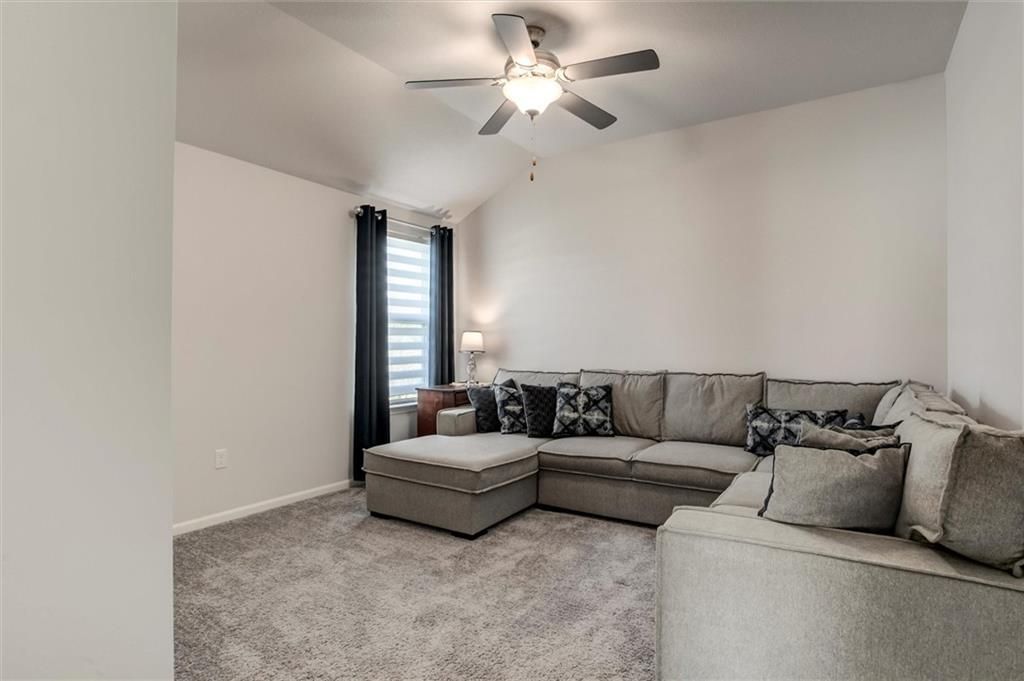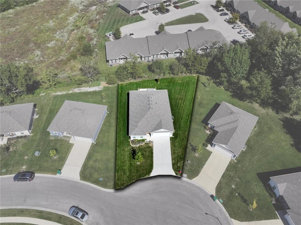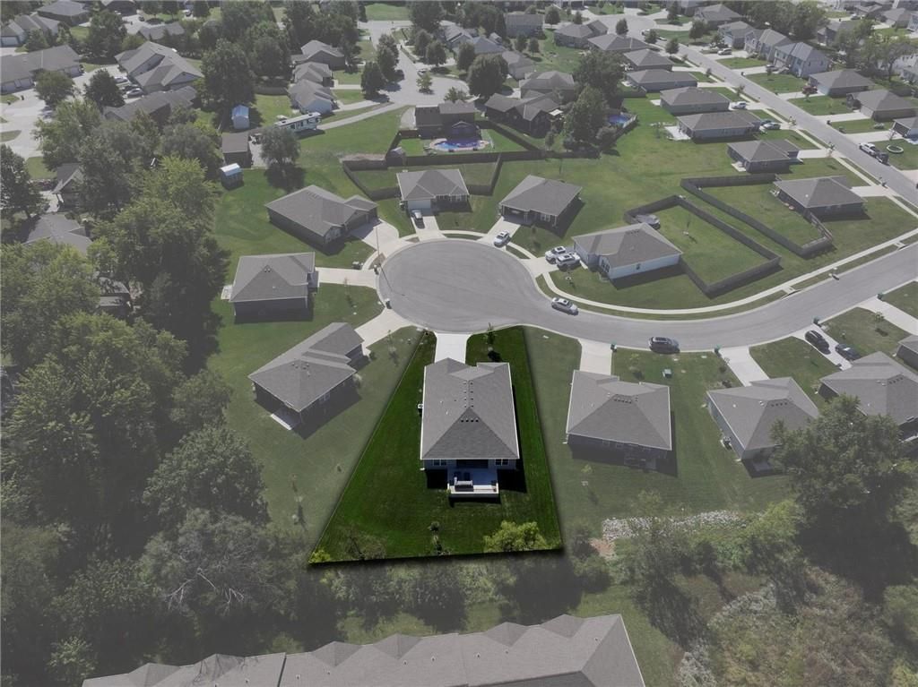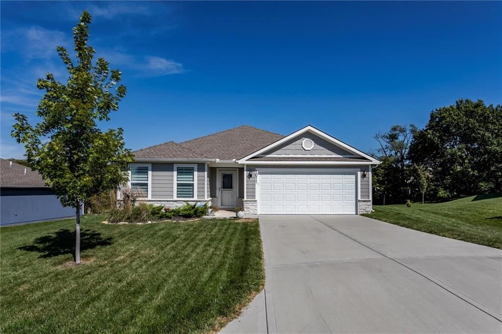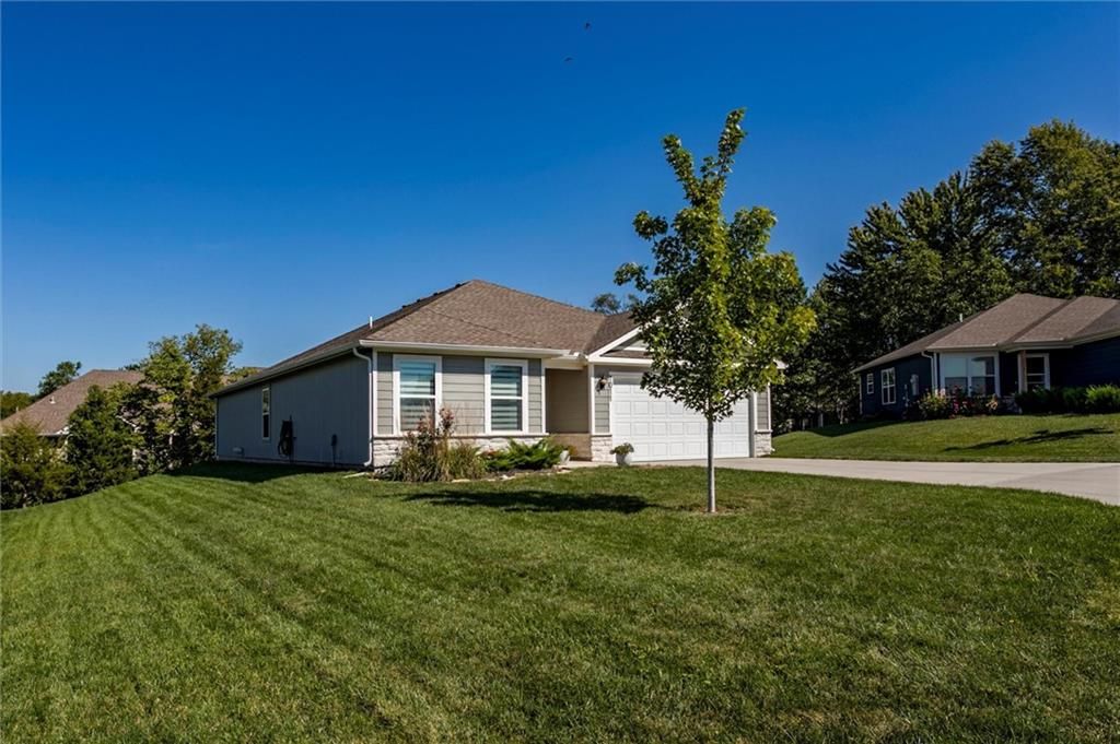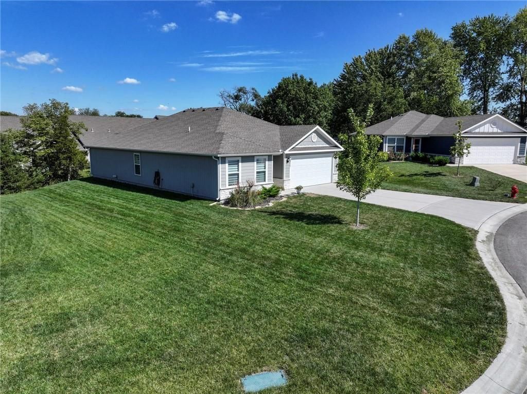Enjoy easy one-level living in this spacious 3-bedroom, 2-bath ranch in a prime Paola location, just minutes from downtown, schools, and shopping. This nearly new, two-year-old home offers an open floor plan filled with natural light. The kitchen boasts a large island, abundant counter space, and a walk-in pantry - perfect for everyday living and entertaining. Retreat to the generous owner's suite featuring a large walk-in closet and a bathroom with space for a future vanity or tub. Relax outdoors on the covered back porch and expanded patio while taking in peaceful views of the green space alive with wildlife.