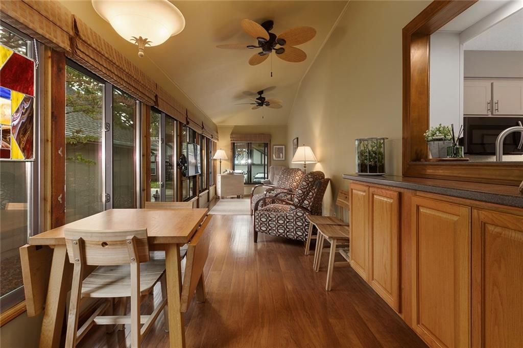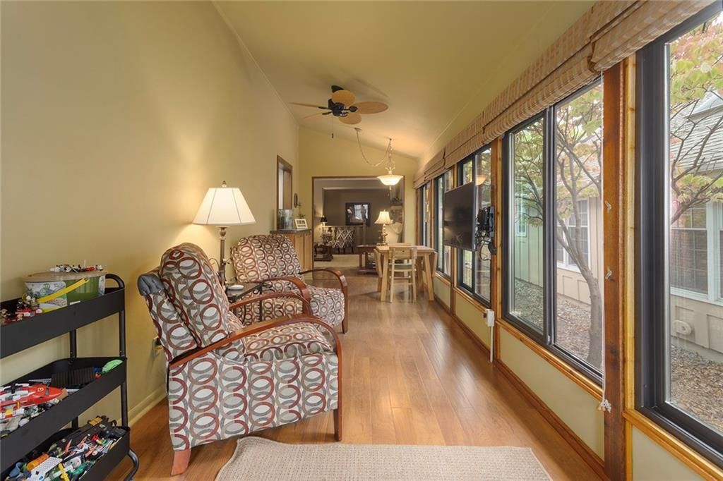 Welcome to the coveted Edelweiss Maintenance-Provided community! Enjoy an easy lifestyle with lawn care, snow removal, pool, clubhouse, and direct access to the Turkey Creek Streamway Trail. This inviting home features a spacious Great Room with vaulted ceiling and masonry fireplace, perfect for relaxing or entertaining. A lovely Sunroom with new Anderson windows fills the space with natural light. New bamboo flooring flows through the Great Room, Sunroom, and Kitchen. The eat-in kitchen offers updated cabinets and countertops, ideal for everyday meals or casual gatherings. The main level also includes two bedrooms, providing comfortable one-level living. Step outside to your private courtyard with Trex decking - a peaceful outdoor retreat. Recent updates include a new roof with impact-resistant shingles, new Velux skylight with shades, new concrete garage floor and driveway, plus fresh paint and flooring in the lower level. The fully finished lower level expands your living space with a new stairlift, two additional bedrooms (or den/office), a full bath, and a large recreation room - perfect for guests, hobbies, or home office needs. A spacious storage room provides plenty of extra space. Located in a prime area with quick highway access, this home combines comfort, convenience, and community amenities for an exceptional lifestyle.