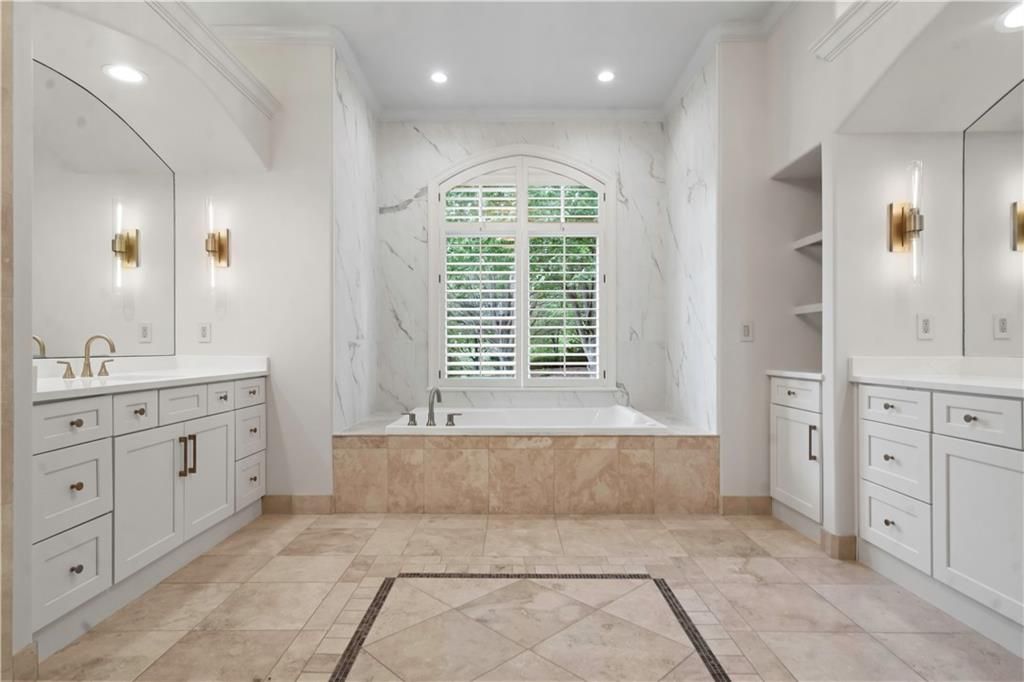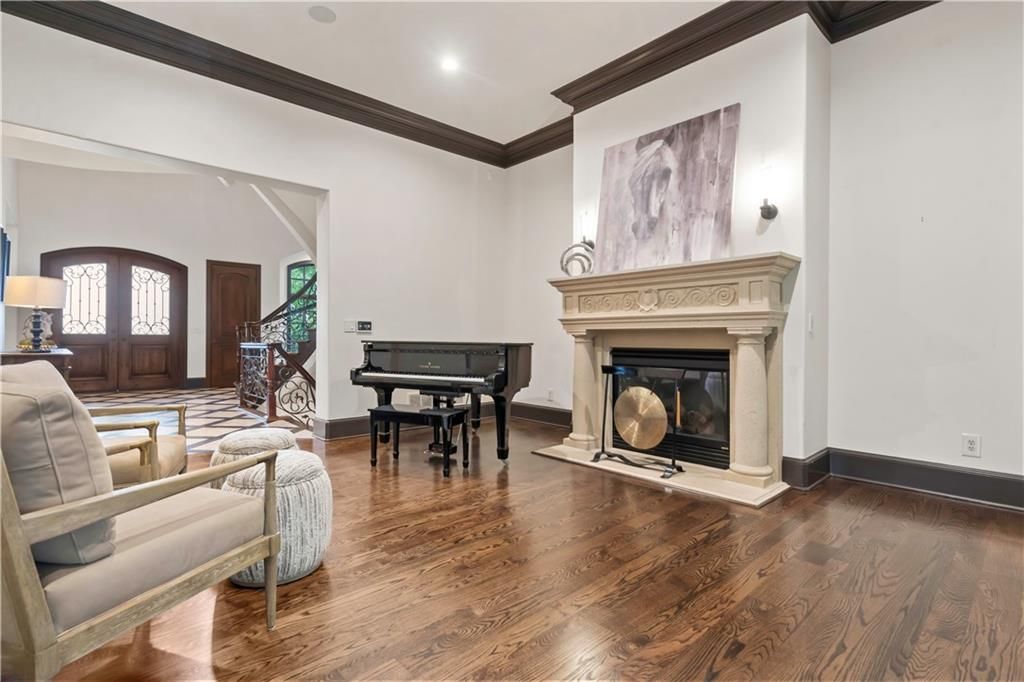 Exquisite 1.5-story home in Mission Farms that blends timeless elegance with modern updates on a beautifully landscaped lot. A dramatic staircase with custom ironwork, solid core doors, and upgraded trim showcase the craftsmanship throughout. The chef's kitchen features quartzite countertops, custom cabinetry, and top-tier appliances, opening to a cozy hearth room. Formal dining and a spacious living room - ideal for a grand piano - flow seamlessly to a covered paver patio for effortless entertaining. The main-level primary suite is a private retreat with a spa-inspired bath and custom walk-in closet. A handsome office with fireplace completes the first floor. Upstairs offers three bedrooms with fresh paint, new carpet, and updated baths, plus a versatile loft. The lower level, finished by Rick Standard, is designed for entertaining with a full bar, media room, wine cellar, workout room, and fifth bedroom. Multiple outdoor living areas, a sport court, and large backyard provide space to relax, gather, or play. This stately estate offers luxury, comfort, and thoughtful design in one of the area's most desirable neighborhoods.