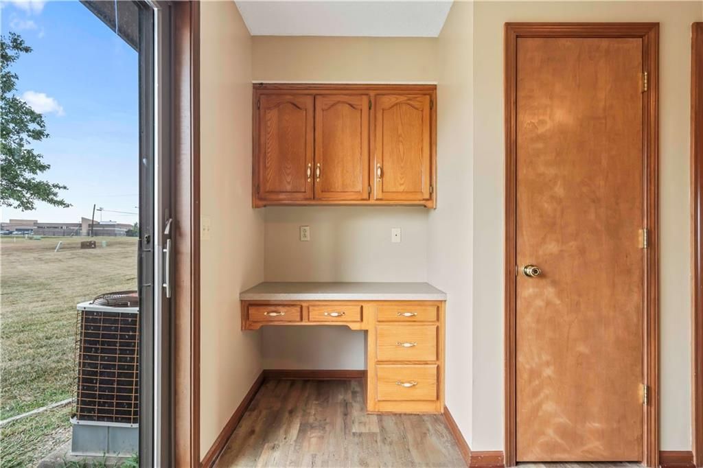 OPPORTUNITY KNOCKS!!! Enjoy the easy life with maintenance free ONE LEVEL living in Paola! Low HOA covers Master Insurance, Mowing, Roof, Exterior Paint and Trash! Neutral Colors Throughout! Main level with Living Room, Kitchen, 2 bedrooms and a full bath. Kitchen has Stained Cabinets including Pantry and Built-in Desk in to keep life organized! Convenient Laundry Closet! Patio off Kitchen to BBQ or kick back and relax! Community includes playground area! Just bring your decorating touches and move right in! WELCOME HOME!