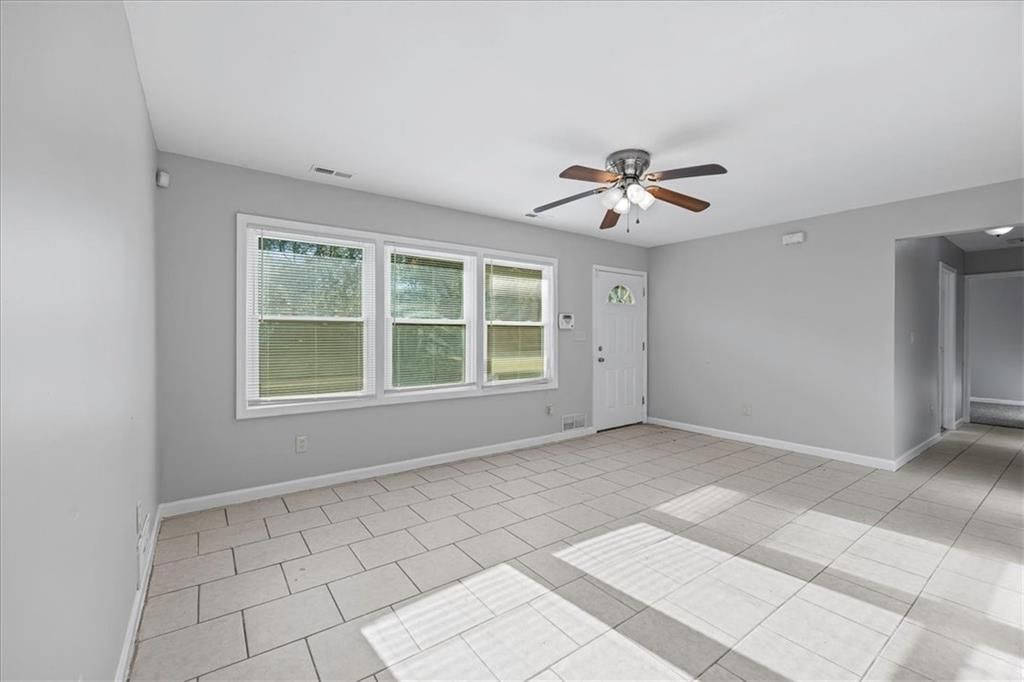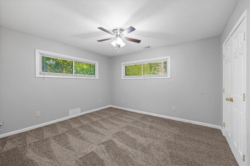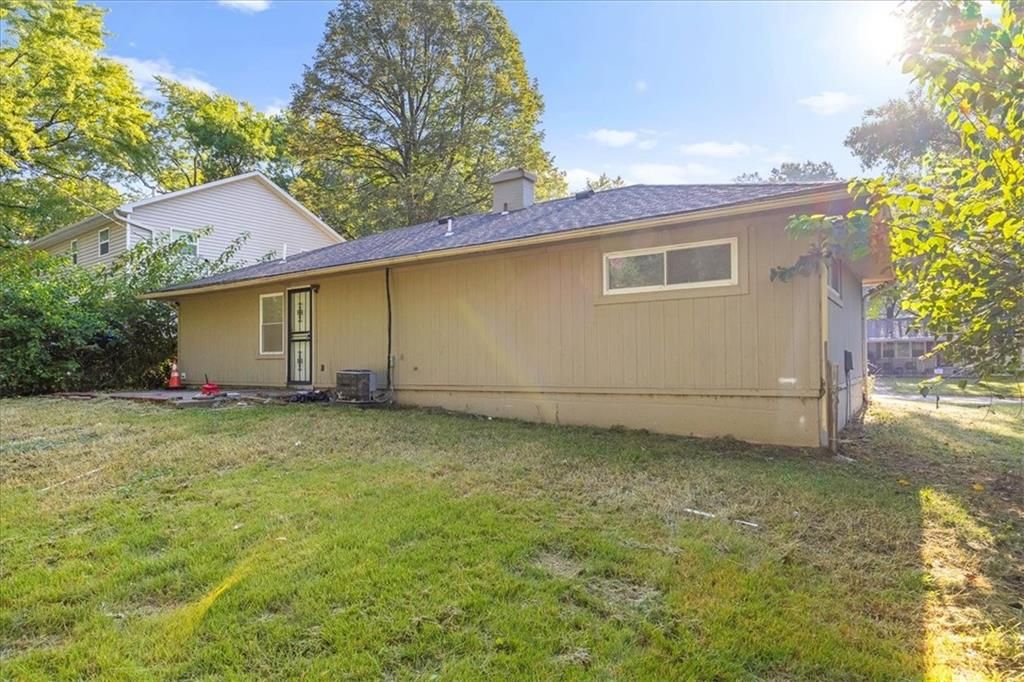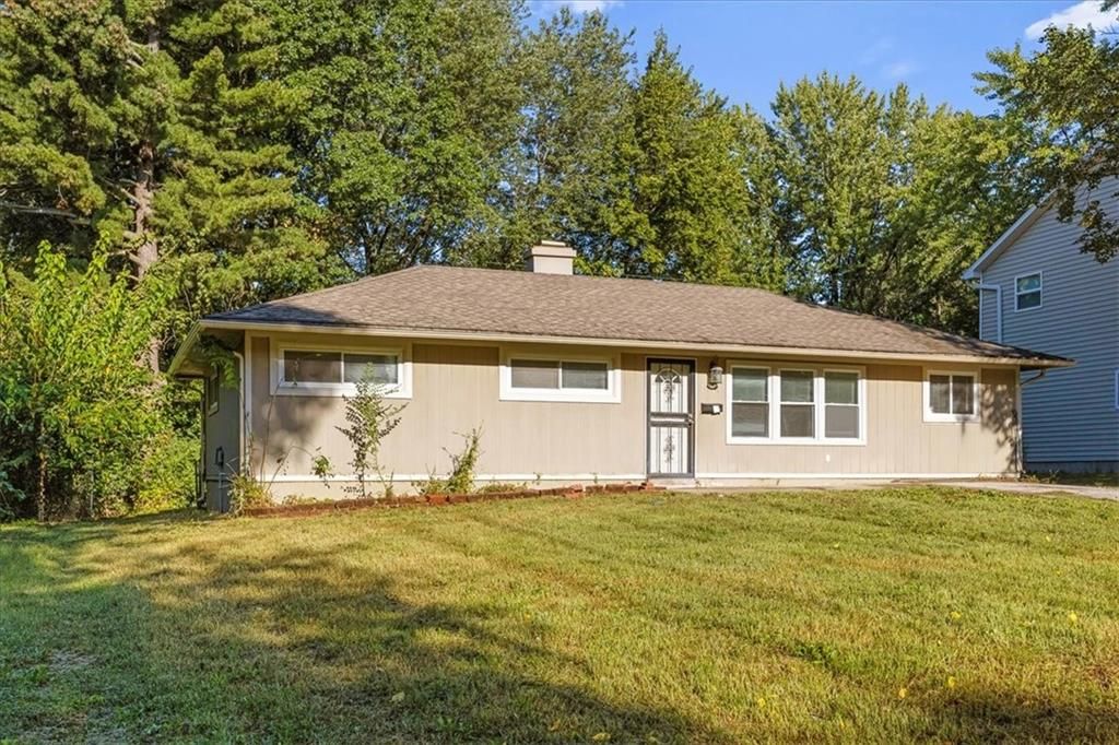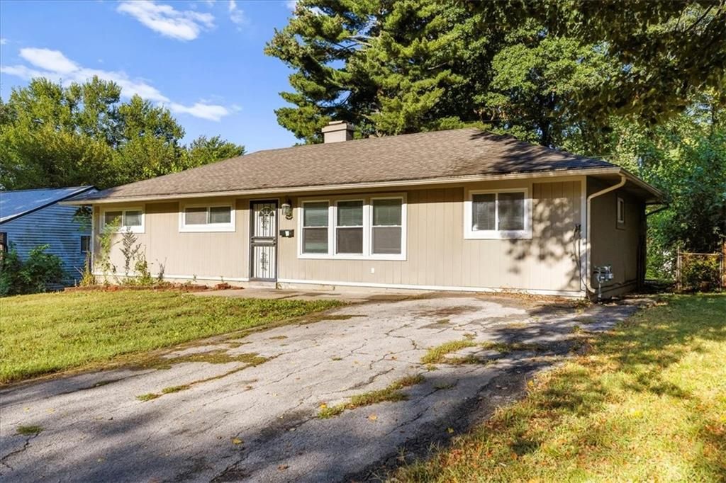 This four-bedroom, one-bath home on a slab delivers space and practicality in a convenient location. Inside, neutral paint, updated lighting, and new carpet throughout make the home feel fresh and move-in ready. The front living room flows into a large eat-in kitchen featuring abundant cabinet space, durable countertops, and all appliances included. Four comfortable bedrooms offer ceiling fans and ample closet space, while the full bath has a tiled tub/shower combo and an updated vanity. Outside, the home sits on a level lot with off-street parking, a patio at the rear entry, and a tree-lined backdrop. With its one-level layout, low-maintenance exterior, and close proximity to major routes, this home is a strong option for both investors seeking reliable rental income and owner-occupants looking for affordable living space in Kansas City.