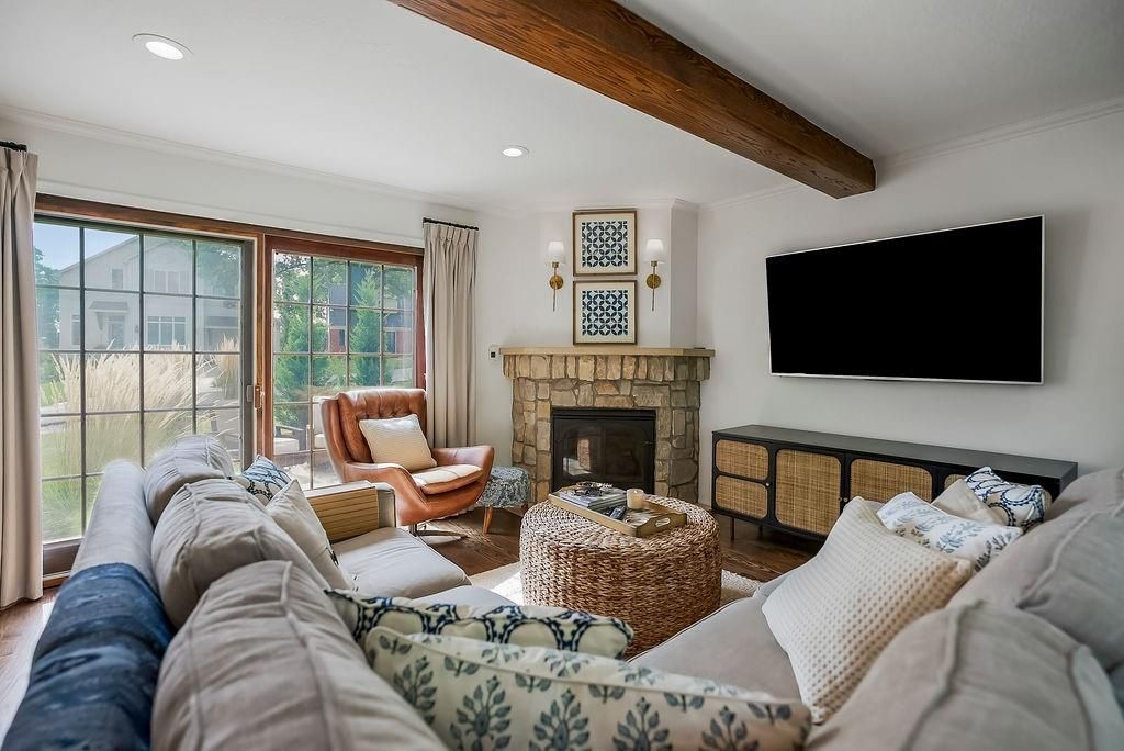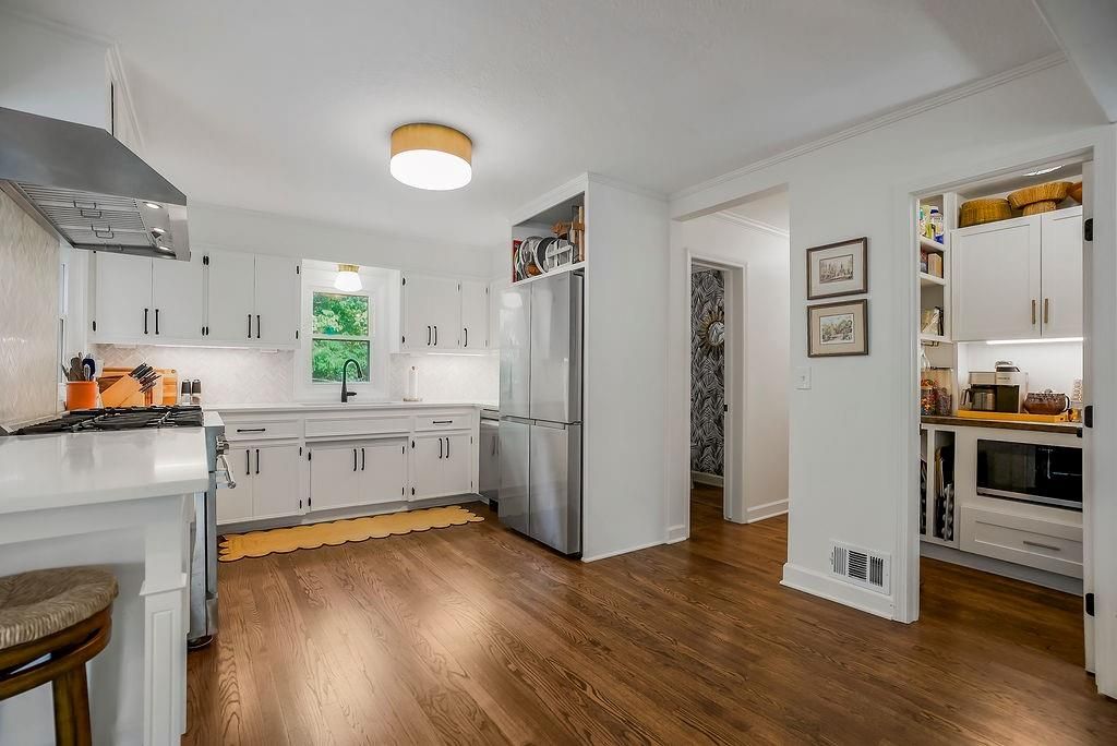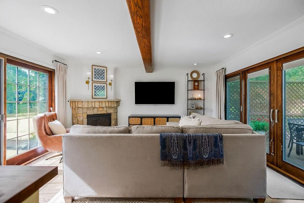 Inside the Private Gates of Lake Quivira! Discover this charming, fully updated lake cottage that offers so much more than meets the eye. Step inside to a welcoming living room featuring a cozy fireplace and delightful window seat. Just off the living room, you'll find a sun-filled office or study with built-in shelving and abundant windows. The gourmet kitchen is a true highlight, complete with stainless steel appliances, a large gas range and oven, and an incredible walk-in pantry with microwave and coffee bar. The spacious dining area blends style and comfort, while the adjoining family room offers another fireplace and sliding doors leading to both the front patio and back deck - perfect for taking in the views. Retreat to the primary suite, featuring two walk-in closets, a brand-new spa-like bathroom with an oversized shower and double vanity, plus a conveniently located laundry room with stackable washer/dryer (staying!) and workspace. A stylish half bath and gleaming hardwood floors complete the main level. Upstairs, you'll find three generously sized bedrooms filled with charm and detail, along with a newly renovated full bathroom. The finished lower level adds even more living space with a dry bar - ideal for entertaining. This home includes Dock Site #4 for all your lake fun. At Lake Quivira, you'll enjoy a one-of-a-kind lifestyle in a private gated community offering: 18-hole golf course, Tennis, pickleball, and community center with fitness facilities, Hiking trails, sailing, boating, fishing, and swimming, Vibrant social events and clubs ,1x$40K LQ membership fee required. Live where you play - Lake Quivira has it all!