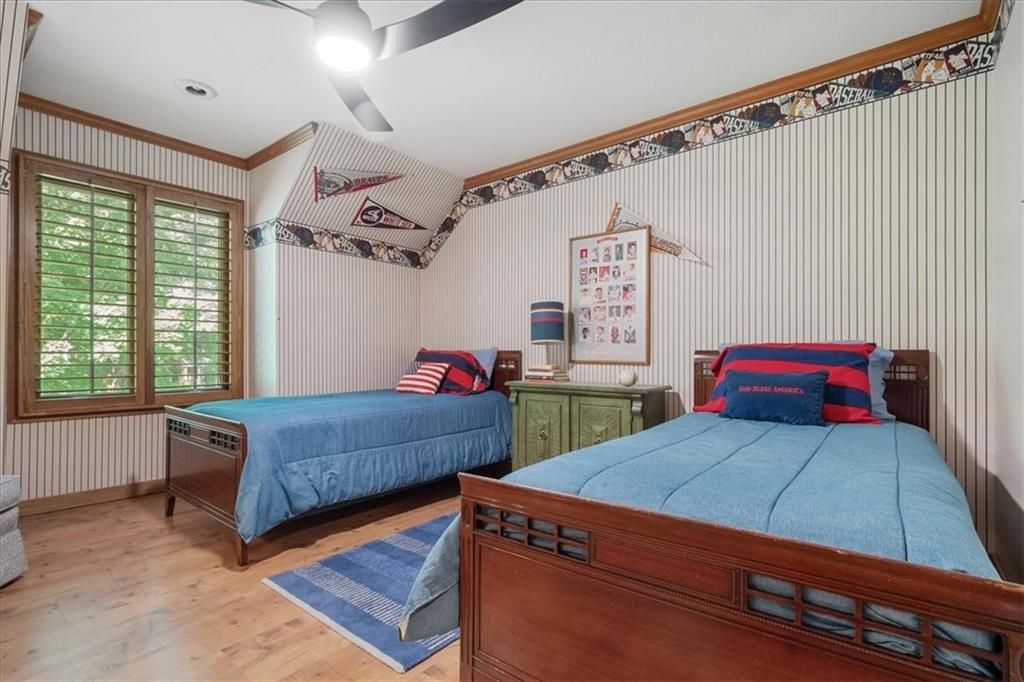 Stunning 1.5 story with 3 car garage in highly sought after Royse subdivision. This meticulous home has been owned and perfectly maintained with the same owner for the past 29 years. Just under 5000 square feet, this beauty is ready for its new owner to enjoy. Main level features soaring ceilings, loads of natural light, two working fireplaces, travertine tile, fantastic flow, and easy access to an amazing patio and private lot. The lavishly landscaped lot is an added bonus. Open kitchen has large breakfast area and flows to expansive great room with floor to ceiling windows. Fabulous for entertaining!!! Laundry room is located off the kitchen. Spacious primary suite has its own private exit onto the patio. Primary bath has endless opportunity and offers two walk in closets, jacuzzi tub, walk in shower, and double vanity. Located on the second level you will find three generous sized bedrooms all with walk in closets and two full bathrooms. Hallway has a cute desk built-in section for study time or office. Massive lower level has all the additional bells and whistles. Huge family room and wet bar, exercise room, full bath, office or non conforming 5th bedroom, and storage space. This home has loads of potential. Located in the heart of Leawood and close proximity to restaurants, shops, trails, and whatever one is looking for. Excellent school district! This gem is one of a kind!