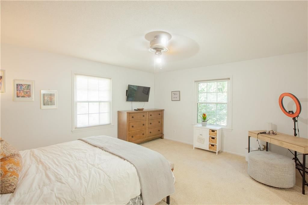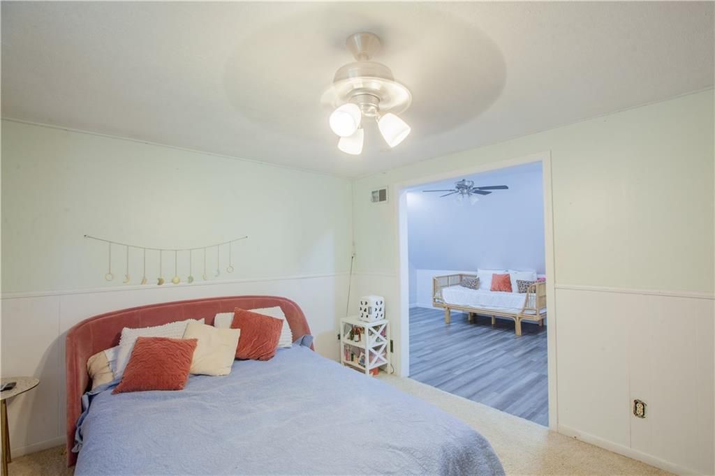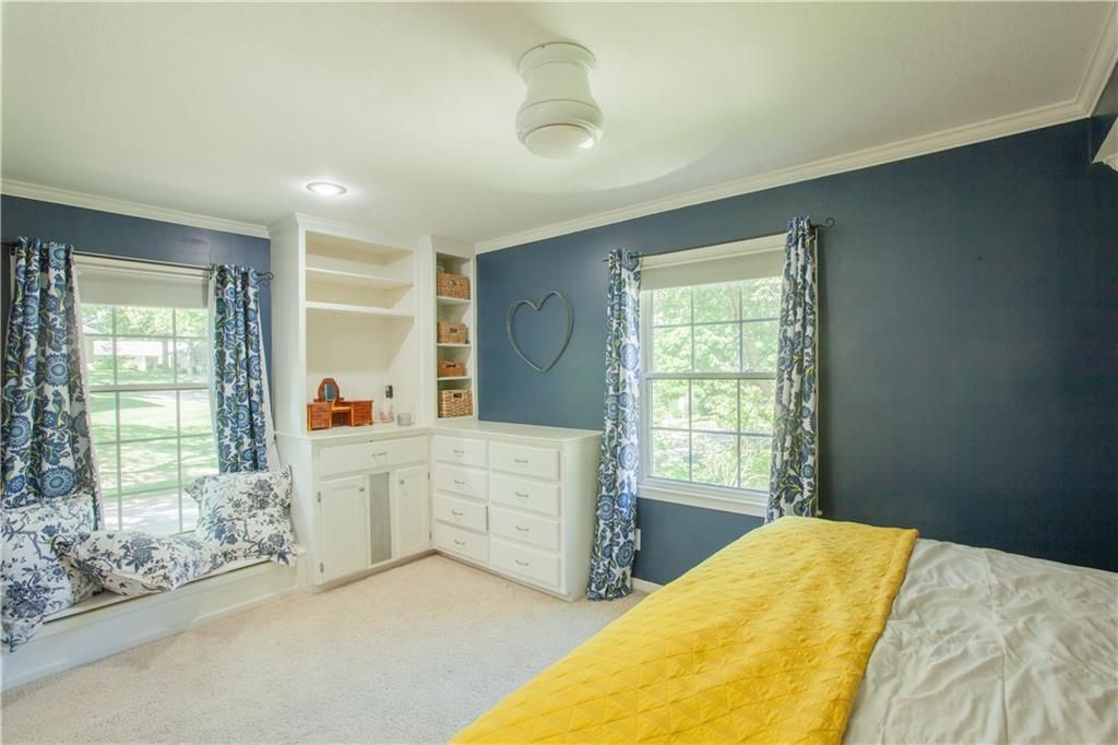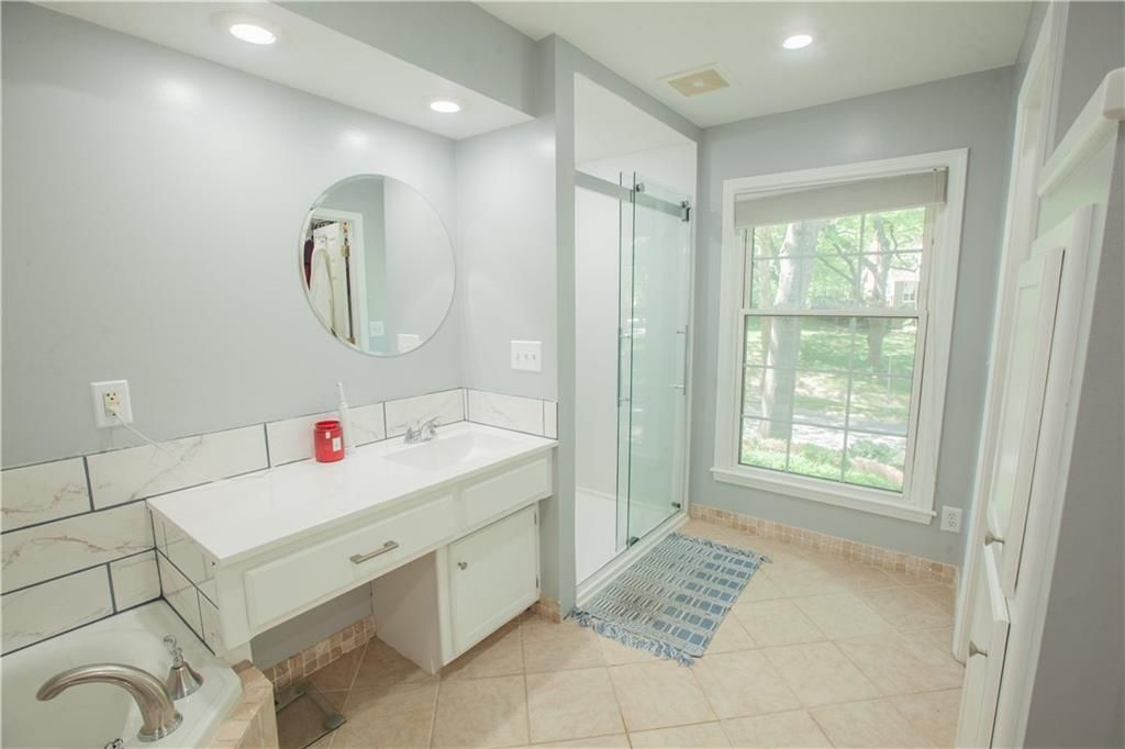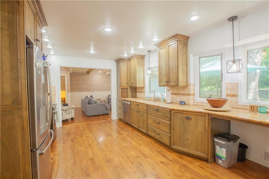 Spacious 4 bedroom, 4.5 bath side-to-side split located in a desirable golf course community within the Blue Valley School District. This home features two primary suites, offering flexibility and comfort for multigenerational living or guest accommodations. One bedroom has a newly added dormer extension, creating a bright and inviting sitting area. Recent updates include newer roof and windows, as well as a newly remodeled primary shower. The finished basement offers additional living space complete with a wet bar, ideal for entertaining. Outdoor living is enhanced by a backyard patio overlooking a park-like setting surrounded by mature trees. Conveniently located within walking distance to shopping and dining, this home combines modern updates with an exceptional location.