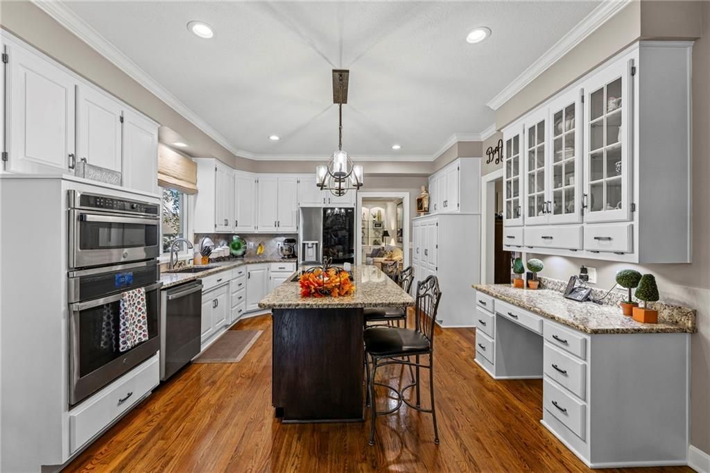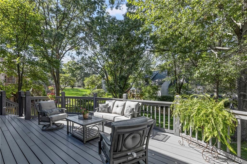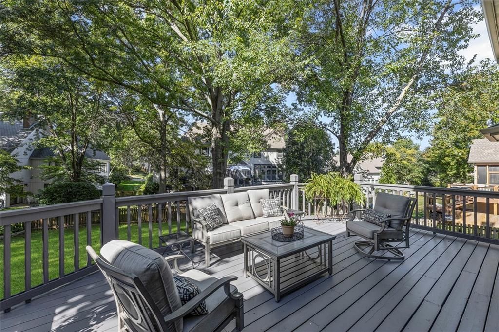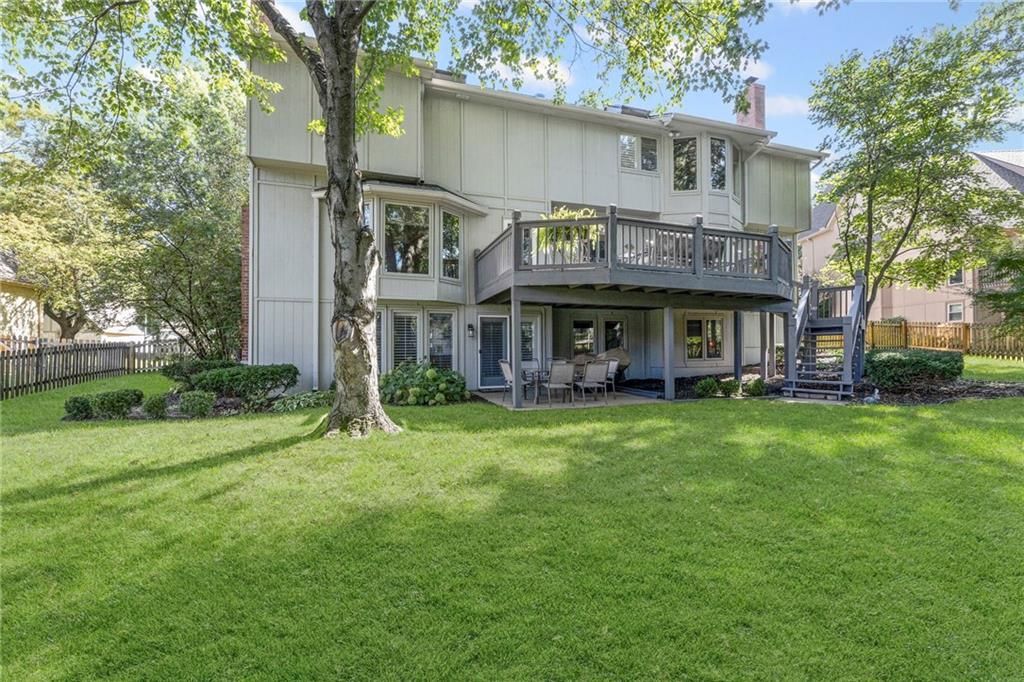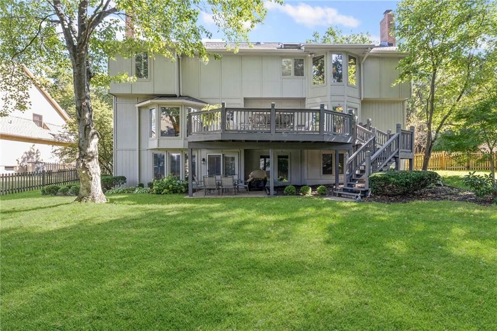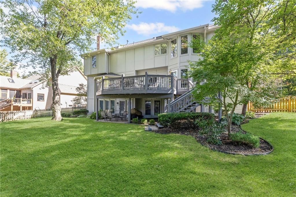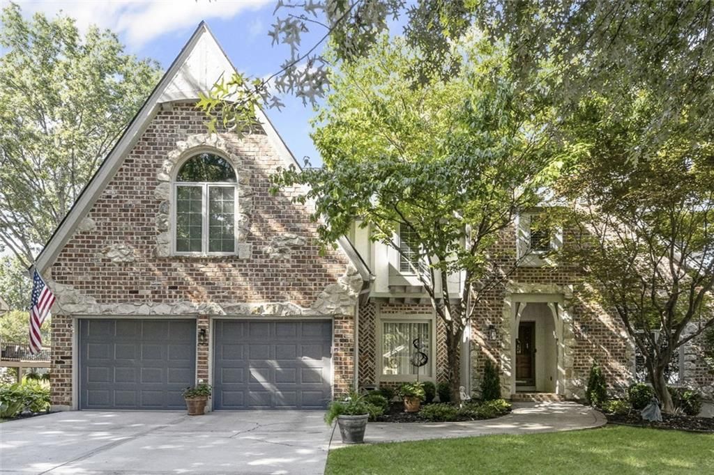 Discover a distinguished Tudor-style home by builder Jim Lambie. Nestled in the desired Leawood South neighborhood, this 6-bed, 4.5-bath, 4,584 sq ft home sits adjacent to the Country Club of Leawood golf course and minutes from the club house. Its stone-and-stucco exterior boasts exceptional curb appeal, setting it apart in this peaceful, family-oriented community - ideal for creating lasting memories. Crafted with robust double wall construction and zoned heating/cooling, this home ensures enduring comfort and efficiency. Gleaming hardwood floors, elegant wood plantation shutters, and three working fireplaces create a warm, sophisticated ambiance throughout. The expansive 0.32-acre lot offers a spacious backyard with ample privacy, perfect for outdoor activities or relaxation. A large deck enhances outdoor living, ideal for entertaining. The finished walk-out basement features a generous recreation area, an additional bedroom, and abundant storage. Custom built-in bookcases in the office add functionality and charm. Located in the top-rated Blue Valley School District, minutes from Town Center shopping and dining, this Leawood gem blends luxury with convenience. Seize the opportunity to own this extraordinary residence - schedule your private tour today to experience timeless elegance in Johnson County's premier community!