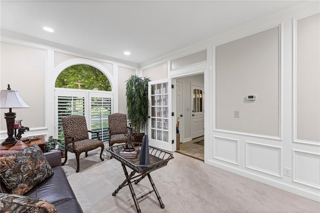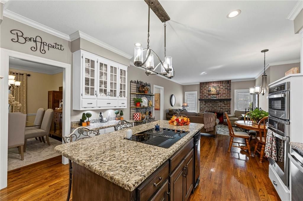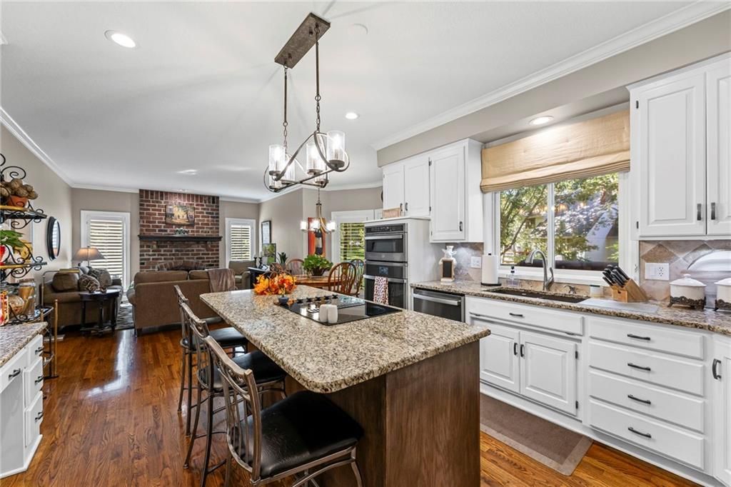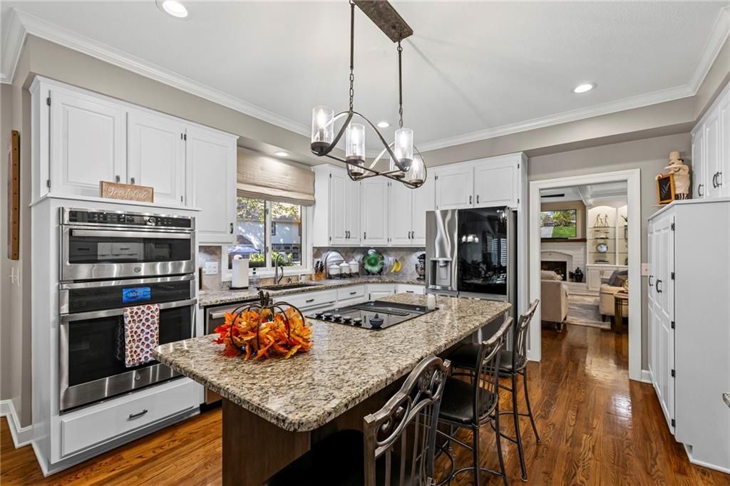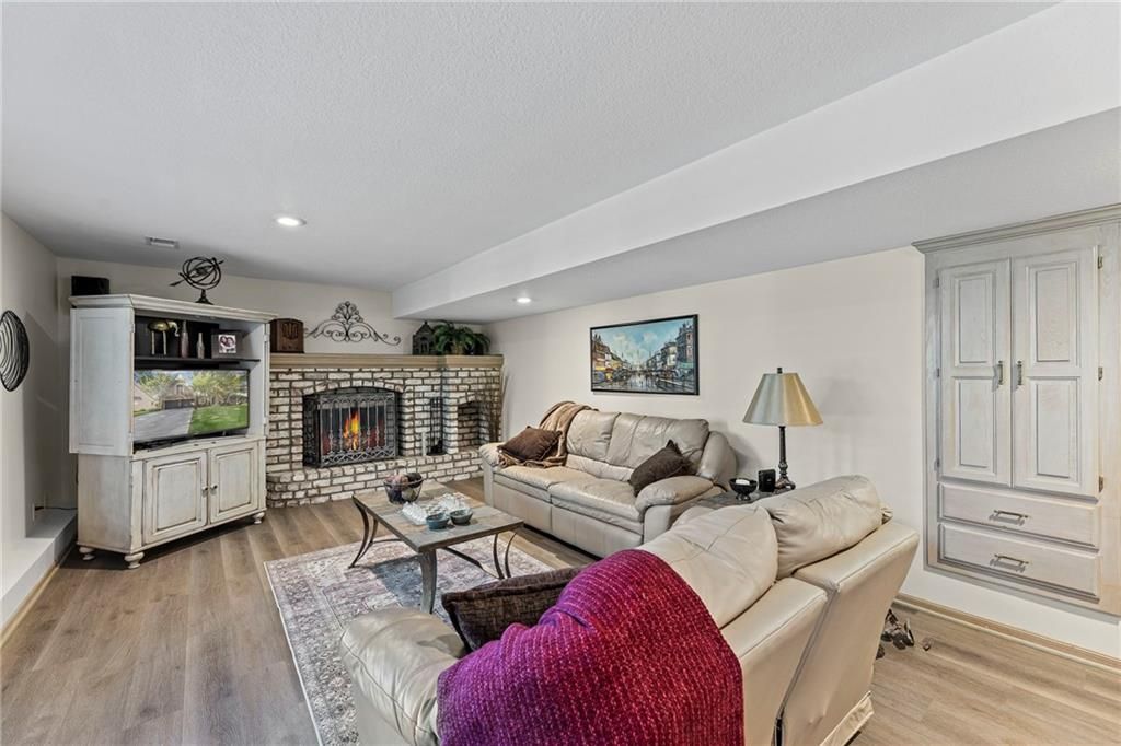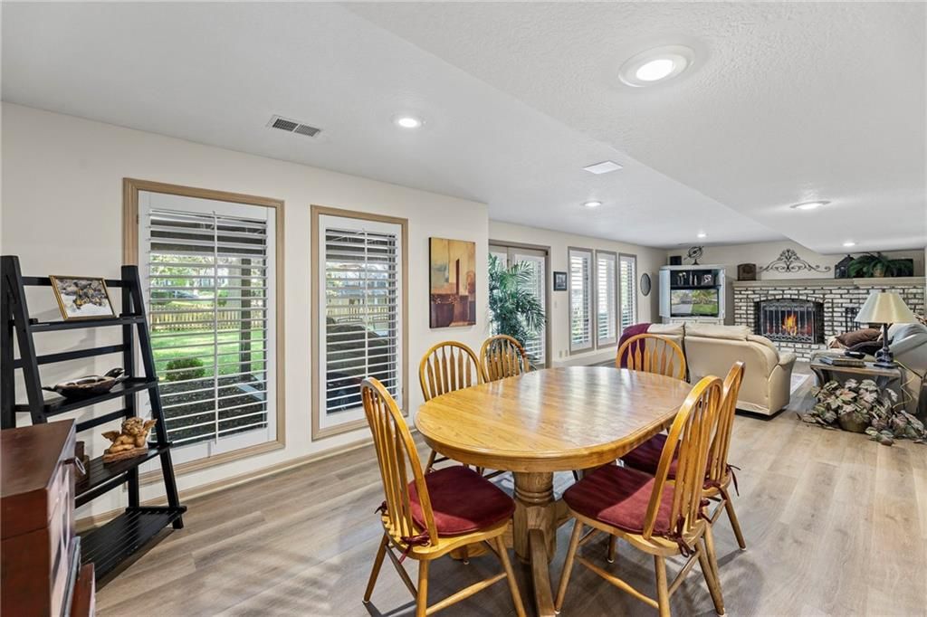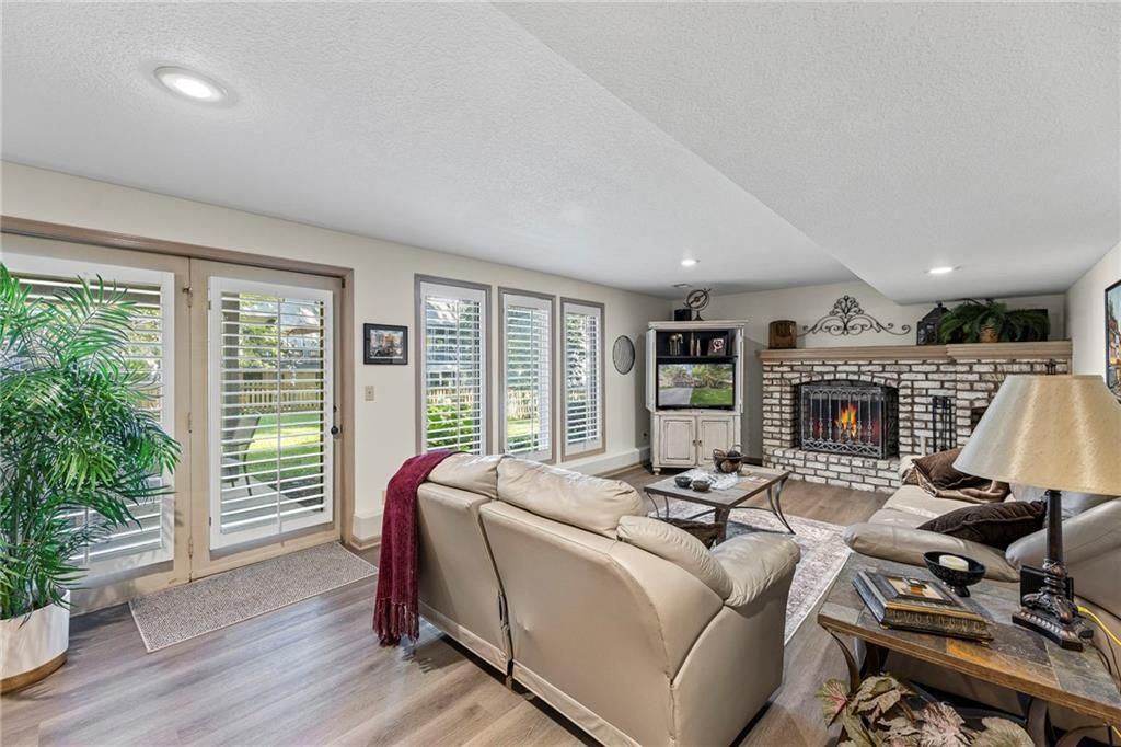 Discover a distinguished Tudor-style home by builder Jim Lambie. Nestled in the desired Leawood South neighborhood, this 6-bed, 4.5-bath, 4,584 sq ft home sits adjacent to the Country Club of Leawood golf course and minutes from the club house. Its stone-and-stucco exterior boasts exceptional curb appeal, setting it apart in this peaceful, family-oriented community - ideal for creating lasting memories. Crafted with robust double wall construction and zoned heating/cooling, this home ensures enduring comfort and efficiency. Gleaming hardwood floors, elegant wood plantation shutters, and three working fireplaces create a warm, sophisticated ambiance throughout. The expansive 0.32-acre lot offers a spacious backyard with ample privacy, perfect for outdoor activities or relaxation. A large deck enhances outdoor living, ideal for entertaining. The finished walk-out basement features a generous recreation area, an additional bedroom, and abundant storage. Custom built-in bookcases in the office add functionality and charm. Located in the top-rated Blue Valley School District, minutes from Town Center shopping and dining, this Leawood gem blends luxury with convenience. Seize the opportunity to own this extraordinary residence - schedule your private tour today to experience timeless elegance in Johnson County's premier community!