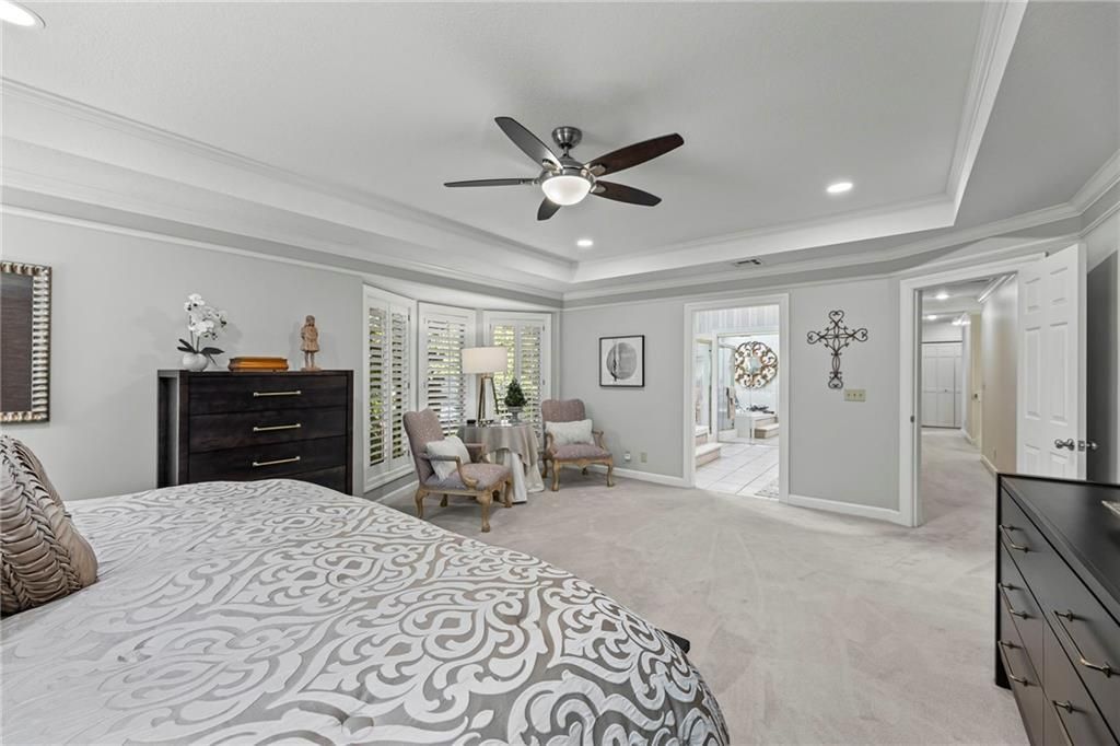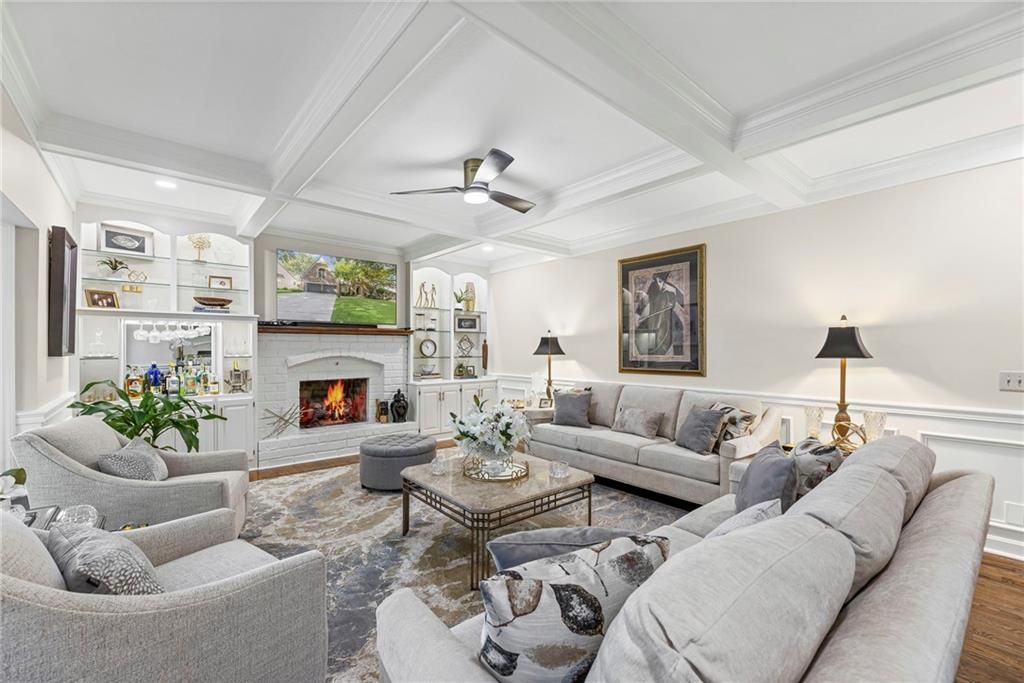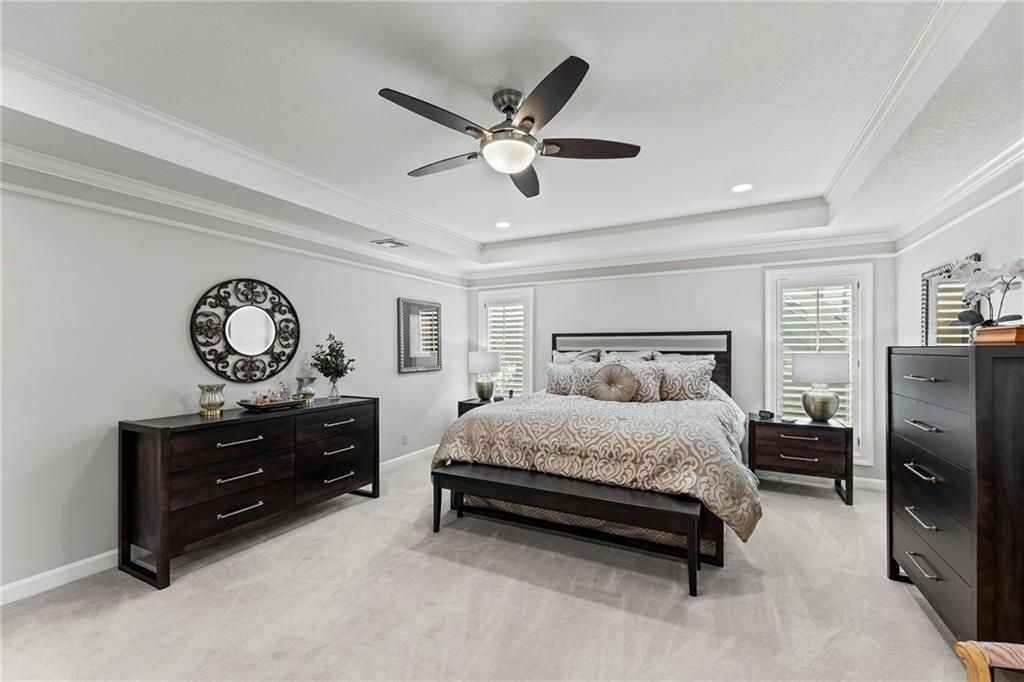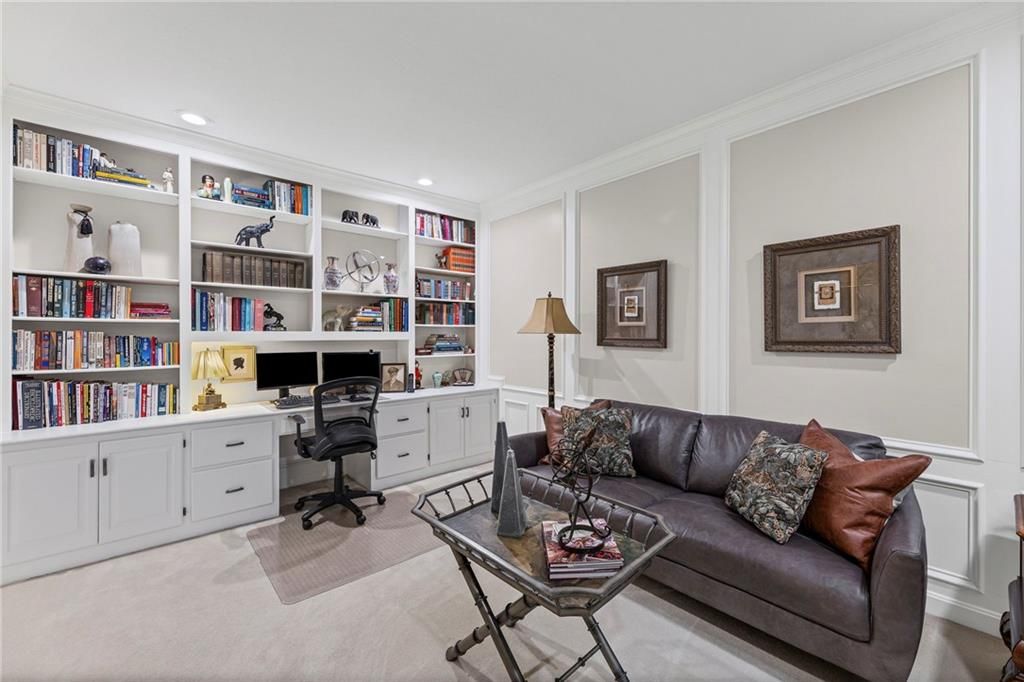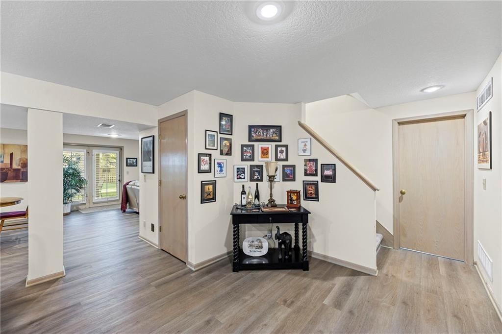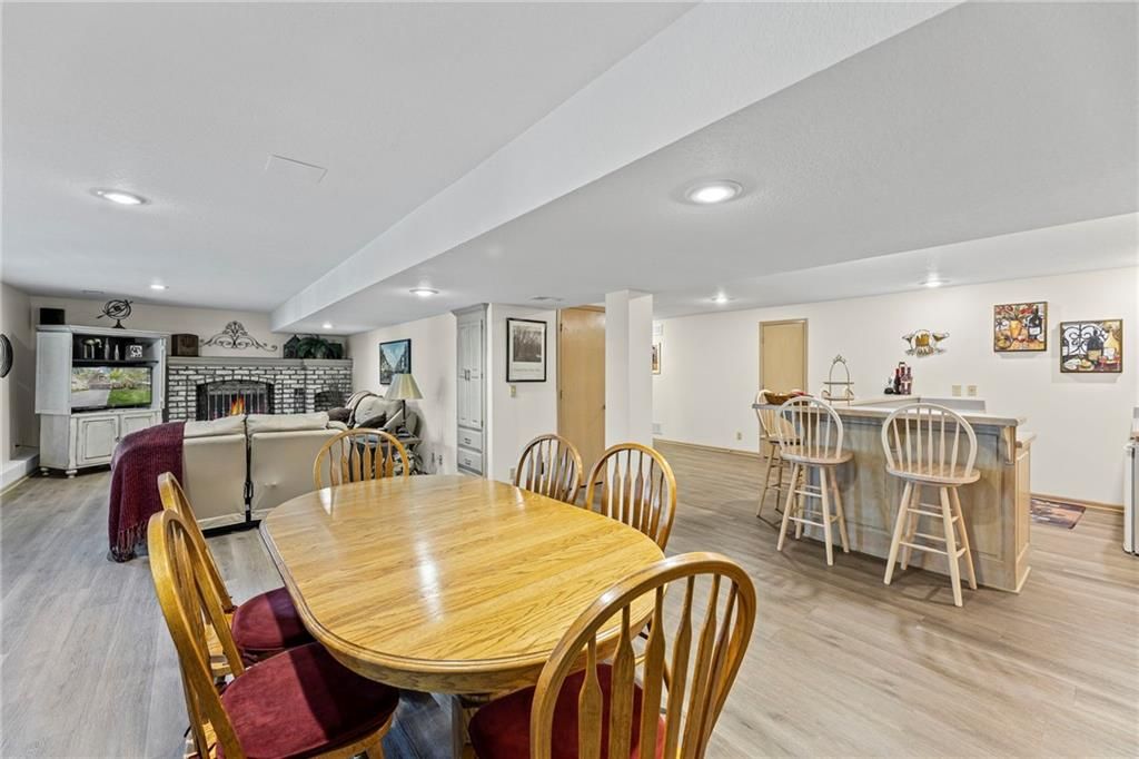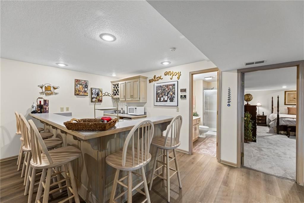 Discover a distinguished Tudor-style home by builder Jim Lambie. Nestled in the desired Leawood South neighborhood, this 6-bed, 4.5-bath, 4,584 sq ft home sits adjacent to the Country Club of Leawood golf course and minutes from the club house. Its stone-and-stucco exterior boasts exceptional curb appeal, setting it apart in this peaceful, family-oriented community - ideal for creating lasting memories. Crafted with robust double wall construction and zoned heating/cooling, this home ensures enduring comfort and efficiency. Gleaming hardwood floors, elegant wood plantation shutters, and three working fireplaces create a warm, sophisticated ambiance throughout. The expansive 0.32-acre lot offers a spacious backyard with ample privacy, perfect for outdoor activities or relaxation. A large deck enhances outdoor living, ideal for entertaining. The finished walk-out basement features a generous recreation area, an additional bedroom, and abundant storage. Custom built-in bookcases in the office add functionality and charm. Located in the top-rated Blue Valley School District, minutes from Town Center shopping and dining, this Leawood gem blends luxury with convenience. Seize the opportunity to own this extraordinary residence - schedule your private tour today to experience timeless elegance in Johnson County's premier community!
