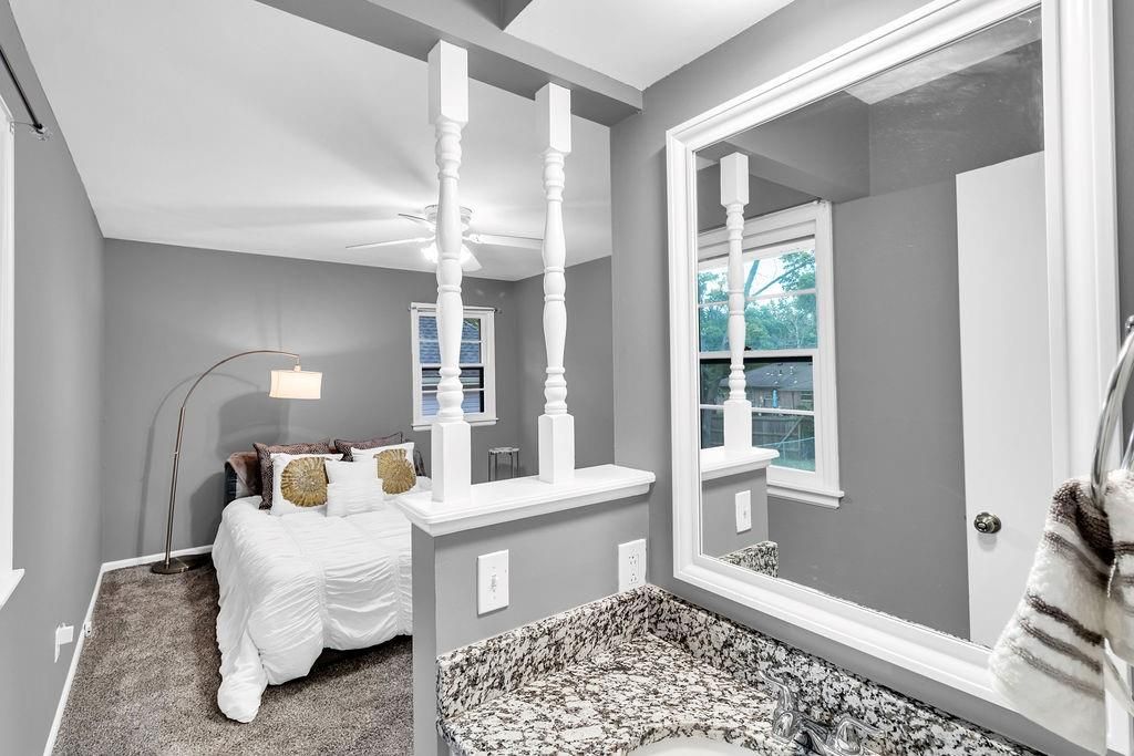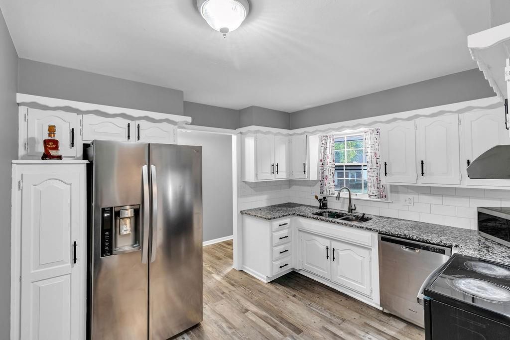 Beautifully maintained and truly move-in ready, this home features a new roof, new driveway, new basement carpet, and a new AC unit. The kitchen was updated with granite countertops, subway tile backsplash, stainless steel stove and dishwasher, and fresh paint inside. Both bathrooms were fully remodeled, including a main-level primary suite with a private bathroom and granite vanity. Enjoy the spacious, finished basement - perfect for a second living room, home office, or playroom - and a large, freshly seeded backyard ideal for entertaining. Located on a quiet street with easy highway access, close to Longview Lake, parks, a dog park, a skatepark, a community garden, and an amphitheater. All the big-ticket items have been taken care of - just move in and enjoy your new home!