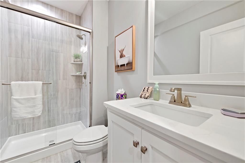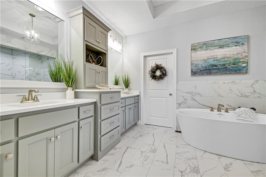 The best of both worlds! This home is nearly brand NEW (gently lived in for just over a year) and comes equipped with all the extras - MOTORIZED BLINDS, SCREENED IN PORCH, E/V CHARGER, GORGEOUS LANDSCAPING AND A TREED BACKYARD! This home is move-in ready. Upon entering this 4 bedroom/3 bathroom reverse 1.5 story home you will fall in love with the fantastic views of beautiful greenspace in Crestwood Village. The entry and living area, boasting 11-foot ceilings, hardwood floors, and exquisite architectural design will welcome guests straight into a luxurious kitchen - ready for entertaining. With a large granite island, gas cooktop, walk-in pantry, goose-neck faucet, S/S appliances and pendant lighting, this fresh, new space will be the perfect place to gather. The main level hosts a primary suite with and bathroom with a spa-like feel - walk in shower, soaking tub, and double-bowl vanity with quartz counters. Head straight into the HUGE, walk-in closet with 3-tiered off-season storage and continue next into the laundry room - so much convenience! On the main level, you will also find a second bedroom/flex room for guests to stay or to be utilized as a home office adjacent to a full bathroom. The lower level features a daylight basement, generous family room, 2 bedrooms, 1 bath, and a full bar with beverage center. Fourth bedroom with French-style doors in the lower level could be utilized as a yoga room or a home office. This home backs up to green space and has a beautiful, PRIVATE, OVER-SIZED composite deck with SCREENED-IN PORCH. Driveway is a private, single drive. Crestwood Village is maintenance provided - now your time is your own! Great location - close to shopping, restaurants, trails and parks. Don't miss out on this beautiful villa in a highly-desired location! Crestwood Village Sales office hours Monday - Saturday 11:00-4:30; Sunday 12-4:30; **Wednesday office is closed/or by appointment.**