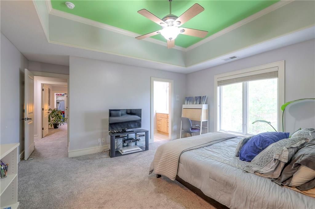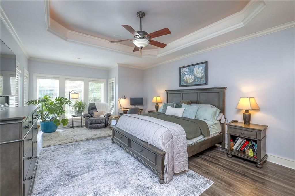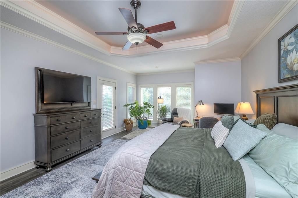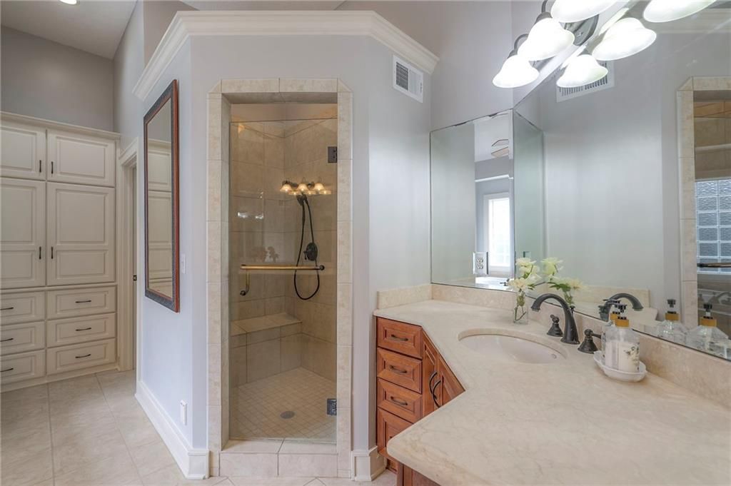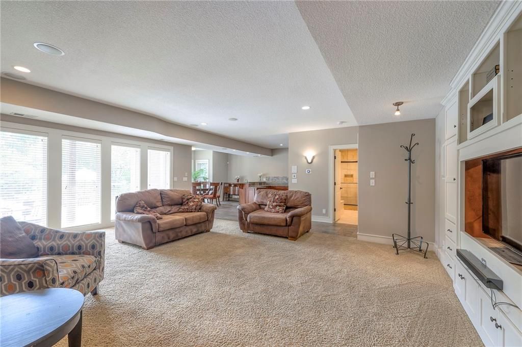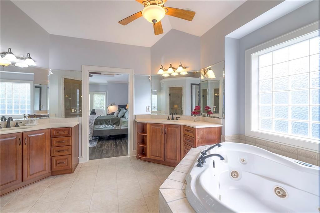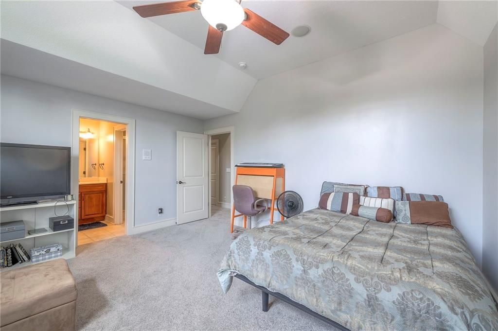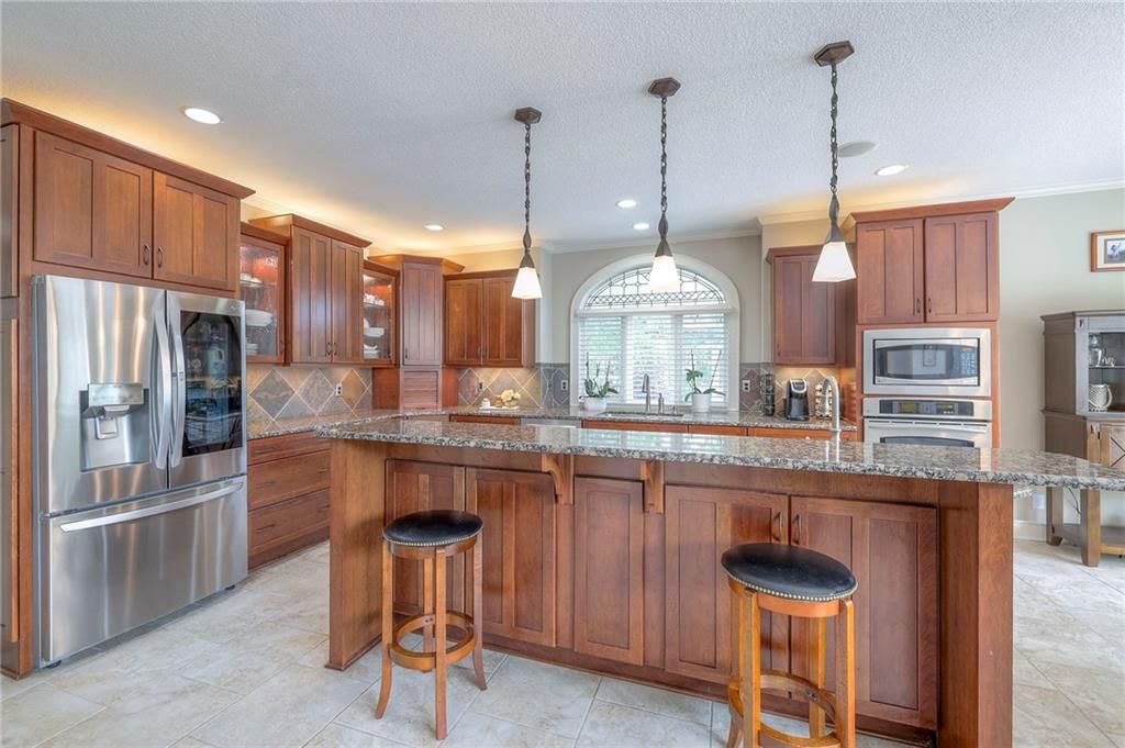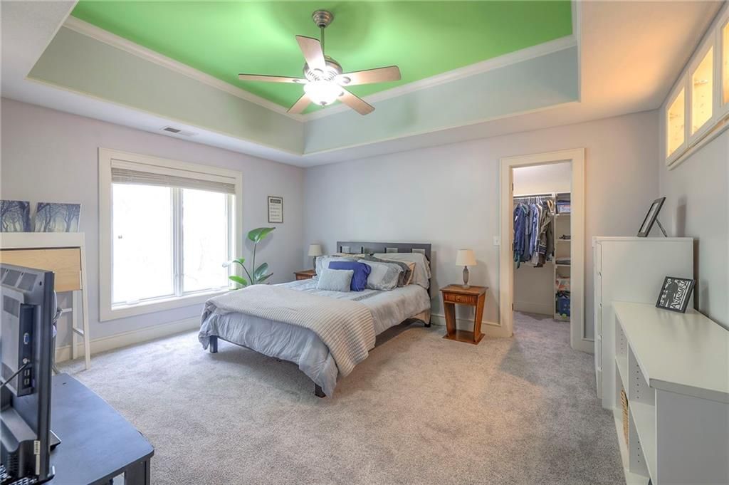 Welcome to this stunning 1.5-story home offering over 5,800 square feet of living space in a fantastic Overland Park location. The inviting entry opens to a formal dining room and home office, setting the tone for the amazing space throughout. The living room is warm and welcoming with vaulted ceilings, a cozy fireplace, and built-ins. The kitchen is truly the heart of the home, featuring an expansive island, double ovens, two sinks, a walk-in pantry, and generous countertop space. Just off the kitchen, a hearth room with its own fireplace and built-ins provides the perfect spot to gather. Step outside to a low-maintenance composite deck overlooking the private, treed backyard. The main-level primary suite is a retreat all its own, with a private balcony, spa-like ensuite bath featuring a walk-in shower and soaking tub, and a huge walk-in closet. A convenient laundry room rounds out the main floor. Upstairs, you'll find four spacious bedrooms, each with access to bathrooms and large closets. The finished walk-out basement is designed for entertaining, featuring a large rec room, a wet bar, and a separate space perfect for a pool table. A non-conforming sixth bedroom and abundant storage provide additional flexibility. Step outside to the backyard oasis, complete with a beautiful swimming pool, expansive patio, green space, and mature trees for privacy. This home is the complete package, spacious, functional, and perfect for both everyday living and entertaining.