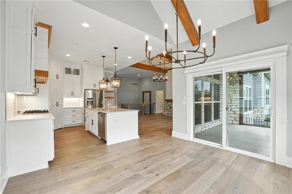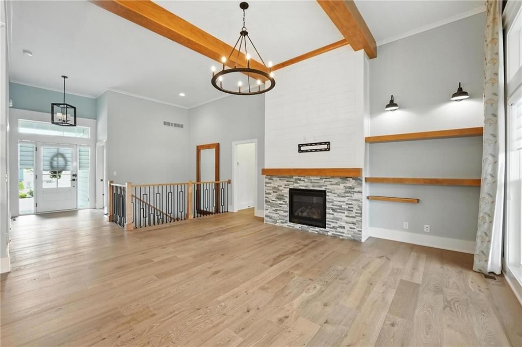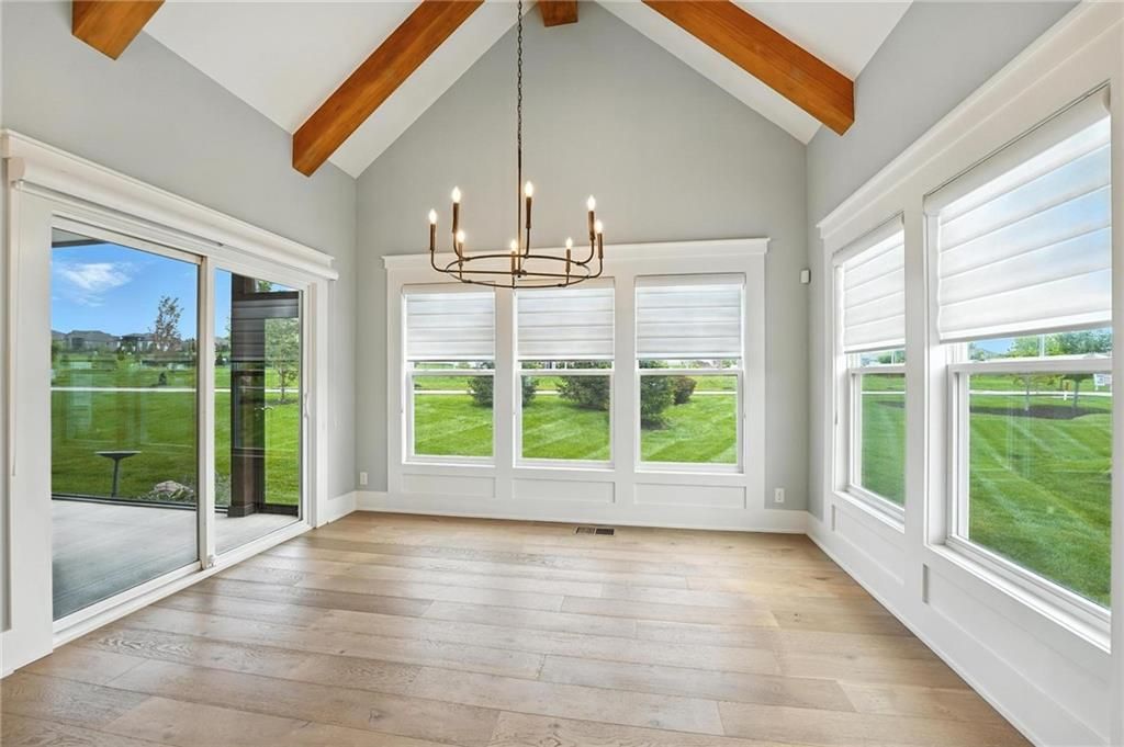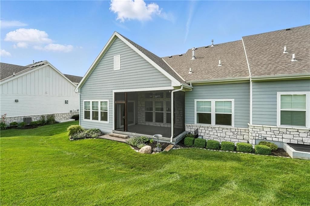 Step into luxury living in the sought-after Chapel Hill Villas community with this immaculate former James Engle Custom Homes model, built less than five years ago. This maintenance-provided villa blends high-end finishes with effortless, low-maintenance living and has been upgraded from new with a 4th bedroom and 4th bathroom. From the moment you enter, you'll notice the premium upgrades including wide-plank flooring, upgraded carpet, designer selected lighting, and custom high-end window treatments throughout. The open-concept layout is perfect for entertaining, with a spacious great room featuring a wainscoted fireplace, floating shelves, and wood-beam ceiling detail. The gourmet kitchen offers floor-to-ceiling cabinetry, a custom wood hood, quartz countertops, a gas cooktop, and stainless steel appliances. The vaulted dining area connects directly to a screened-in porch, perfect for morning coffee or evening relaxation. The primary suite is a serene retreat with a spa-like bath that includes a soaker tub, zero-entry shower, his and her separate vanities, and a walk-in closet that connects to the main-floor laundry and mudroom. The finished lower level features a recreation room with custom trim, full wet bar, a 3rd bedroom with access to a full bath, and a 4th bedroom with its own private en-suite bathroom. The 3 car garage has also been upgraded with a professionally installed polyaspartic epoxy floor. No expense was spared! Maintenance-provided services include landscape care and maintenance, along with limited snow removal, allowing you to enjoy all that the community has to offer. Located within the larger Chapel Hill subdivision, residents enjoy two swimming pools, pickleball courts, a clubhouse, a children's playground, miles of walking trails, and close proximity to Heritage Park. Whether you're looking to downsize without compromise or want a move-in-ready home with style and comfort, this Chapel Hill Villas gem is ready to welcome you.