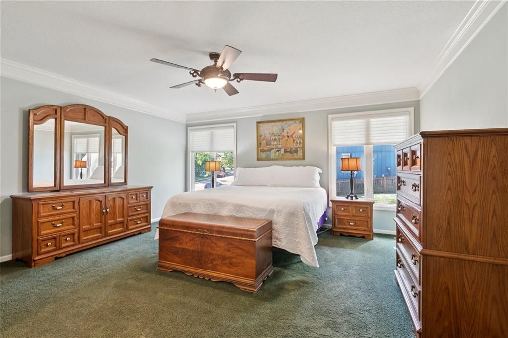 Beautiful custom built 4 bedroom home situated on corner lot. 3-car garage. High end finishes not often seen in this price point. Main floor master. Everything has been updated and meticulously cared for. Second bedroom on main level is currently used as an office with custom built-in but could also be nursery or library. Please open the closet in upstairs bedroom to discover the largest closet/storage in Lenexa! Relax in the evening under the cozy backyard gazebo. One owner home. Finished space in the basement is currently used as a bedroom but would be a perfect playroom, mancave or 2nd living space. Oversized 3 car garage. The HOA covers trash pickup and maintenance of public areas y in subdivisions. Nestled in a quiet and friendly neighborhood just a few blocks from 103rd and Pflumm, you'll find it conveniently located near JCCC, OP Regional Hospital, Oak Park Mall, and Corporate Woods. Plus, Rock Creek Park nearby offers a pool, tennis courts, and a playground. Don't miss the opportunity to make this stunning home yours!