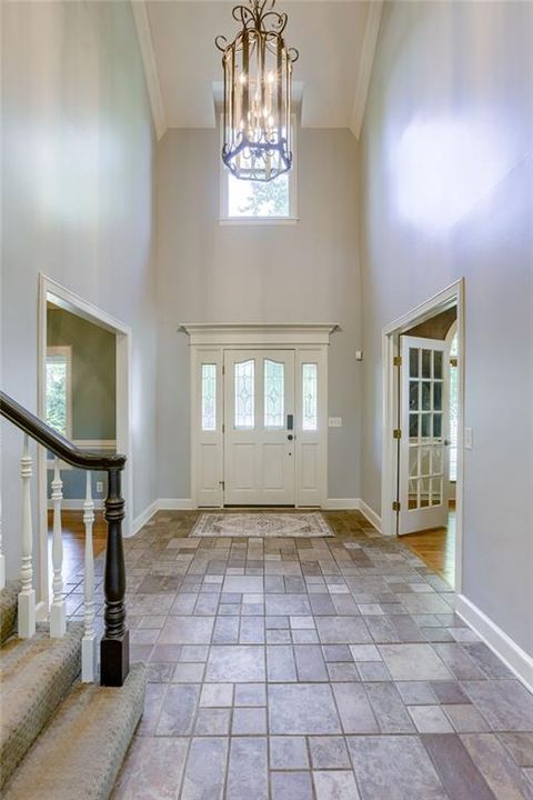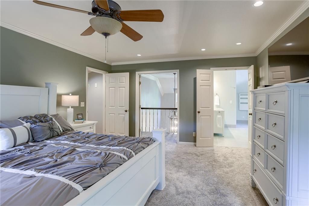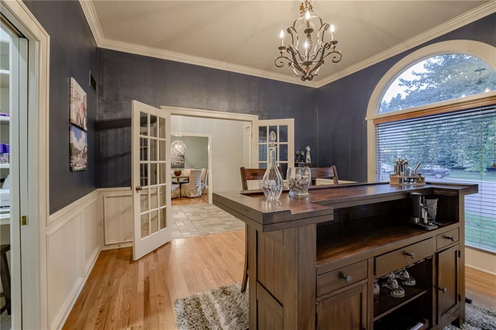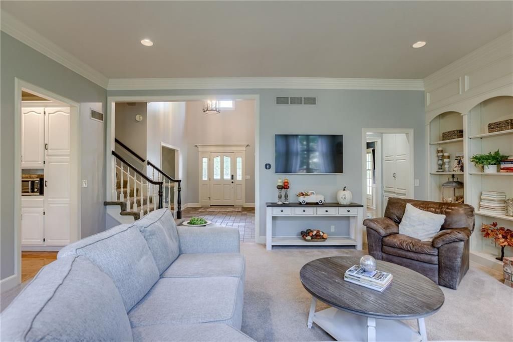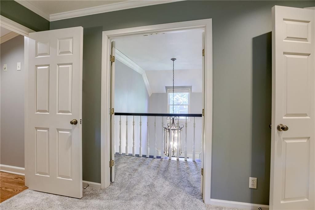 Nestled in a friendly cul-de-sac in the vibrant Nottingham Forest South, this charming 2-story home is all about style and spacious living! You ll be greeted by a fabulous two-story entryway that invites you into an open and airy layout. Sunlight dances through the floor-to-ceiling windows in the great room and the beautiful built-ins flank the brick fireplace creating a warm atmosphere perfect for family gatherings. The traditional floorplan is adorned with loads of crown molding, wainscoting and trim, unique to homes today. There's spacious dining room with hardwood floors, a large picture window and main floor office with French doors ideal for working from home. Plus, a cool pass-through area with built-in shelves & cabinetry makes a creative mommy jump station to keep the kids organized! The well-equipped kitchen, features a Viking range, stainless steel appliances, granite countertops, and cabinet space. galore. The adjoining butler pantry is ideal for a coffee bar or wine station. When it s time to unwind, escape to the serene screened-in porch or step out onto the expansive deck perfect for summer BBQs & outdoor hangouts. The fenced backyard is a kid s paradise, complete with a slide that leads right into a spacious play area for endless fun! With not one, but two primary ensuites, this home is perfect for hosting family and friends. The primary bedroom features French doors that open to a balcony area, a cozy reading nook and recently renovated master bath with a freestanding tub and shower making this a peaceful retreat. The secondary bedrooms are spacious and inviting, and the huge upstairs laundry room comes with a handy linen closet. The finished walkout basement is an entertainer s dream! It opens right to the backyard and includes a second fireplace, a fifth bedroom for guests, and an additional full bath. Living here means you re just a hop, skip, and jump from the community pool, swim team, and clubhouse, tennis courts, walking trails and more.
