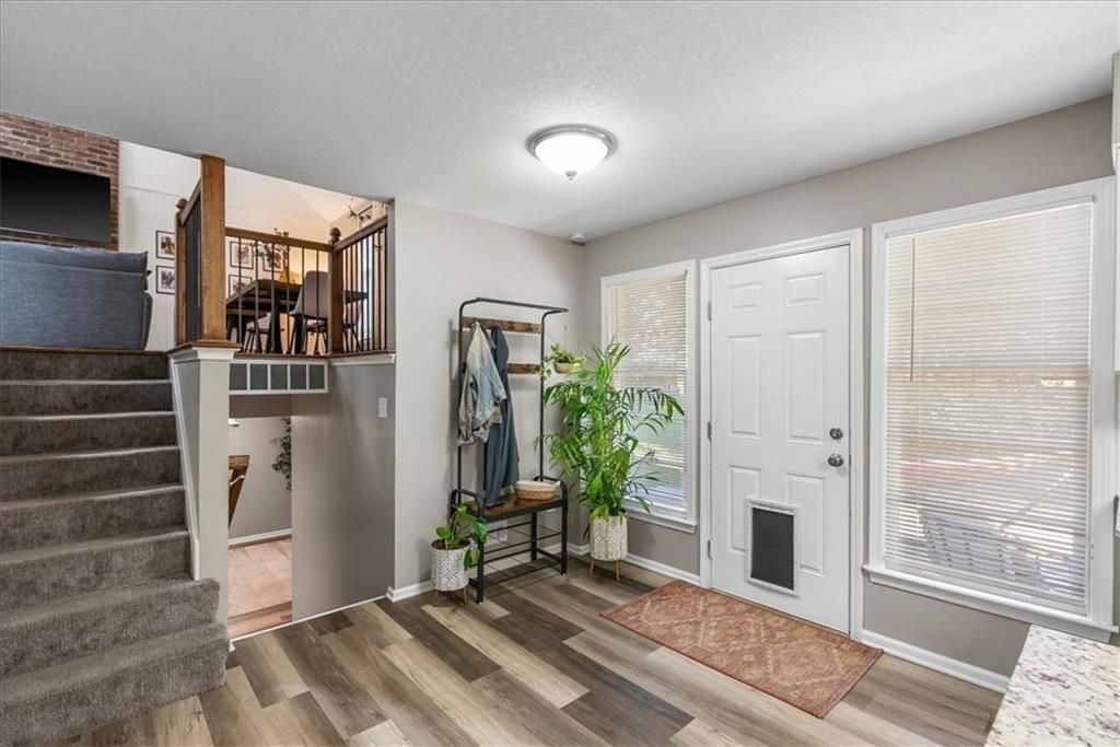 Charming Olathe Split-Level Packed with Upgrades! Fall in love with this beautifully updated side-to-side split offering incredible value and move-in ready comfort. Step into the spacious vaulted living and dining area with hardwood floors that flow into an updated kitchen featuring white cabinets, granite countertops, and a subway tile backsplash - perfect for cooking and entertaining. Upstairs, you'll find three comfortable bedrooms, including a primary suite with a private bath and walk-in shower. The hall bath includes a shower-over-tub combo for added convenience. The finished lower level provides even more living space - ideal for a cozy movie room, play area, or home office. Enjoy peace of mind with major updates already done for you: a 3-year-old roof, 3-year-old HVAC system, and 3-year-old water heater, plus a newer driveway and low-maintenance vinyl siding. The fully fenced backyard offers the perfect spot to relax, play, or host gatherings. Located in the award-winning Olathe School District, this home combines style, comfort, and value in one great package. Don't miss your chance - schedule a showing today and see why this one feels like home!