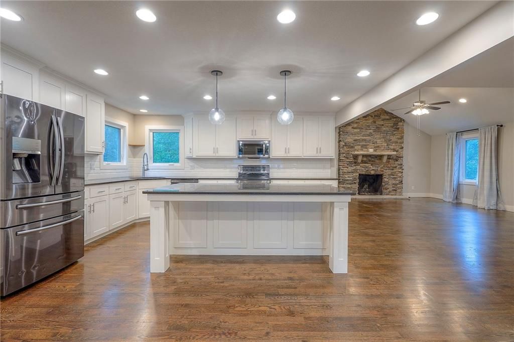 Over 4,000 Sq. Ft. of Fully Remodeled Living! This incredible home is truly one you have to see to believe! With over 4,000 square feet of beautifully remodeled and updated living space, it offers an unbeatable value at this price. Step inside to soaring ceilings, gleaming wood floors, and a stunning open-concept layout with a large white kitchen, stainless appliances, oversized island, and vaulted great room with a grand fireplace. The spacious primary suite is a private retreat with a luxury spa like primary bathroom and large walk-in closet. Upstairs you'll find a separate suite with full bath and walk-in closet. The lower level expands your living options even further with ANOTHER separate suite with full bath and walk-in closet, and a huge secondary living room with fireplace. These versatile living spaces are perfect for guests, teens, multi-generational living, or office space. Additional office space, recreation area, and walk-out access to a large deck and private backyard that backs to trees and a natural stream. Everything has been thoughtfully updated - inside and out - making this home truly move-in ready. With multiple living spaces, abundant storage, and a fantastic location near great schools, shopping, and amenities, this is your chance to own a home that feels like new with the size and space you've been searching for.