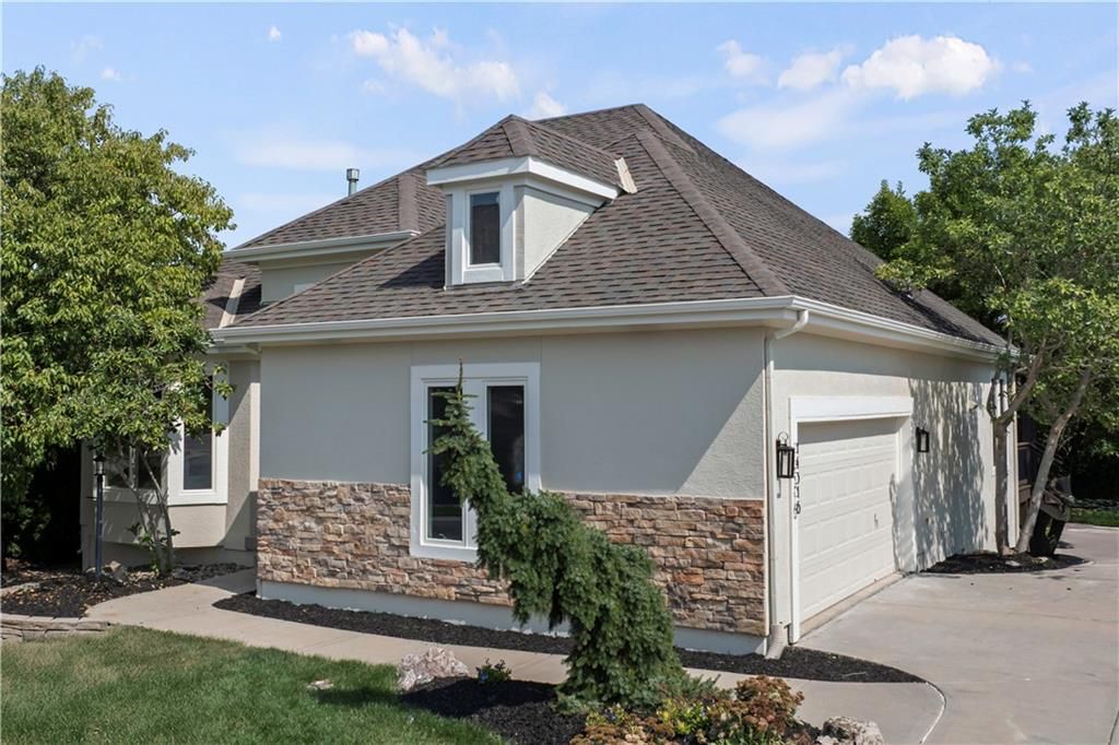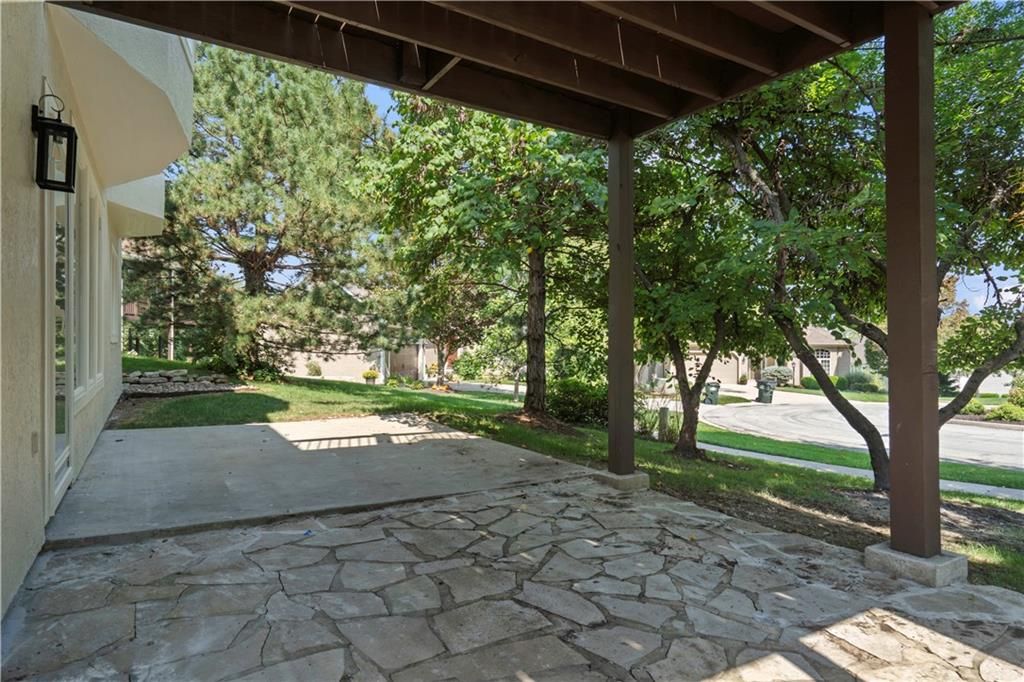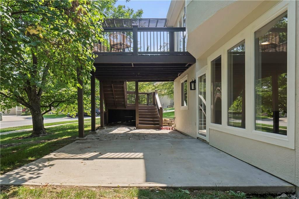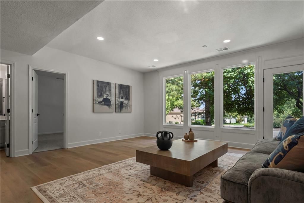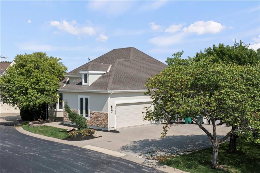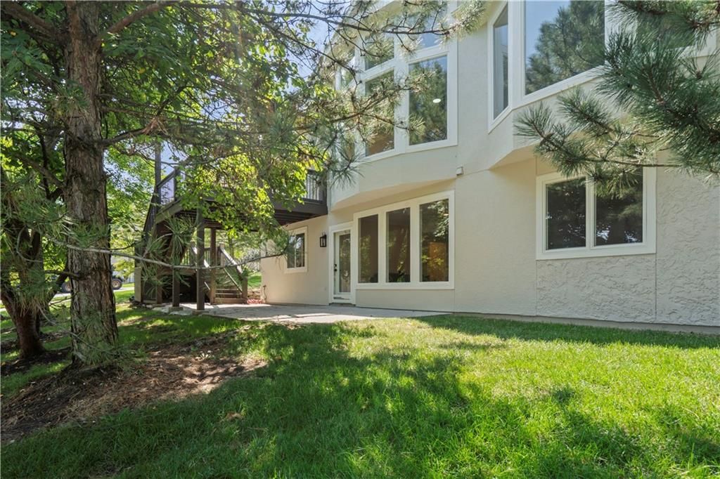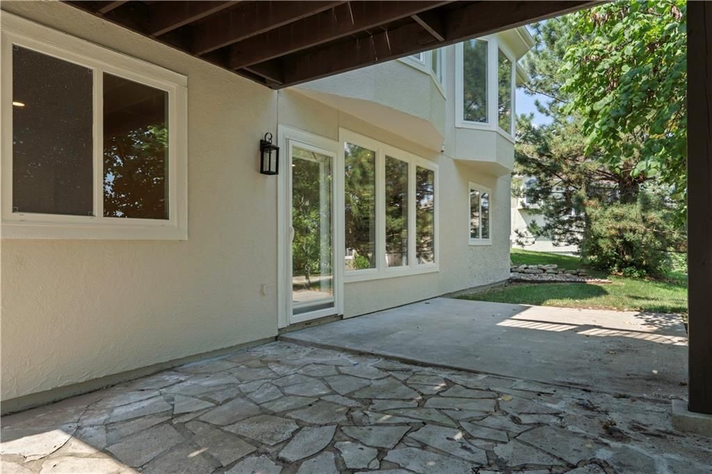 GORGEOUS, COMPLETELY REMODELED PATIO VILLA IN CAMDEN WOODS - BLUE VALLEY SCHOOL DISTRICT! Step inside to discover beautifully refinished hardwood floors flowing seamlessly through the main living areas. The inviting Great Room boasts a wall of windows that fill the space with natural light, plus a central fireplace for cozy nights in. Chef's kitchen is sure to impress with quartz countertops, eat-in peninsula, stainless steel appliances (ALL STAY!) and a pantry with pull-out drawers. An adjacent dining area opens to the deck - perfect for entertaining or simply relaxing outdoors. Main level features two bedrooms with walk-in closets, including a luxurious primary suite with spa-like en-suite showcasing a double vanity, soaking tub and separate glass-surround shower. The second bedroom, with French doors and direct bath access, makes an ideal guest room or home office. Full, finished walk-out lower level expands your living space with a bright family room and wet bar, two additional bedrooms, a third full bath and a bonus flex room - ideal for a wine cellar, pocket office, craft space, or workout room. Enjoy the ease of maintenance-free living in a premier location just minutes from parks, golf, shopping, dining, and more. Welcome home to Camden Woods - where style, comfort, and convenience come together!