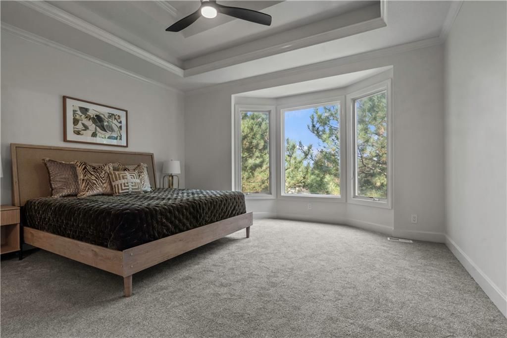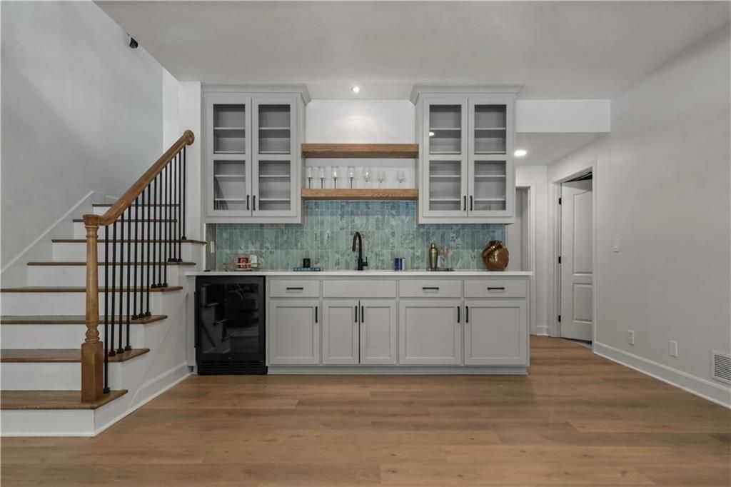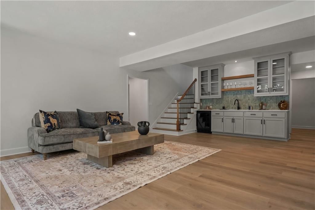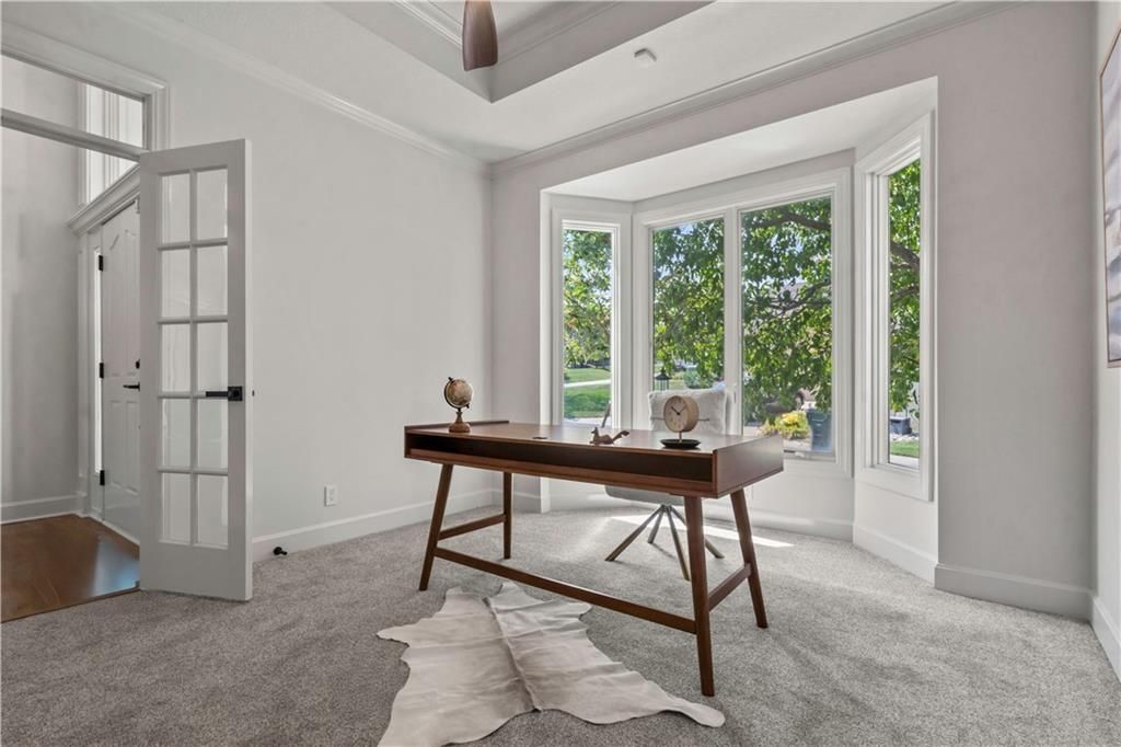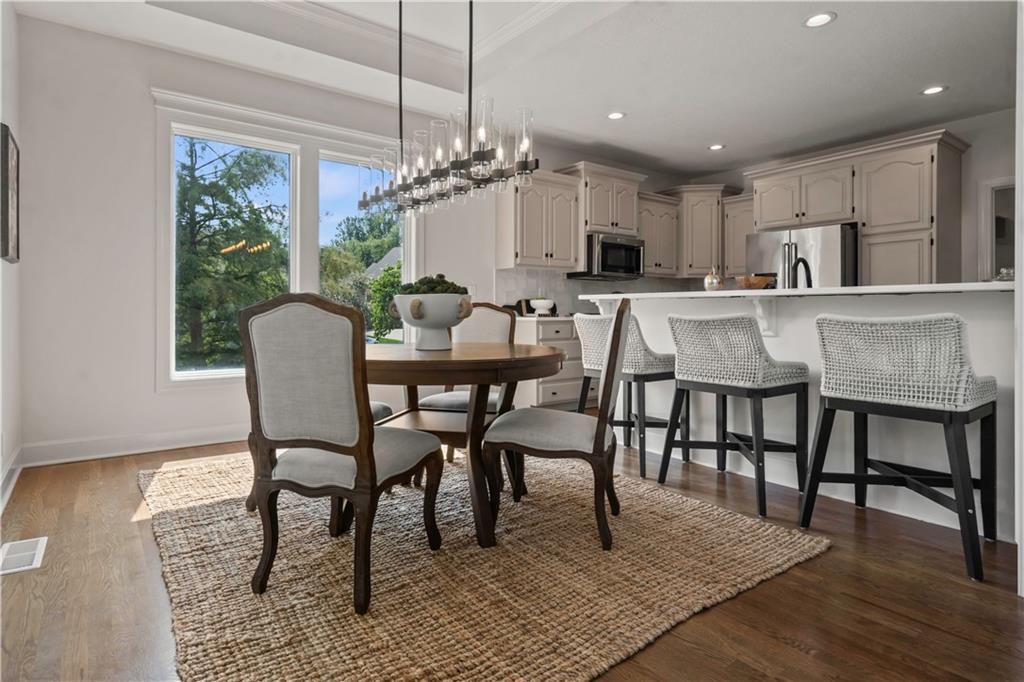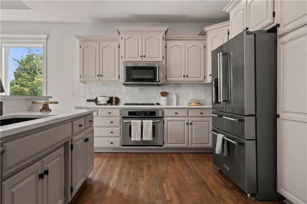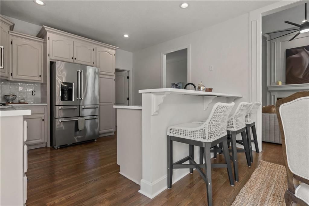 GORGEOUS, COMPLETELY REMODELED PATIO VILLA IN CAMDEN WOODS - BLUE VALLEY SCHOOL DISTRICT! Step inside to discover beautifully refinished hardwood floors flowing seamlessly through the main living areas. The inviting Great Room boasts a wall of windows that fill the space with natural light, plus a central fireplace for cozy nights in. Chef's kitchen is sure to impress with quartz countertops, eat-in peninsula, stainless steel appliances (ALL STAY!) and a pantry with pull-out drawers. An adjacent dining area opens to the deck - perfect for entertaining or simply relaxing outdoors. Main level features two bedrooms with walk-in closets, including a luxurious primary suite with spa-like en-suite showcasing a double vanity, soaking tub and separate glass-surround shower. The second bedroom, with French doors and direct bath access, makes an ideal guest room or home office. Full, finished walk-out lower level expands your living space with a bright family room and wet bar, two additional bedrooms, a third full bath and a bonus flex room - ideal for a wine cellar, pocket office, craft space, or workout room. Enjoy the ease of maintenance-free living in a premier location just minutes from parks, golf, shopping, dining, and more. Welcome home to Camden Woods - where style, comfort, and convenience come together!
