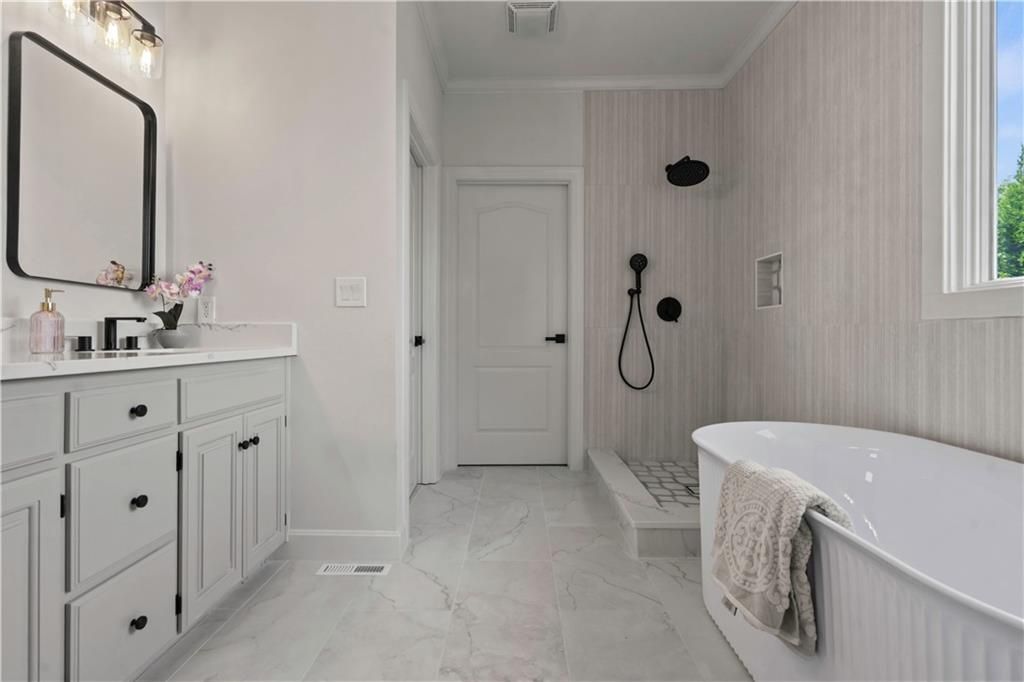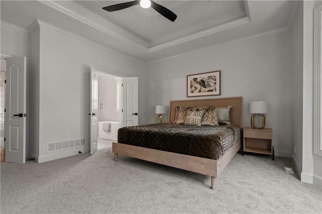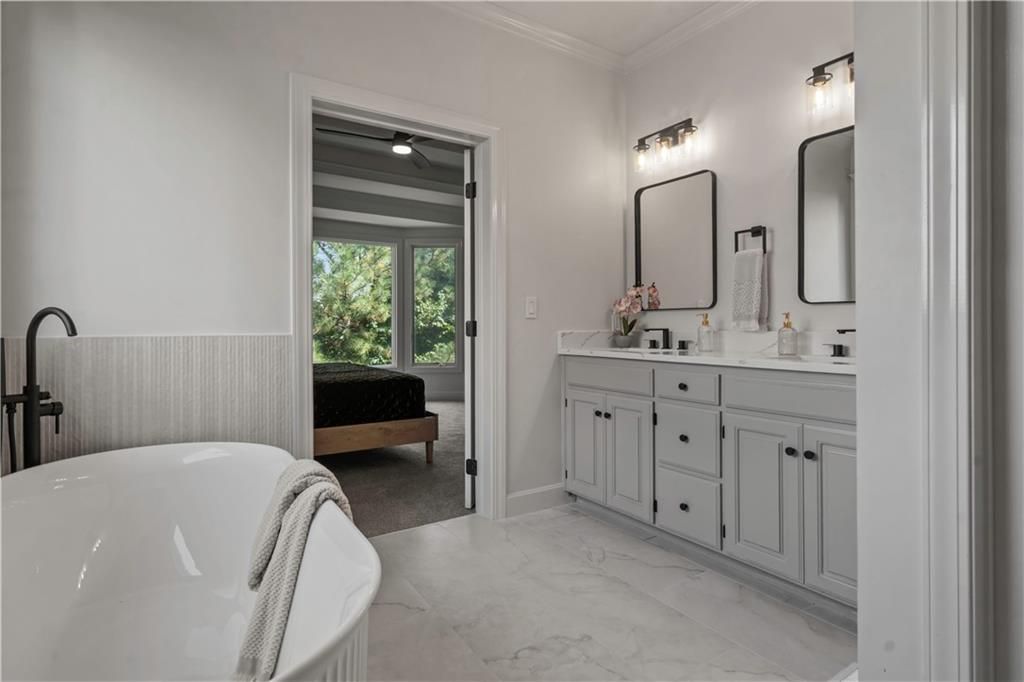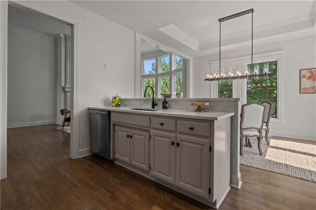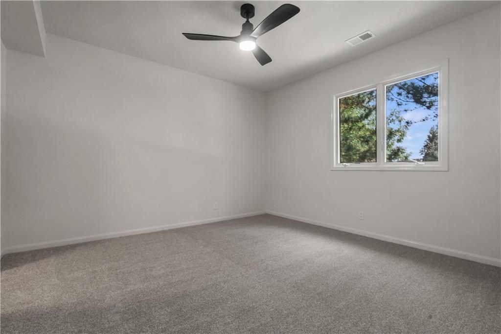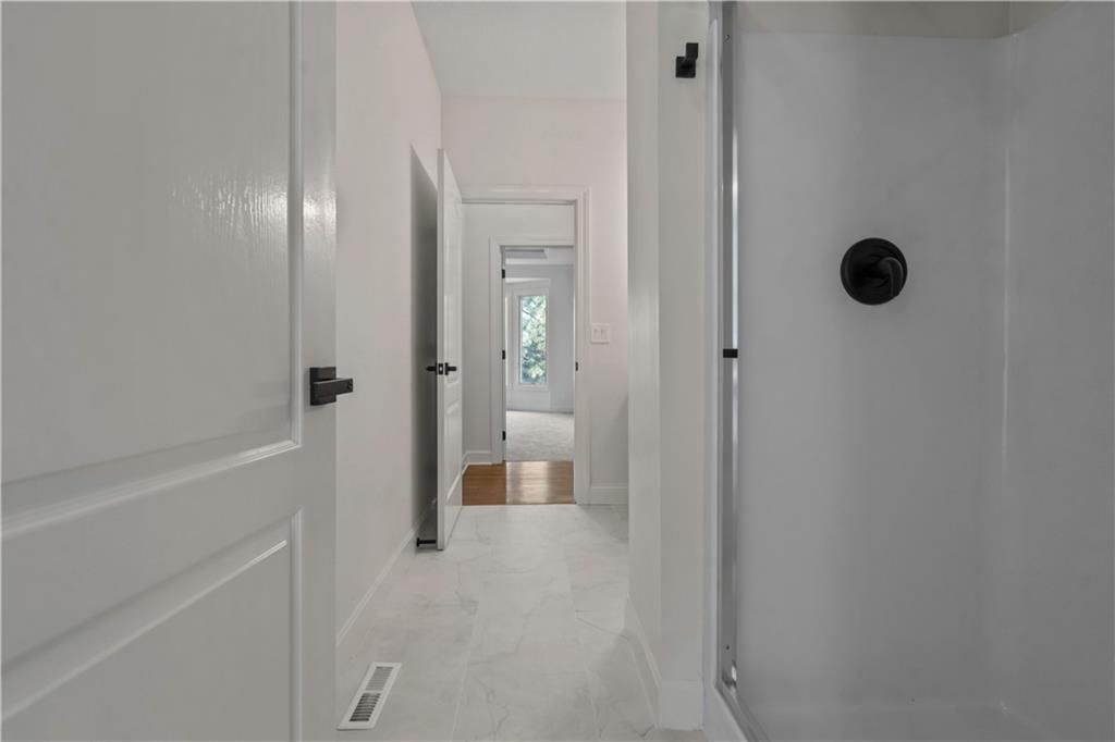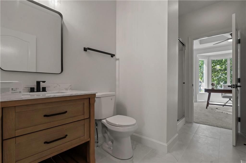 GORGEOUS, COMPLETELY REMODELED PATIO VILLA IN CAMDEN WOODS - BLUE VALLEY SCHOOL DISTRICT! Step inside to discover beautifully refinished hardwood floors flowing seamlessly through the main living areas. The inviting Great Room boasts a wall of windows that fill the space with natural light, plus a central fireplace for cozy nights in. Chef's kitchen is sure to impress with quartz countertops, eat-in peninsula, stainless steel appliances (ALL STAY!) and a pantry with pull-out drawers. An adjacent dining area opens to the deck - perfect for entertaining or simply relaxing outdoors. Main level features two bedrooms with walk-in closets, including a luxurious primary suite with spa-like en-suite showcasing a double vanity, soaking tub and separate glass-surround shower. The second bedroom, with French doors and direct bath access, makes an ideal guest room or home office. Full, finished walk-out lower level expands your living space with a bright family room and wet bar, two additional bedrooms, a third full bath and a bonus flex room - ideal for a wine cellar, pocket office, craft space, or workout room. Enjoy the ease of maintenance-free living in a premier location just minutes from parks, golf, shopping, dining, and more. Welcome home to Camden Woods - where style, comfort, and convenience come together!