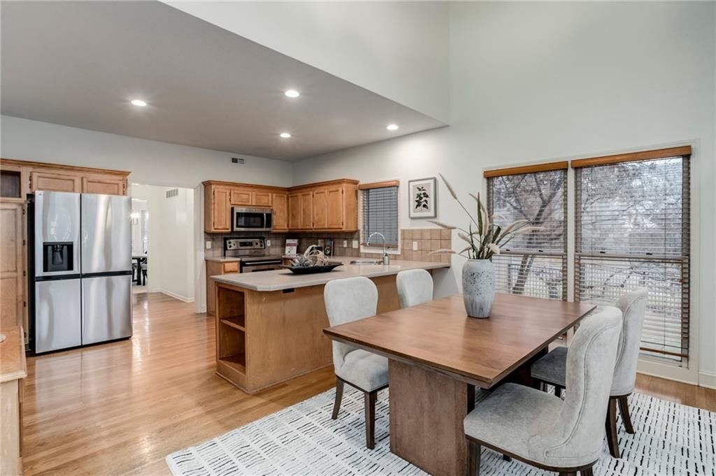 Situated on a corner lot in Brookhollow, this two-story home blends timeless design with modern updates and neighborhood convenience. A bright two-story foyer opens to formal dining and an inviting living area with a fireplace and backyard views. The open-concept kitchen features a large island, tile backsplash, and new stainless appliances (2025). Fresh interior paint (2025) and new carpet (2025) add a clean, move-in-ready feel throughout. The primary suite includes a bonus office / sitting area with its own fireplace, ideal for remote work or quiet retreat. The primary bath offers dual vanities, a soaking tub, and separate shower. Three additional bedrooms and two full baths complete the upper level. A new roof (2025) and new HVAC (2024) provide peace of mind, while the three-car attached garage offers plenty of parking and storage. The unfinished basement presents future expansion options for fitness, recreation, or storage. Step outside to a fully fenced backyard designed for outdoor enjoyment, featuring a spacious deck overlooking a center fire pit - perfect for gathering under the stars. Located within the Blue Valley School District, this home offers easy access to parks, shopping, dining, and Highway 69. Enjoy local favorites like Starbucks (0.8 mi), Deanna Rose Children's Farmstead (1.3 mi), and Scheels Overland Park Soccer Complex (1.5 mi). Don't miss this well-maintained Brookhollow property combining comfort, function, and recent updates - all in one desirable Overland Park location.