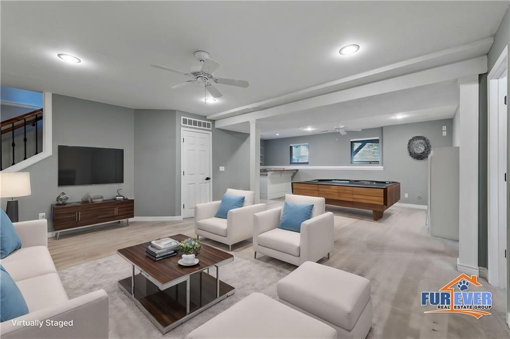 Come see this updated and wonderfully cared for home in the coveted Wilderness subdivision! Approximately $160k in updates in the last 10 years! 5 bedrooms, 4.5 bathrooms, and a finished basement offers lots of possibilities. Open floor plan with lots of natural light. Tons of updates including a huge main level remodel featuring new kitchen cabinets with soft-close doors, appliances, sink, faucet, backsplash, refinished hardwood floors, new front and back doors, and is one of the few homes in the subdivision that has a walk-in pantry! You won't want to miss the updated primary bathroom that was beautifully done. The AC was recently replaced and includes a 2-zone, electronic damper system so the upstairs can stay the same temp as the downstairs. This home also boasts a 50-year roof and extra insulation in the attic. Entertain on your 2-tier deck, with low-maintenance composite floor boards or hang around a fire pit on the paver patio. Lots of beautiful landscaping surrounds this home too! The subdivision includes a nice community pool, kiddie pool, play area, lots of walking trails, and Wilderness Lake Park that is stocked with fish! The highly rated elementary, middle, and high schools are all within walking distance. Bluhawk, Prairiefire, and Corbin Park are a short drive and provide several shopping and restaurant choices. Quick and easy access to 69 highway too! Make plans to see this home soon and you'll be glad you did! *The kitchen cabinets are more of a gray color and not the blue color that they appear to be in some of the pictures.