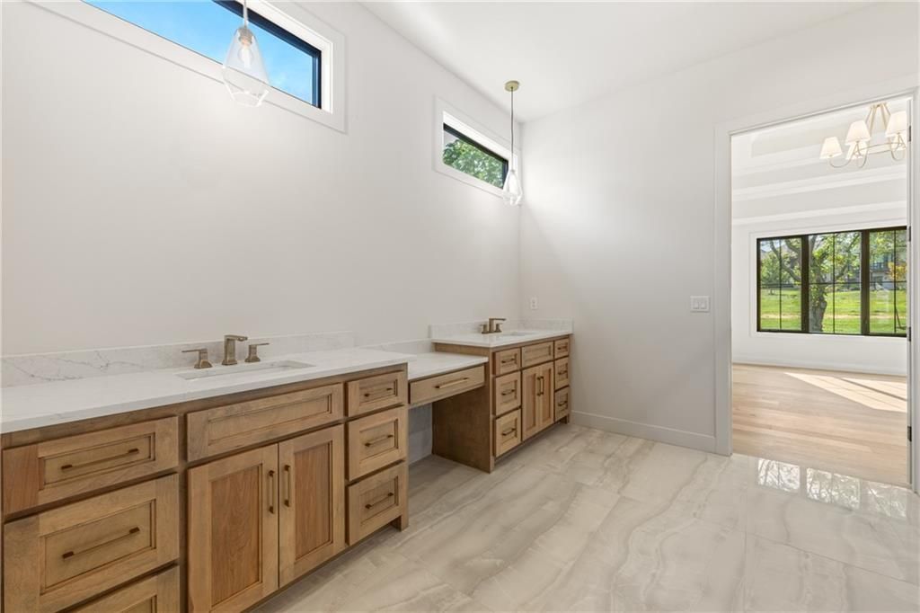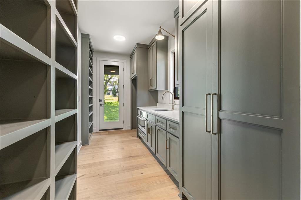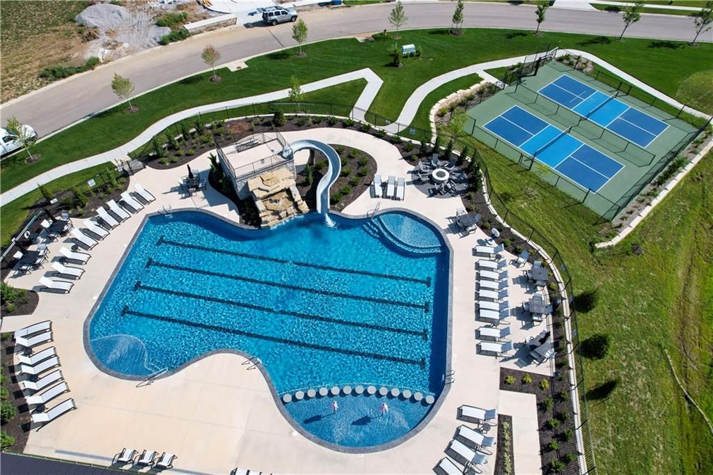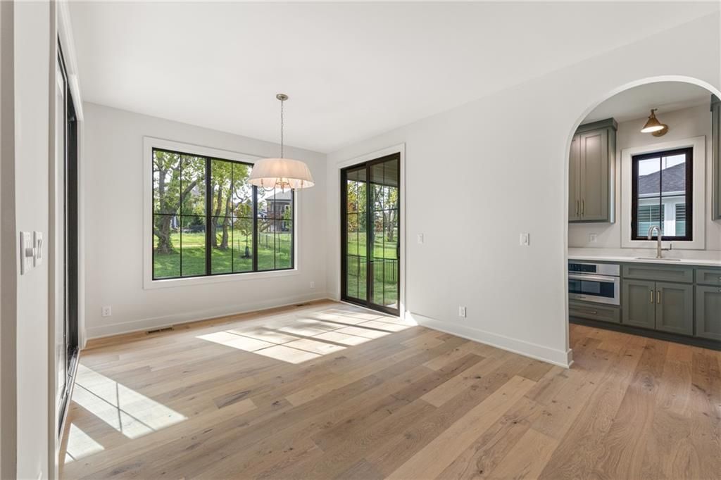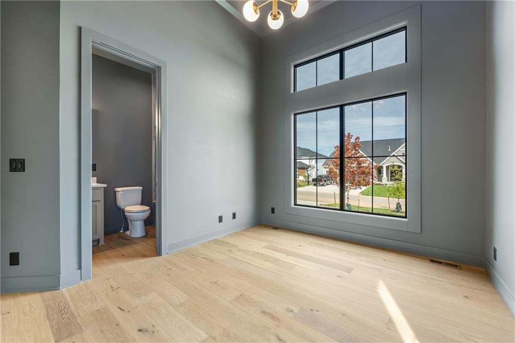 The stunning Roosevelt 1.5 Story by Bickimer is READY FOR MOVE IN on Lot 210 backing to green space with large trees. A truly unique floor plan and so many reasons to fall in love with this home. Features include: Curved open staircase, huge oversized modern black and clear glass front door that pivots open, premium RHINO black windows, long mud hall with door to the back yard, prep pantry hallway, main floor office, stunning kitchen with drop in Thermador range with griddle, upgraded curved wood vent hood, upstairs loft, reading nook, atrium style dinning room with large windows. This plan is a unique layout with grand two story great room with cast concrete fireplace and wood accent ceiling beams. Unique mud room hallway that passes through the pantry with a door out to 7' X 7' grill patio. Optional finished basement can be added with wet bar and stunning mid century modern TV accent feature wall with wood panels as photos from previous model home. All situated on a level lot with patio slider doors to a 12' X 19' covered patio to enjoy your back yard BBQ's and events with ease from the main level. Stucco exterior with real stone trim. Century Farms has a beautiful club house with fitness center and reading loft, pool with slide and fire pit, pickleball courts, kids play area and community garden. Come join the fun in Century Farms, a unique one of a kind upscale community in Overland Park. BLUE VALLEY SCHOOLS *Some photos are from a previous model home*