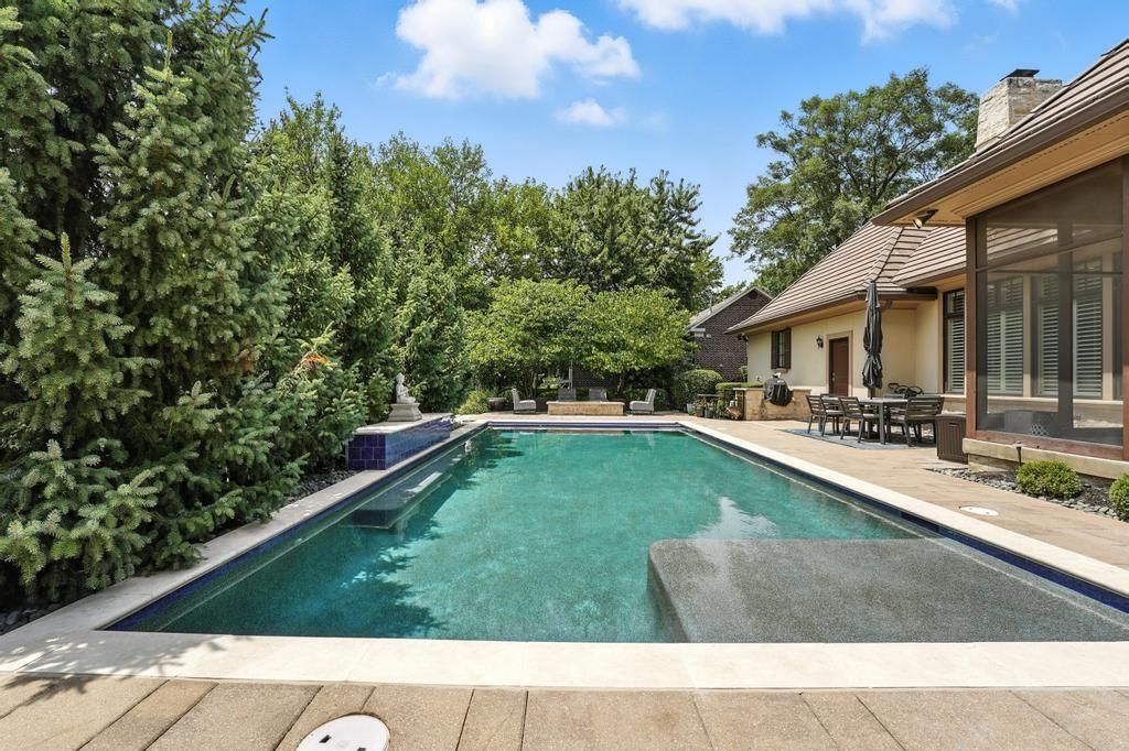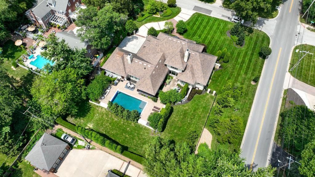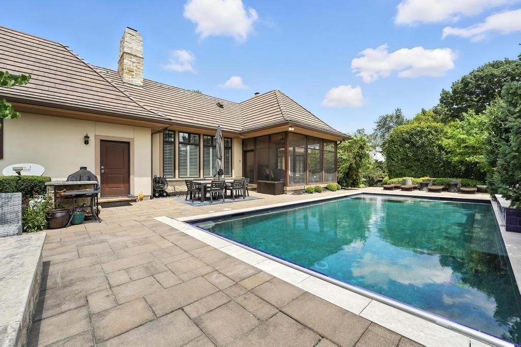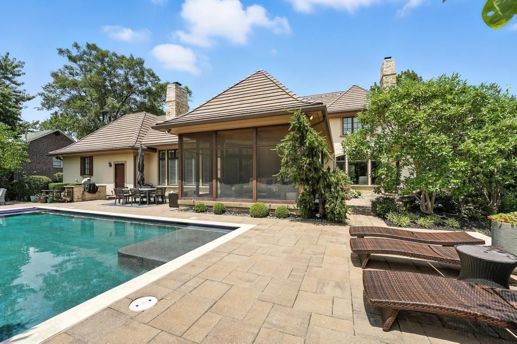 Designed by acclaimed builder Rick Standard, this remarkable custom 1.5-story home offers an elevated lifestyle in the heart of prestigious Mission Hills. Situated on a meticulously landscaped, estate-sized lot, the property boasts 5 spacious bedrooms and a rare 4-car garage - blending timeless craftsmanship with modern livability. Inside, you'll find elegant living spaces and a thoughtfully designed floor plan. The finished lower level is an entertainer's dream, featuring a large family room, stylish wet bar, and a dedicated exercise room. Step outside to your own private resort: a screened-in porch, multiple patios, and a stunning pool complete with a tranquil water feature and firepit create an unmatched setting for year-round relaxation and entertaining. This is a rare opportunity to own an exceptional home in one of Kansas City's most sought-after neighborhoods.
