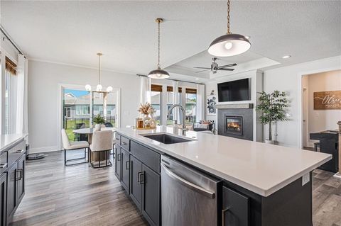 PRICE IMPROVEMENT and Quick Close Available! Skip the wait on new construction - this 4 bed, 3 bath Magnolia plan in sought-after Dayton Creek is move-in ready with designer lighting, fenced backyard, and finished basement. Spacious great room with 10' tray ceilings, fireplace, and oversized windows. Expanded kitchen with large island, walk-in pantry, and dining area that opens to a covered patio. Main-floor primary suite with spa-like bath, walk-in closet, and laundry access. Lower level includes rec room, 2 bedrooms, full bath, and a finished flex space prepped for golf simulator (simulator not included). Lawn care and snow removal provided. Enjoy walking trails, pickleball, pool, clubhouse, and new elementary school nearby.