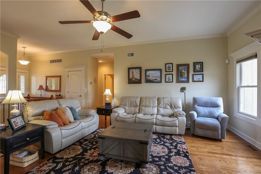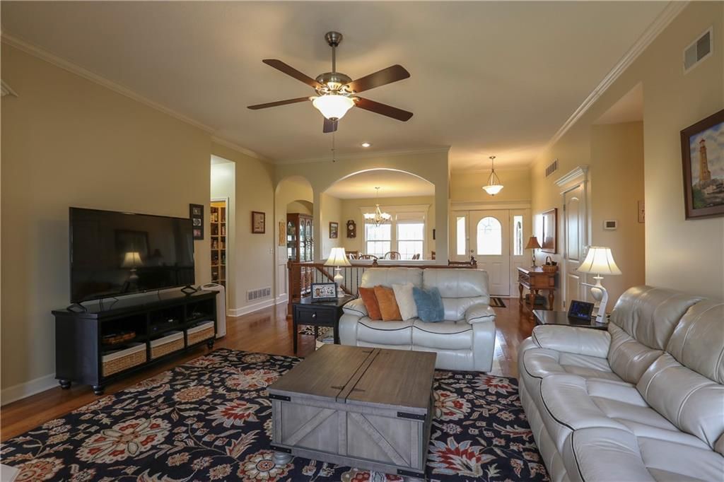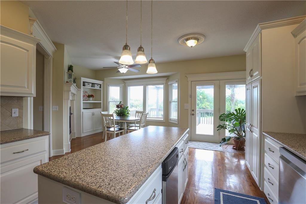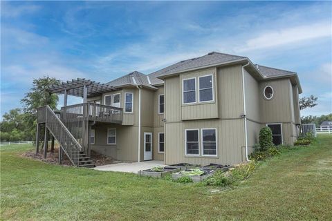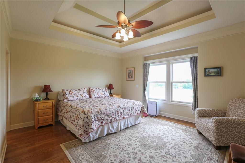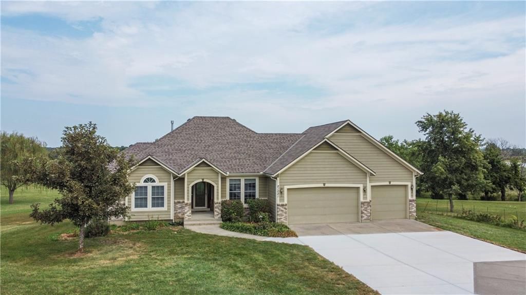 Gorgeous Reverse 1.5-Story on 3 Acres! Well-maintained home with open floor plan perfect for entertaining. Spacious kitchen features island, walk-in pantry, newer appliances, trash compactor, and propane range. Hearth room with see-thru gas fireplace adds warmth and charm. Main floor primary suite boasts large walk-in closet, whirlpool tub, and tiled shower. Built-ins throughout offer added function and style. Finished walk-out basement includes an additional finished room and plenty of storage. Newer wood flooring throughout main living areas. Home includes a newer 24KW Generac generator (propane-fueled) with automatic on/off for seamless backup power. Propane also supports the range, two water heaters, and furnace. Currently outfitted with Blink cameras, and Brinks security hardware is installed but has never been activated, giving you flexible security options! Serene 3 acre setting offers privacy and room to roam, this one checks all the boxes!