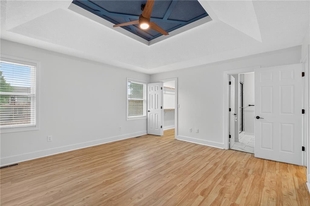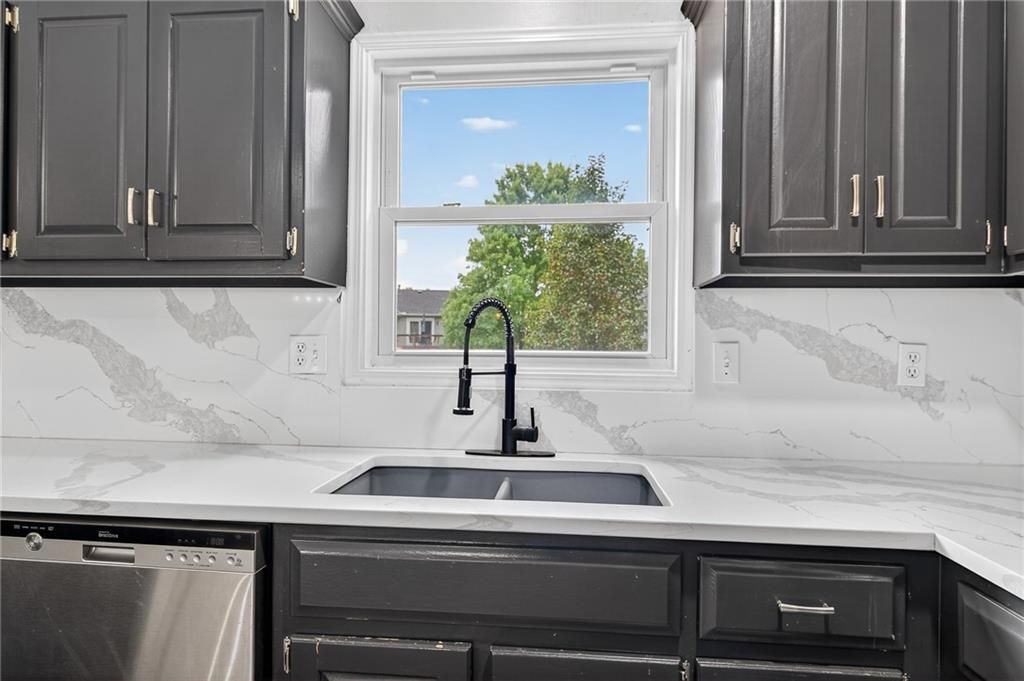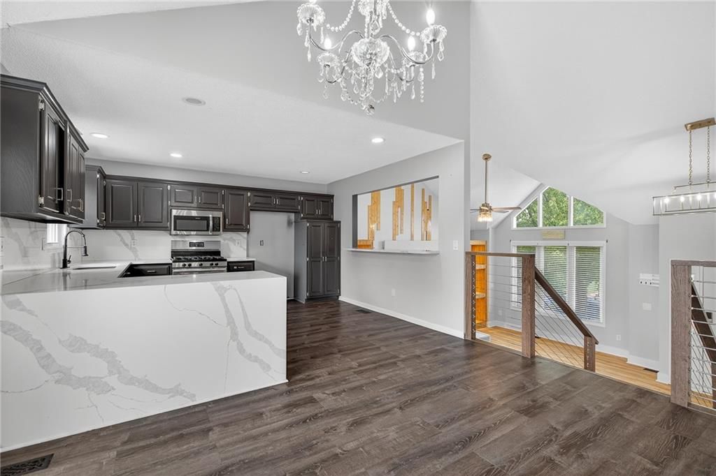21217 W 55th Terrace, Shawnee, KS HOME SWEET HOME! Welcome to this beautifully updated 4-bedroom, 3-bath home in the heart of Shawnee! Perfectly blending modern style with everyday comfort, this home is designed to impress from the moment you step inside. The living room boasts soaring ceilings, a striking marble accent wall with a sleek built-in fireplace, and custom wood inlays that create a warm, artistic touch. Built-in shelving with lighting makes the space both functional and stylish - ideal for displaying books, art, or collectibles. Oversized windows fill the room with natural light, giving it a bright and inviting feel. The kitchen is a chef's dream with gorgeous marble waterfall countertops, full marble backsplash, and gorgeous painted cabinetry in a modern dark finish. Stainless steel appliances and an open-concept design make this kitchen as functional as it is beautiful, whether you're preparing meals for family or entertaining guests. With four spacious bedrooms and three updated bathrooms, there's room for everyone to spread out and enjoy their own space. The primary suite offers a private retreat, while the additional bedrooms are versatile for family, guests, or a home office. The lower level features Walk out basement with extra living space perfect for a media room, playroom, or gym. Updated flooring throughout enhances the home's clean, modern look, while neutral paint makes it move-in ready. Located in a desirable Shawnee neighborhood, this property offers easy access to schools, shopping, dining, and major highways - keeping everything you need within reach. If you're looking for a home that combines modern updates, stylish finishes, and everyday comfort, 21217 W 55th Terrace is the one you've been waiting for. Don't miss your chance to call this gorgeous Shawnee property your new home - schedule your private showing today!
