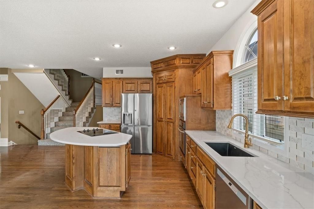 HUGE PRICE REDUCTION for this area. This is an Extraordinary Opportunity! Get the ultimate Family home: 5 beds, 5 baths, exceptional space for everybody and the schools you always wanted your kids at! Priced to move! Stunningly finished Full basement with a large 5th Bedroom, Bath and custom built wet bar! Rare 1.5 story home in highly desired Grey Oaks on a cul-de-sac! Large open floorplan highlighted by beautiful dark wood cabinets and floors. Large windows for exceptional amounts of natural sunlight. Spacious Kitchen with large breakfast room area, new Granite island and countertops, stainless appliances, & huge walk-in pantry. The Kitchen is a great area to gather before walking out to your beautiful backyard. Enjoy the see-thru fireplace to the Great Room, and large open Dining Room space. MAIN LEVEL MASTER BED with large bathroom: double vanity, walk-in shower, whirlpool tub, and walk-in closet. 3 upstairs bedrooms w/walk-in closets. 1 bed with its own full bath and 2 joining bedrooms with Jack and Jill. LOFT SPACE at top of stairs great for extra office, reading or play space. New tankless water heater 2024, new roof, gutters and paint 2024, and much more! Neighborhood park w/sand volleyball & pool. Close to shopping and some wonderful restaurants. Easy highway access. All measurements approx.