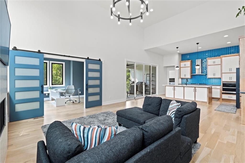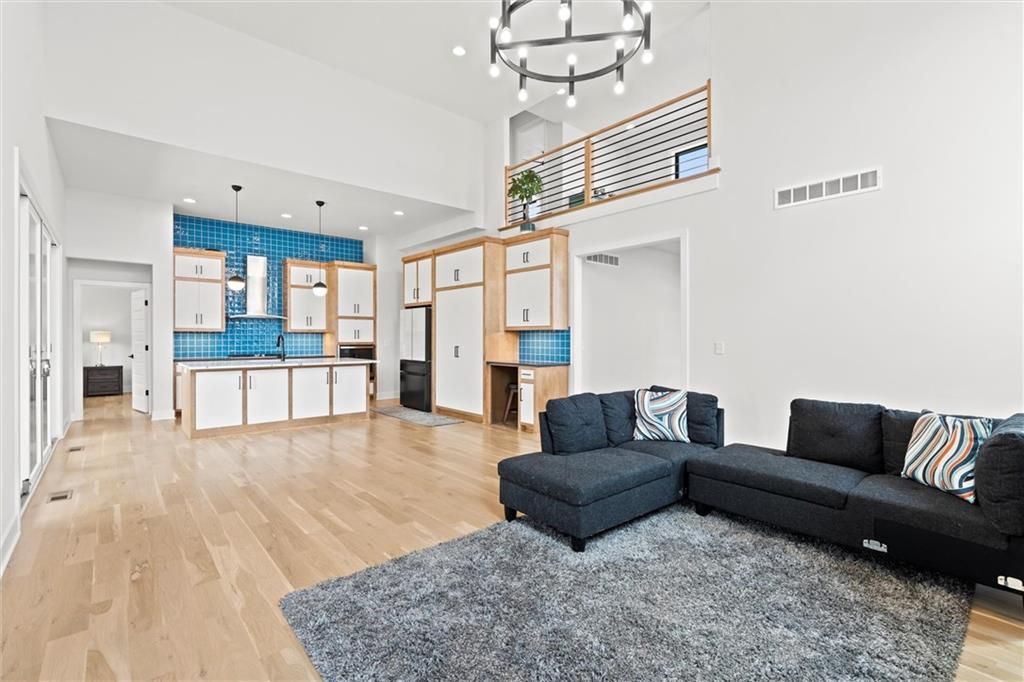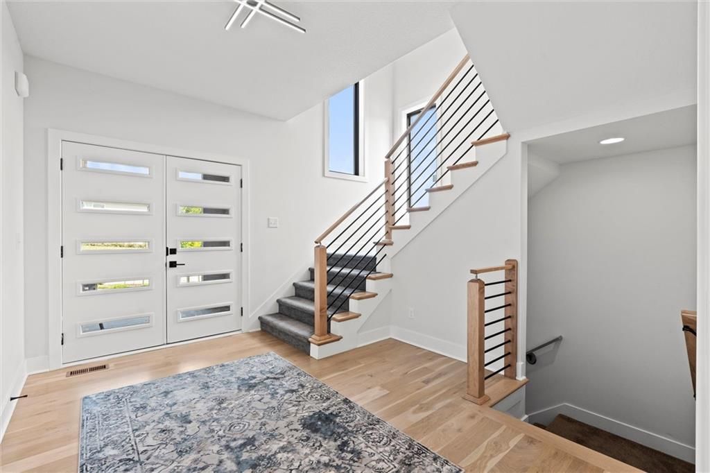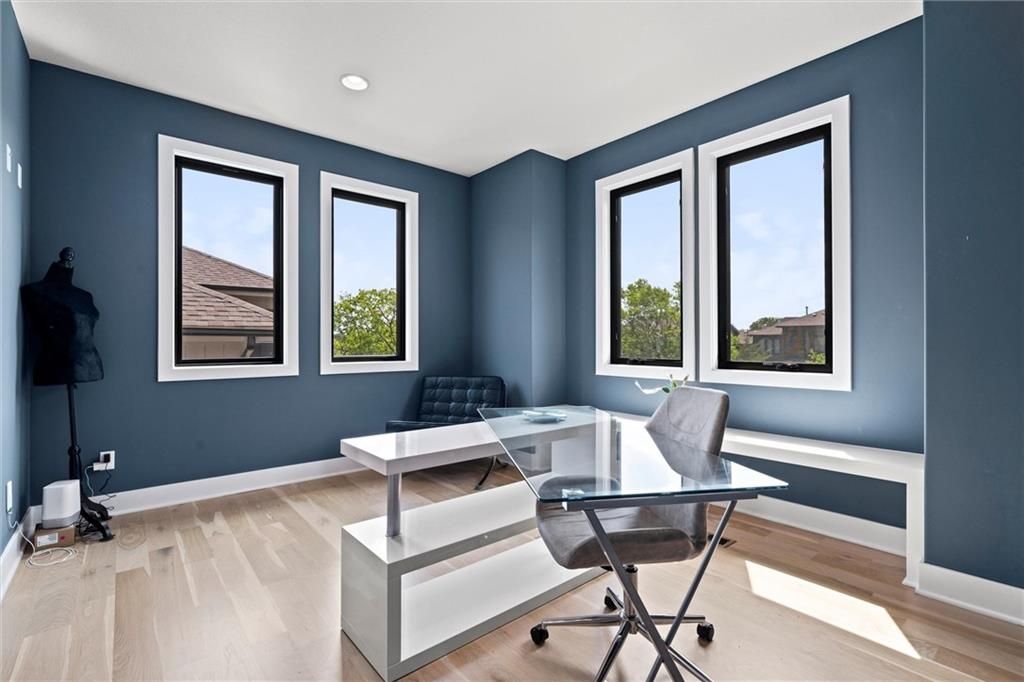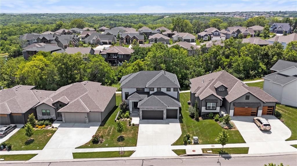 No need to wait for a new build, this home is even better! This property offers an open floor plan with white oak wood floors throughout the main living area and has large windows galore + glass doors that flood the space with natural light. The kitchen is equipped quartz countertops, hand crafted maple cabinets, gas cooktop, double ovens, built in office station, oversized butler pantry (must see), stainless steel appliances, oversized island, and a private breakfast/coffee bar. Great room with soaring ceilings, and fireplace. The main level office/den is the perfect touch! Spa like Master suite with bathroom that has a standing tub inside the ginormous walk-in shower w/dual showerheads, and a HUGE walk-in closet with direct access laundry. Second level has 3 spacious bedrooms, 2 full bathrooms, amazing loft area, and second laundry. The walkout basement is very large, stubbed for a full bathroom, and ready for your special touches! There are covered decks on the main level and lower level overlooking a greenspace with walking trail. Coming soon!!! Top of the line amenities featuring swimming pool, mini golf, sports courts and more! In the meantime, you are steps away from Black Hoof Park that offers an array of lovely amenities such as boat rentals, fishing, playgrounds and beautiful scenery to relax and enjoy! This home has tons of smart features such as app-controlled lights, garage door opener, thermostat, and ceiling fans! The Anderson Diamond energy efficient windows put a bow on this gorgeous home with very high efficiency and very low utility bills! Just minutes away from Lenexa City Center that has shopping, restaurants, and lots of fun activities for everyone! Also, located in Olathe Schools where you can guarantee one of the finest educations in KC! The HOA dues include mowing, and snow removal making this so convenient for busy lifestyles! Come see this beautiful home and fall in love!