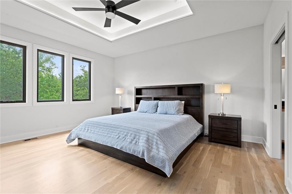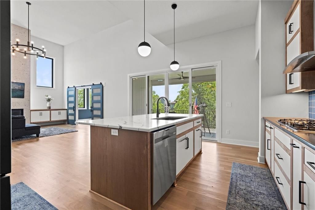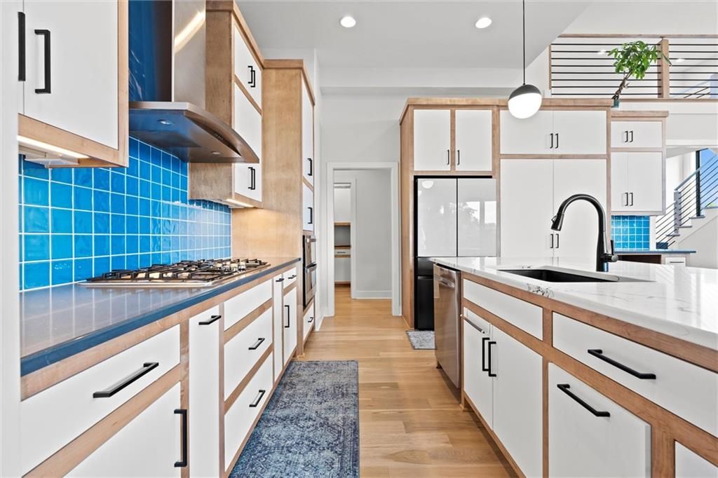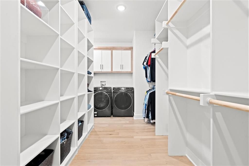 No need to wait for a new build, this home is even better! This property offers an open floor plan with white oak wood floors throughout the main living area and has large windows galore + glass doors that flood the space with natural light. The kitchen is equipped quartz countertops, hand crafted maple cabinets, gas cooktop, double ovens, built in office station, oversized butler pantry (must see), stainless steel appliances, oversized island, and a private breakfast/coffee bar. Great room with soaring ceilings, and fireplace. The main level office/den is the perfect touch! Spa like Master suite with bathroom that has a standing tub inside the ginormous walk-in shower w/dual showerheads, and a HUGE walk-in closet with direct access laundry. Second level has 3 spacious bedrooms, 2 full bathrooms, amazing loft area, and second laundry. The walkout basement is very large, stubbed for a full bathroom, and ready for your special touches! There are covered decks on the main level and lower level overlooking a greenspace with walking trail. Coming soon!!! Top of the line amenities featuring swimming pool, mini golf, sports courts and more! In the meantime, you are steps away from Black Hoof Park that offers an array of lovely amenities such as boat rentals, fishing, playgrounds and beautiful scenery to relax and enjoy! This home has tons of smart features such as app-controlled lights, garage door opener, thermostat, and ceiling fans! The Anderson Diamond energy efficient windows put a bow on this gorgeous home with very high efficiency and very low utility bills! Just minutes away from Lenexa City Center that has shopping, restaurants, and lots of fun activities for everyone! Also, located in Olathe Schools where you can guarantee one of the finest educations in KC! The HOA dues include mowing, and snow removal making this so convenient for busy lifestyles! Come see this beautiful home and fall in love!