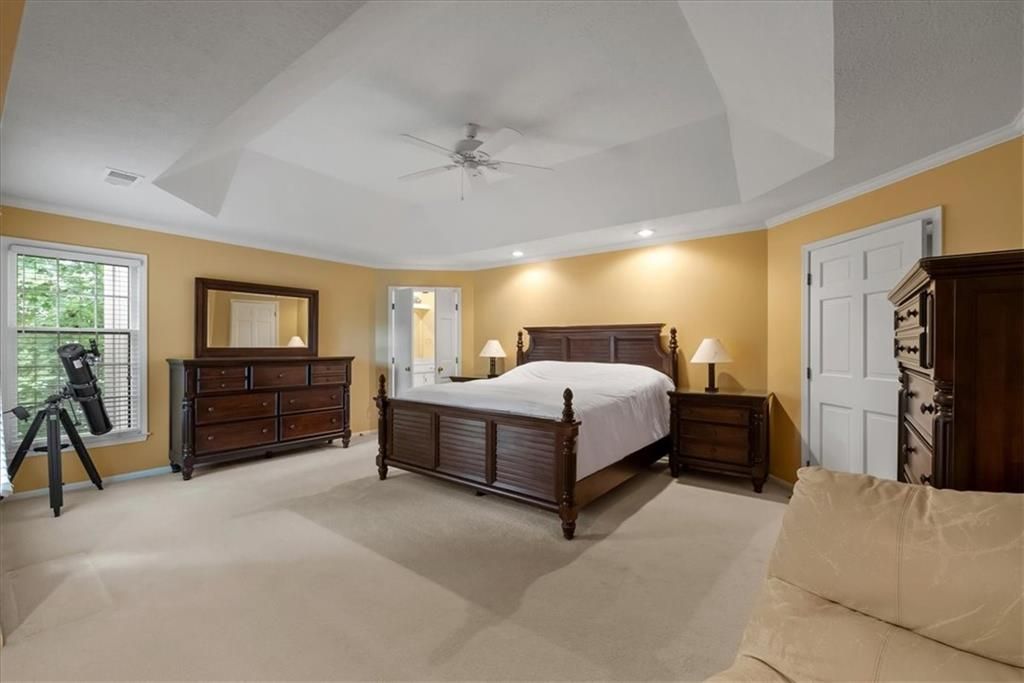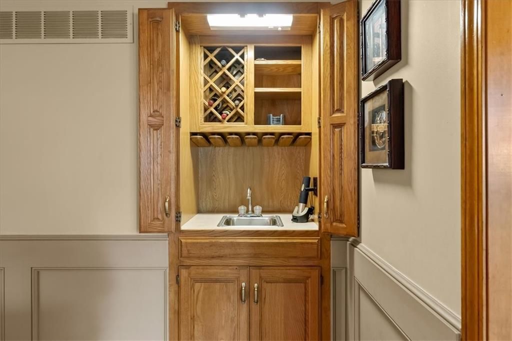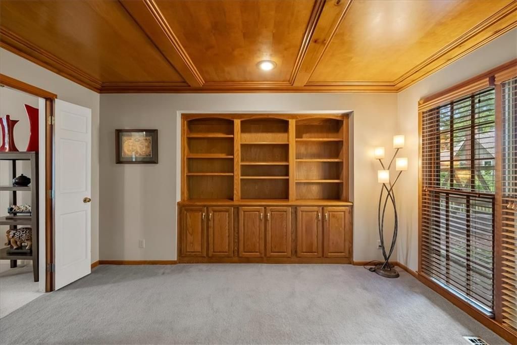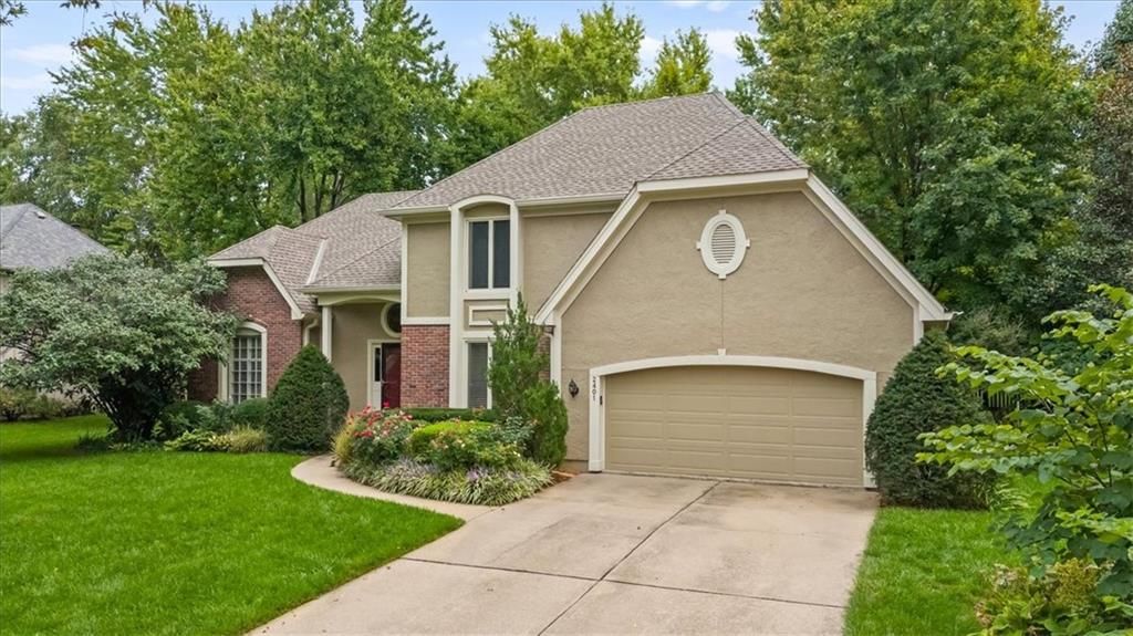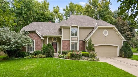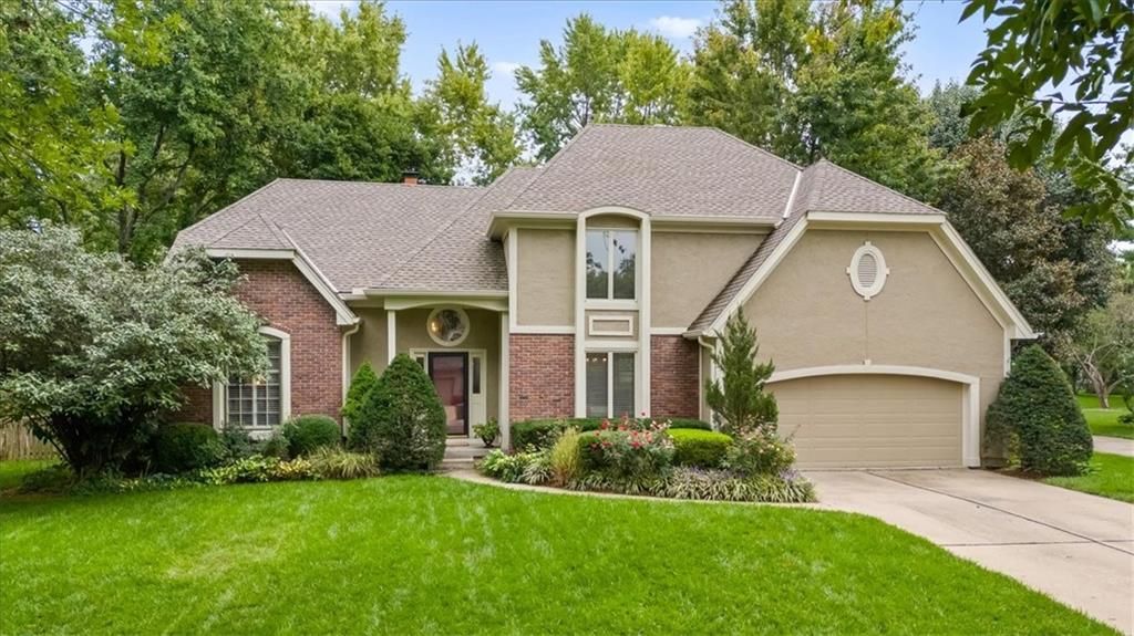 Incredible opportunity to make Hunter's Ridge your home! Walk to Leawood Elementary and Leawood Middle, close to Tomahawk and Indian Creek hike/bike trails, Town Center and a wide range of other shopping. This French colonial with a traditional floor plan is a ready canvas to define your own style. Highlights include formal dining room, formal living room, 2-story foyer, study with wood ceiling and built-in bookshelves, large family room with wet bar and wood burning fireplace (gas starter), chef's kitchen with double oven, gas range and butler's pantry, master bedroom with gas fireplace (with gas log set), sitting area with built-in bookshelves and two walk-in closets, two bedrooms share Jack and Jill bathroom, 4th bedroom has private full bath, basement has finished and unfinished areas with ample built-in storage. The lot has a private, fenced back yard and mature landscaping surrounding the house. Great layout, bones and curb appeal, but it needs TLC. New exterior paint (2024), insulated garage door (2024), roof and upsized gutters and downspouts (2020), and updated HVAC (2022).