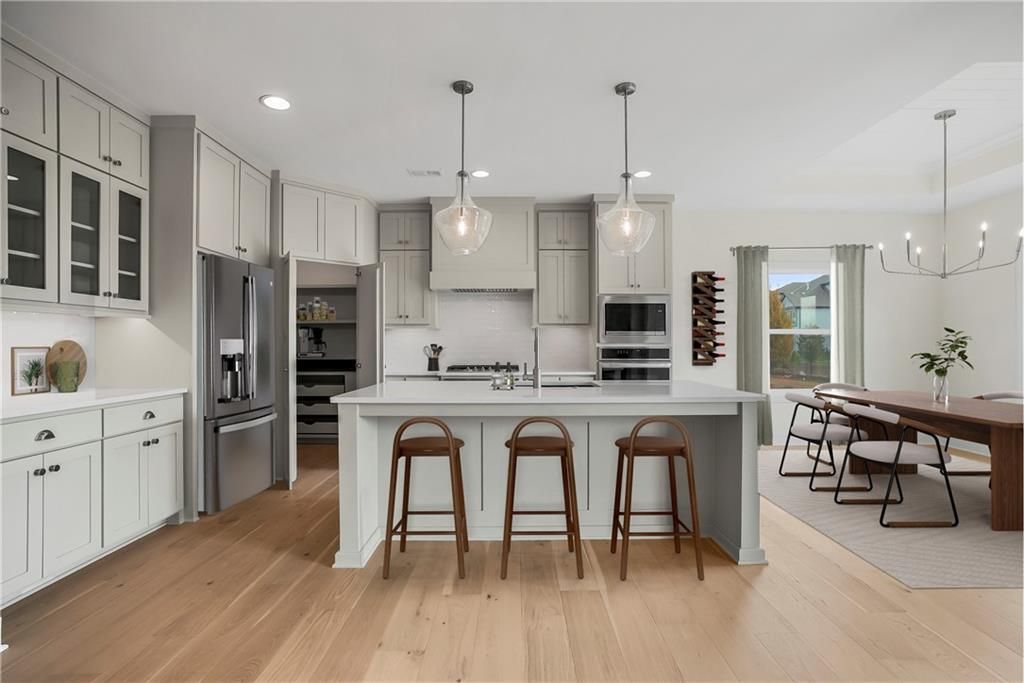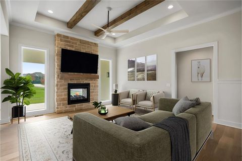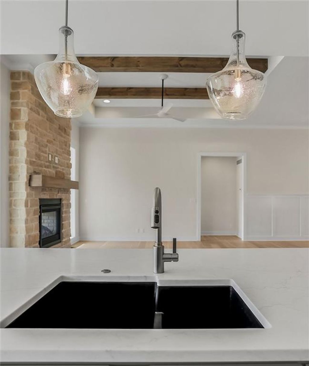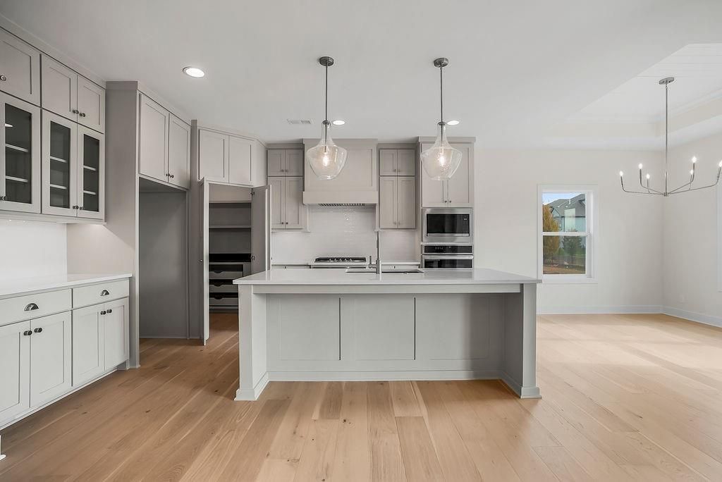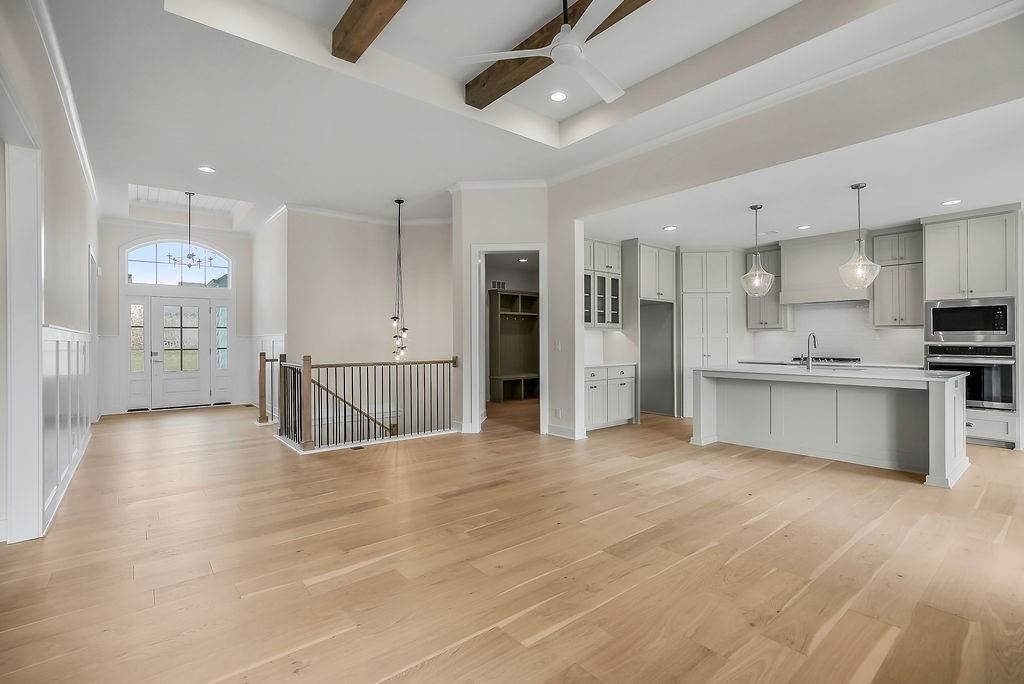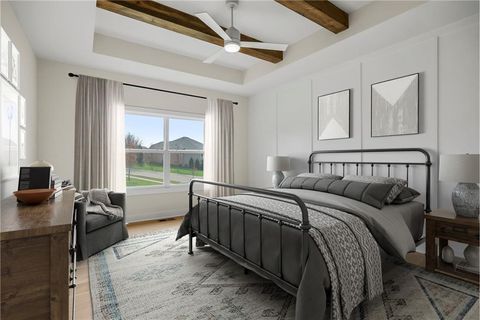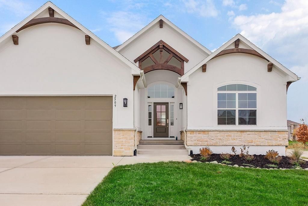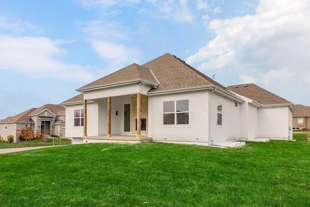 Introducing the Rustic Riviera by SAB Construction - a stunning reverse 1.5-story home perfectly positioned within the peaceful Sundance Ridge community. Designed for modern living, this home offers 3,270 sq. ft. of beautifully finished space with 4 bedrooms, 4 full baths, and a 3-car garage. The main level's 1,790 sq. ft. showcases an open, light-filled layout highlighted by elegant wainscoting, shiplap accents, and upgraded tile throughout. Step out to the 12'x16' covered patio and enjoy serene views and gentle breezes - the perfect place to unwind or entertain. The finished lower level adds 1,260 sq. ft. of living space with a front and back bar, built-in bookcases, and a versatile bonus room ideal for a gym, playroom, or media area. Large window wells invite natural light, creating a warm and welcoming ambiance. High-end upgrades include a tankless water heater, LG upgraded appliances, black quartz composite kitchen sink, built-in pantry drawer with countertop, garage stub for utility sink, 7-zone irrigation, and full acrylic stucco exterior for timeless style and low maintenance. Located in Sundance Ridge, residents enjoy rolling hills, walking trails, and resort-style amenities. Everyday essentials are close to home - 11 minutes to Blue Valley High, 13 minutes to Blue Valley Southwest, the future Blue Valley elementary school will be located within the Sundance Ridge community, 14 minutes to Heritage Park, 9 minutes to Prairiefire, 8 minutes to Aubrey Vineyards, 10 minutes to Martin City dining, 12 minutes to Target and grocery, and 15 minutes to Corbin Park. Rendering and floor plans for reference only; actual plan may differ slightly.
