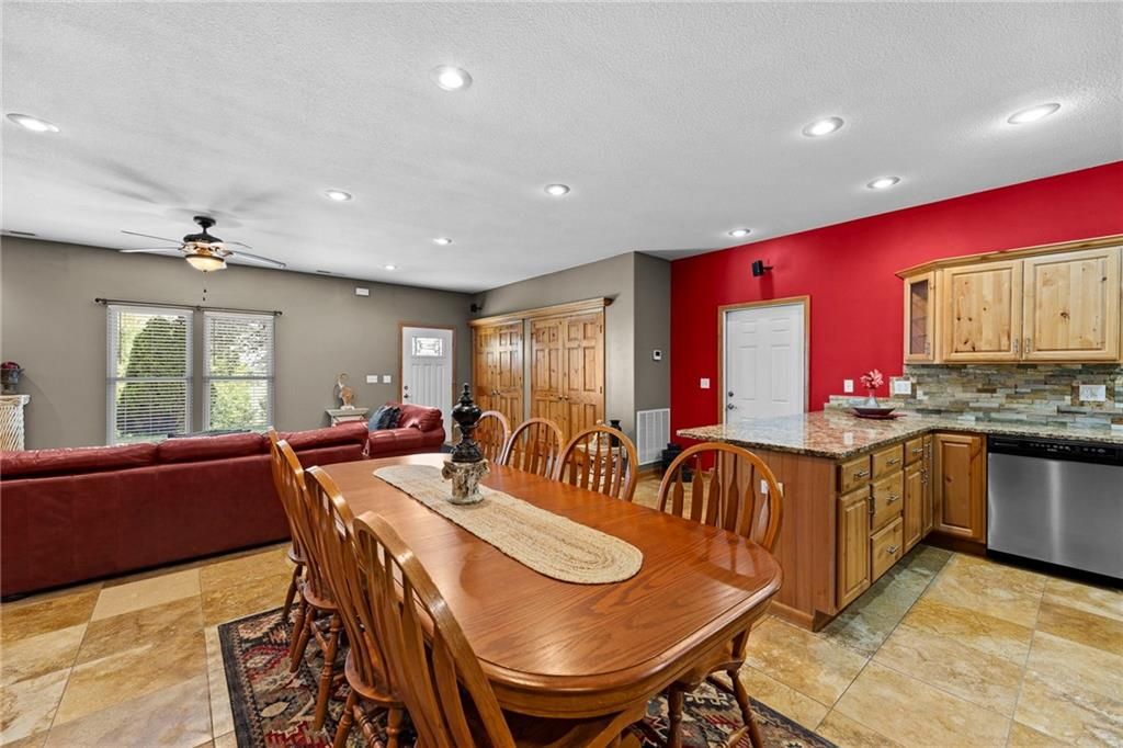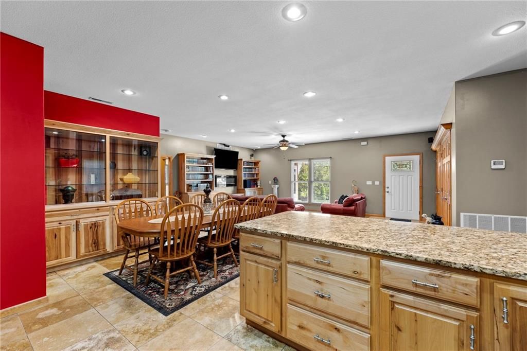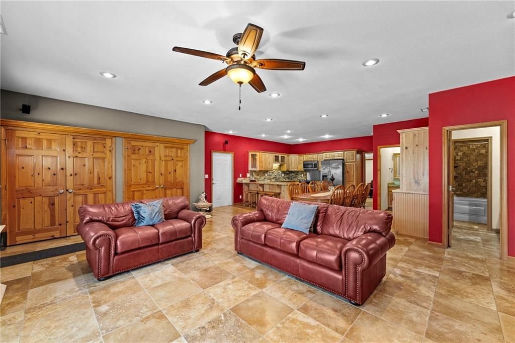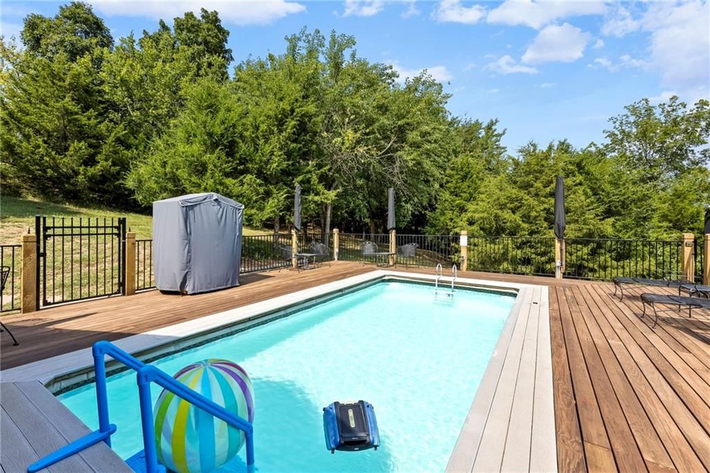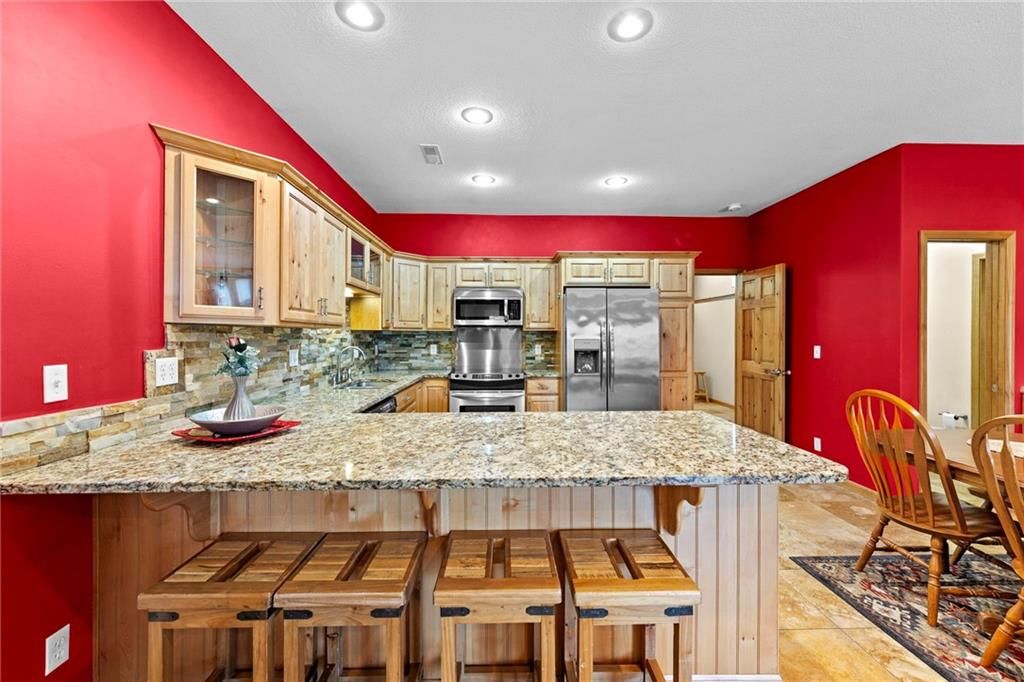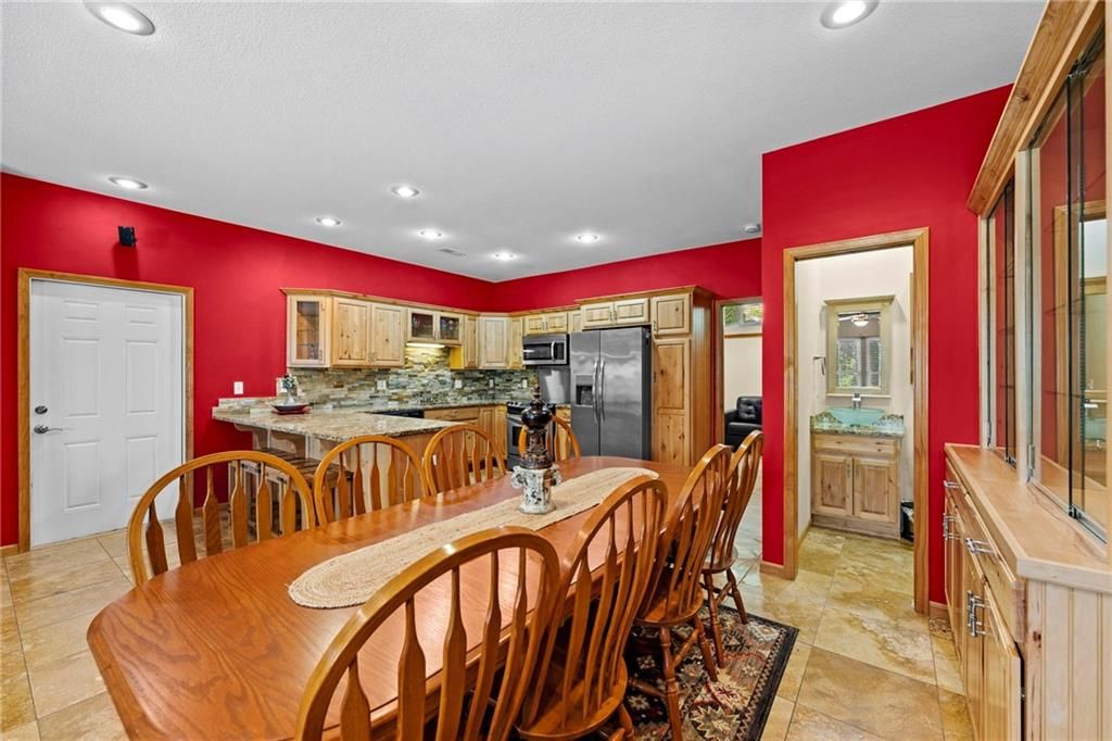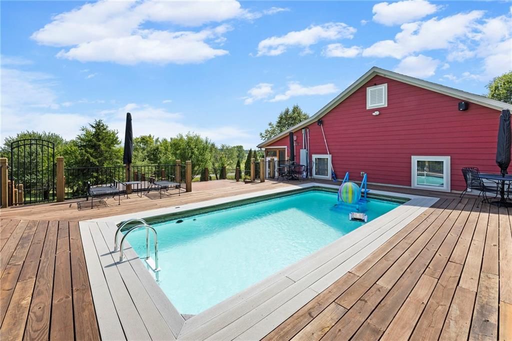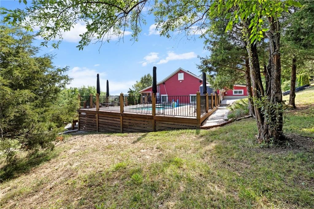 Welcoming wrought iron entrance gates, Cedar trim, this exquisite 3 Bedroom home perched on the side of a hill overlooking beautiful views for every season on a corner lot 1.5 miles from town on blacktop. The exceptional finishes in this home flow with Travertine tile floors and Granite countertops throughout, stainless kitchen sink, stove, microwave, refrigerator and dishwasher, Quartz backsplash, Jacuzzi bath, vessel sinks and new faucets, finished garages, multipurpose rooms, wood stove for those cold cozy nights. Electric LED fireplace, built in bookshelves and china cabinet, insulated interior walls for sound barrier, numerous closets finished for organization, wood doors, trim and cabinets. This multifunctional bathroom has 3 separate rooms! Storage with a drop-down ladder with extra attic space and shelving above the garage. For entertainment the screened porch, sauna, hot tub and inground/above ground 52"h/48"d 12'x24' pool with a simple filter pump for easy care, wrapped with wood decks and wrought iron rails, a luxury 6' Firepit, Horseshoe pit, chicken runs with hen houses. A 2nd entrance to the Estate with an outbuilding newly added in 2022, equipped with 100 amp electric breaker box. 3 30/50 amp hookups for camper or boat. 4 miles to Hillsdale Lake or lake Miola. This 1500+ sq ft home is trimmed in switched lights with remote for different seasons, different colors or themes. Floodlights around along with a camera surveillance system including a monitor and 8 night vison cameras inside and out that can be monitored on your mobile phone while away. Plenty of Woods and View! You must see this higher quality home built for the Builder himself! This home is move in ready and has been very well kept with lots of mature landscape. Several flowering, colorful bushes and trees throughout the Seasons. It's like a new home without the wait time! A must see to appreciate!