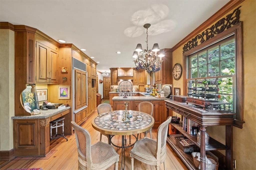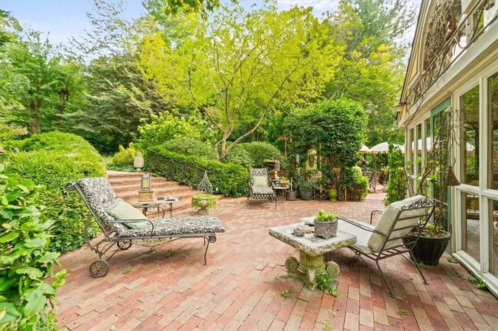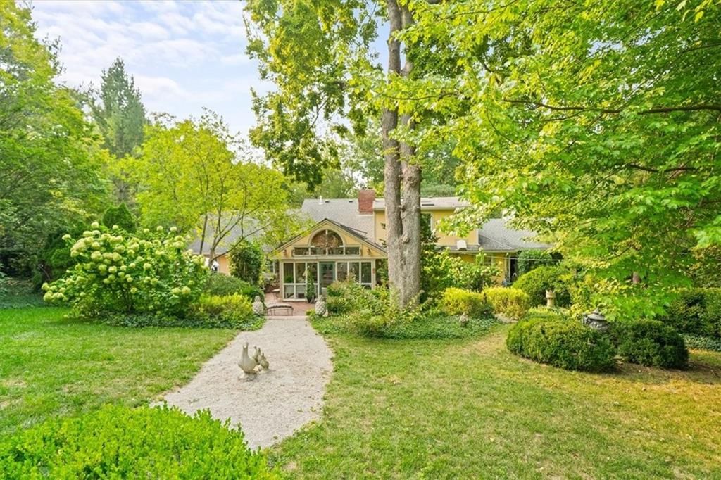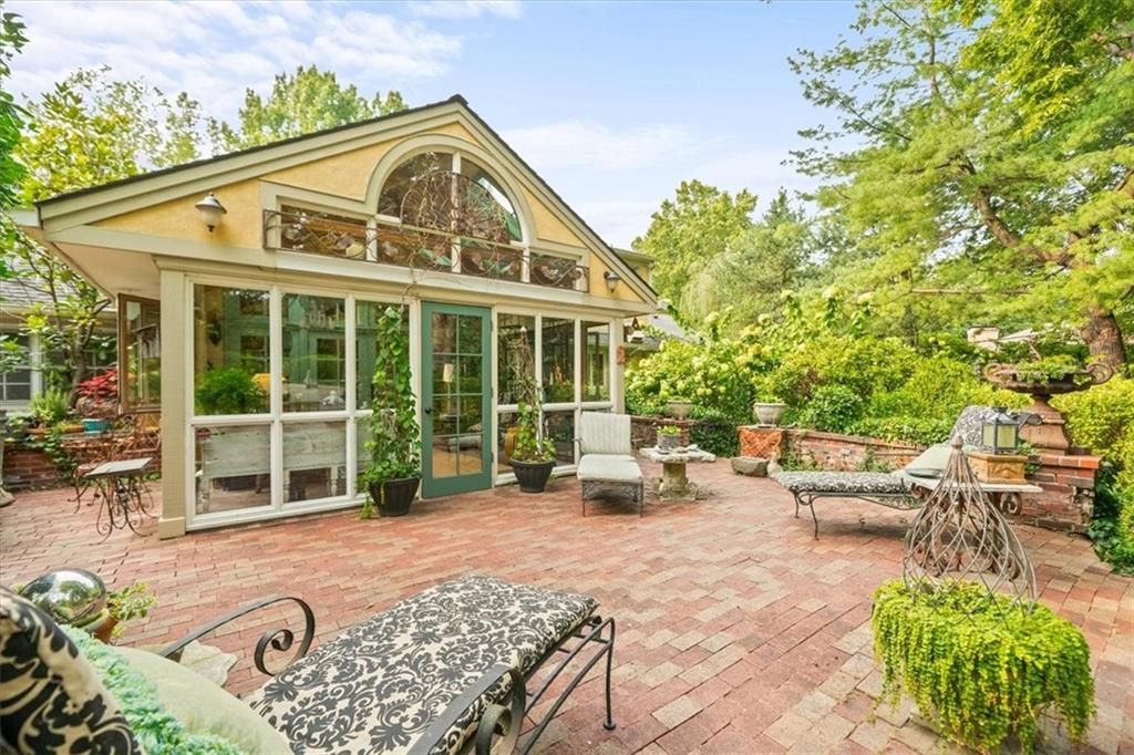 Nestled in the heart of Mission Hills, this extraordinary home offers timeless elegance and a stunning setting reminiscent of an English country estate. Set on over a half-acre, the backyard is a true sanctuary with lush gardens, multiple seating areas, arbors, fountains, and patios designed for both relaxation and entertaining. Inside, natural light pours into the spectacular sunroom with vaulted ceilings and skylights. The expanded primary suite features a spa-like bath and a generous walk-in closet. Upstairs, two oversized bedroom suites showcase charming New England pine hardwood floors and private en suites. Hardwood floors flow throughout the spacious living and dining rooms, while the inviting great room impresses with Brazilian pine hardwoods and soaring vaulted ceilings. The chef's kitchen is outfitted with high-end stainless appliances and overlooks the picturesque backyard. Every detail of this residence reflects thoughtful design, blending warmth, sophistication, and comfort in one of Kansas City's most coveted neighborhoods.