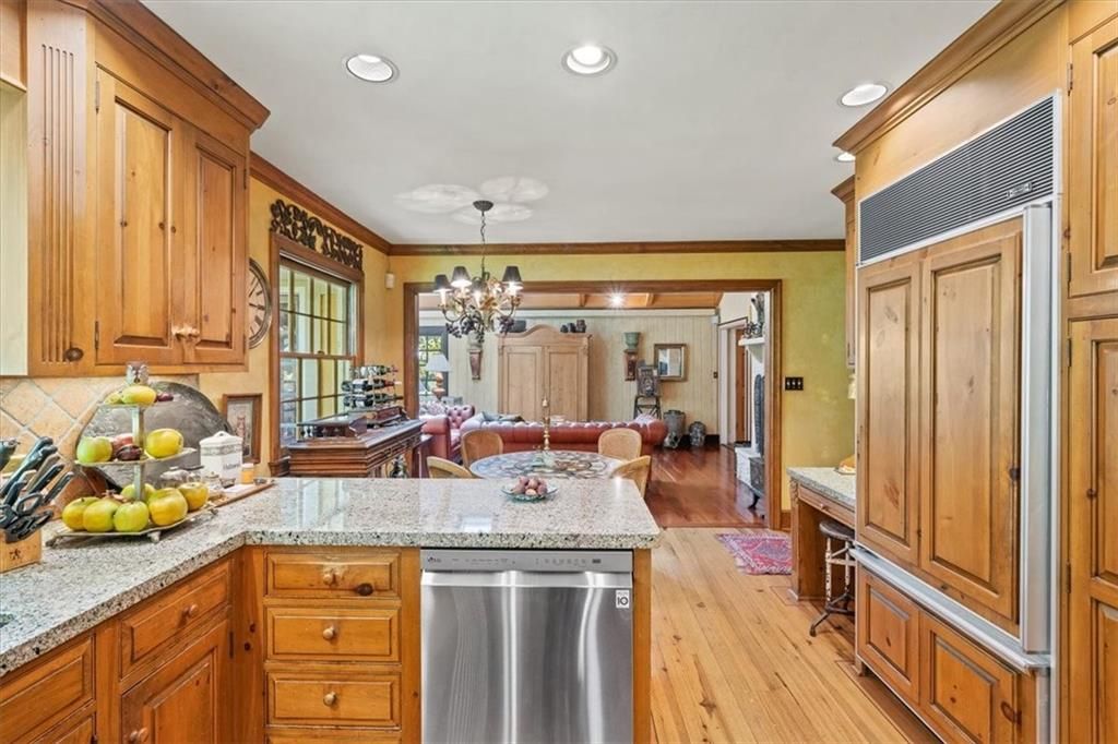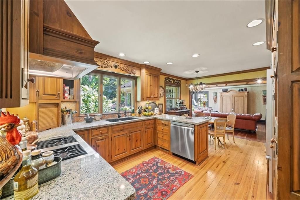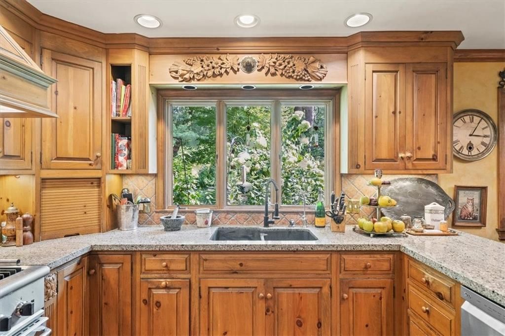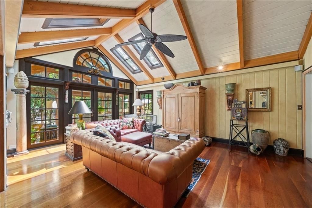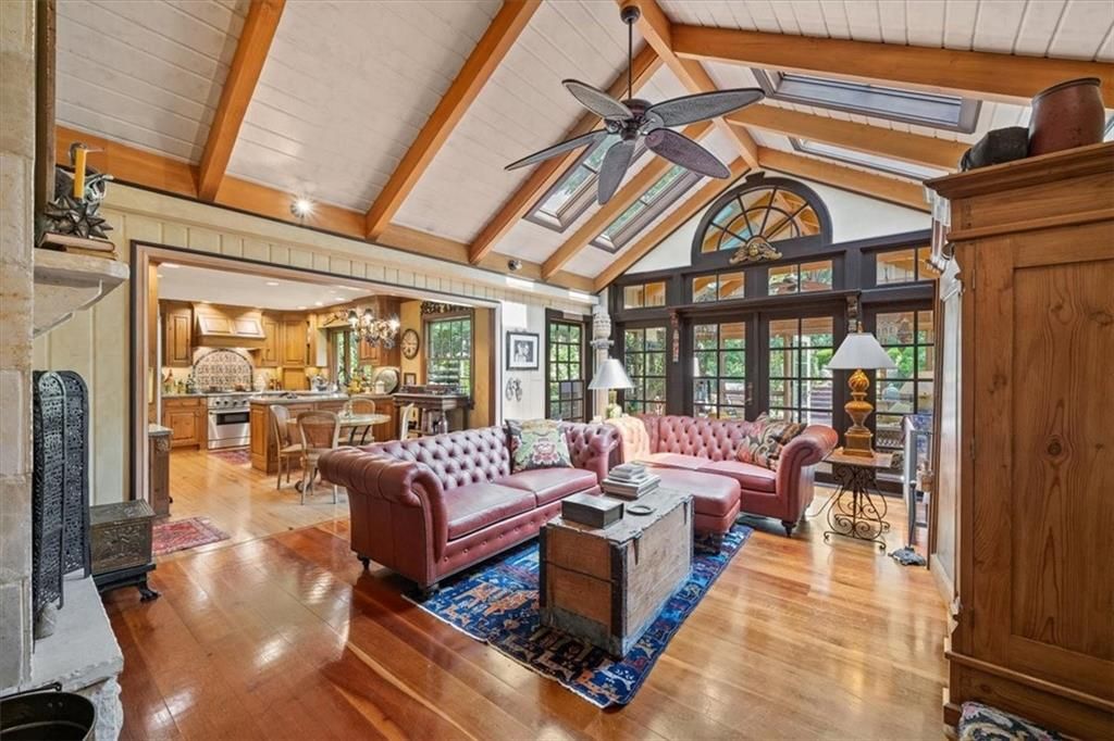 Nestled in the heart of Mission Hills, this extraordinary home offers timeless elegance and a stunning setting reminiscent of an English country estate. Set on over a half-acre, the backyard is a true sanctuary with lush gardens, multiple seating areas, arbors, fountains, and patios designed for both relaxation and entertaining. Inside, natural light pours into the spectacular sunroom with vaulted ceilings and skylights. The expanded primary suite features a spa-like bath and a generous walk-in closet. Upstairs, two oversized bedroom suites showcase charming New England pine hardwood floors and private en suites. Hardwood floors flow throughout the spacious living and dining rooms, while the inviting great room impresses with Brazilian pine hardwoods and soaring vaulted ceilings. The chef's kitchen is outfitted with high-end stainless appliances and overlooks the picturesque backyard. Every detail of this residence reflects thoughtful design, blending warmth, sophistication, and comfort in one of Kansas City's most coveted neighborhoods.