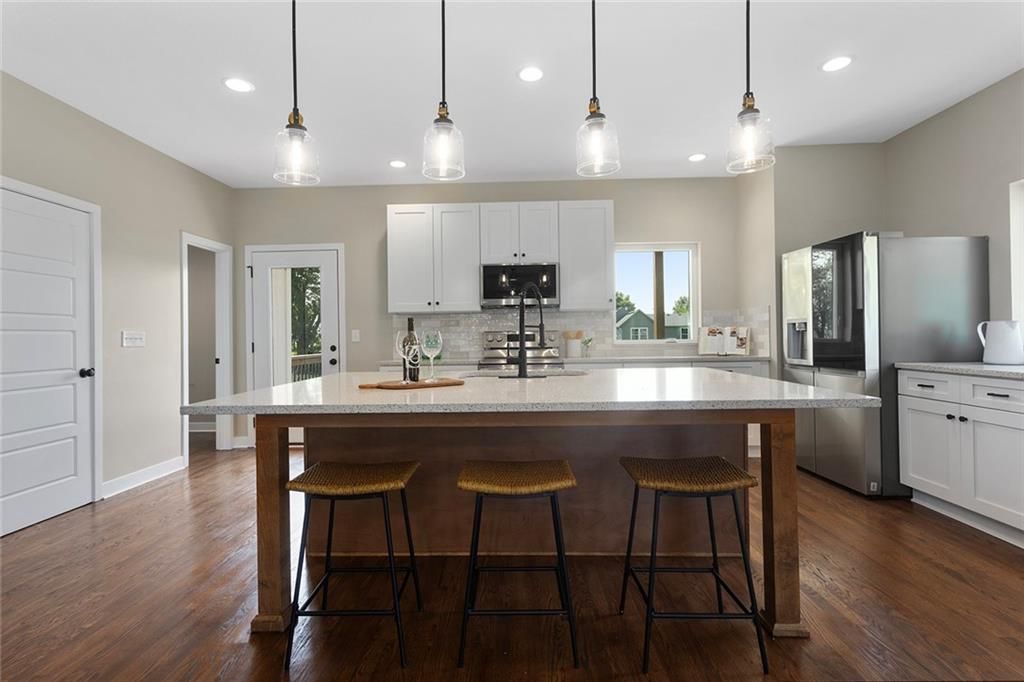 Gorgeous new construction featuring 3 bedrooms and 2.5 bathrooms and conveniently located minutes from I-35! Walk through the front door to an open concept living, dining and kitchen area. Large kitchen with plenty of cabinet space, large kitchen island and stainless steel appliances. Half bathroom on the main level. Oak hardwood floors throughout the main level. Mudroom off the garage with built in storage. Three bedrooms and laundry on the second floor. Each bedroom has carpet, ceiling fans and walk in closets. The primary suite has dual vanities. Large basement with egress windows provides the opportunity for more bedrooms in the future. This house is built with trusses and has nine foot ceilings in the basement and main level. Owner/agent/builder