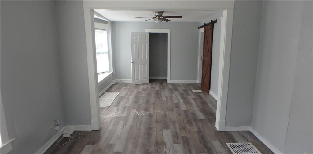 Sought after Knoche Park Annex. This four bedroom one and a half bath one and a half story bungalow has a full width covered front porch, and a full width covered rear porch. One card detached garage. Main floor laundry hook ups off kitchen. Lovely barn door between dining room and kitchen. All bedrooms are tiny but meet the criteria of entering from hallways and containing closets. House has been rehab and appears to be in relatively good shape.
