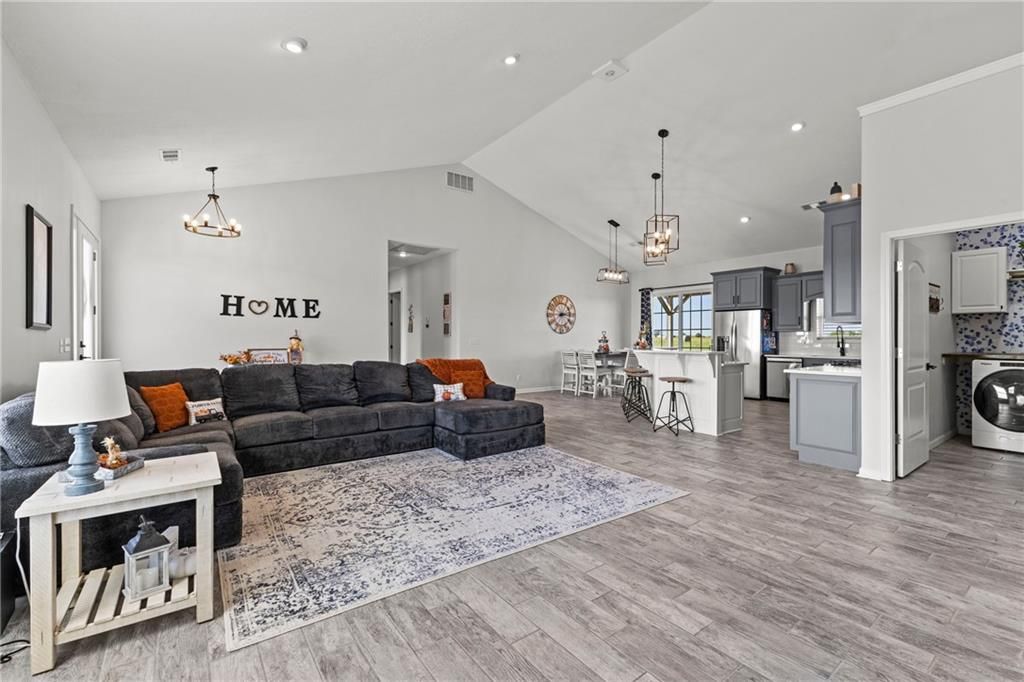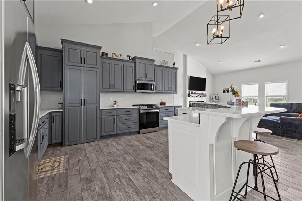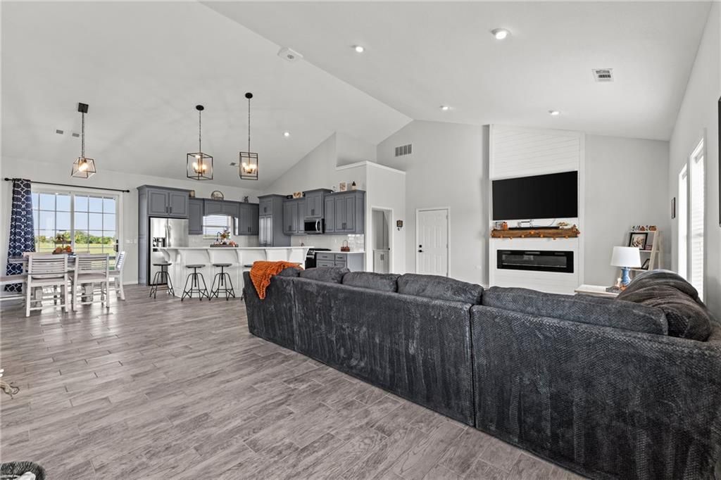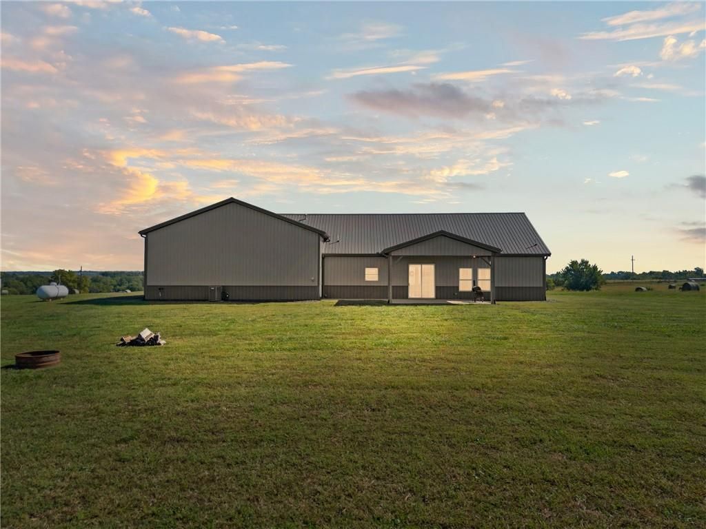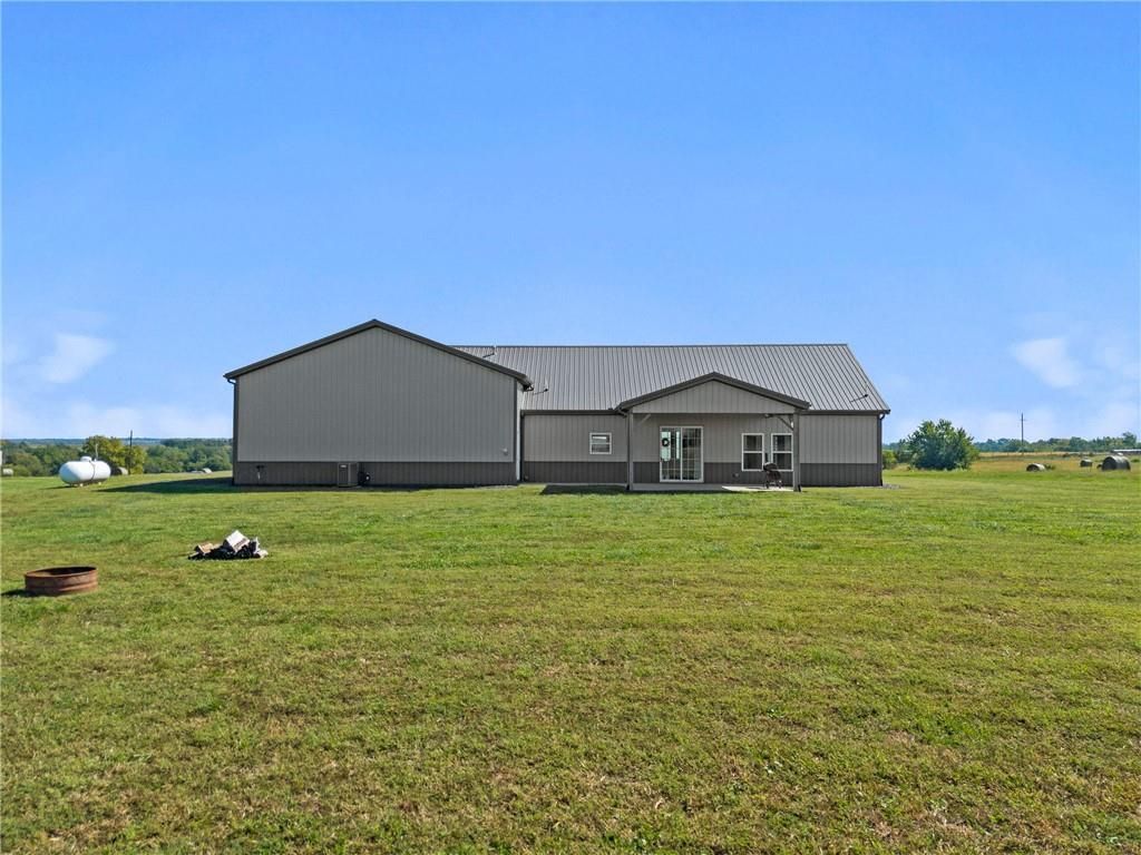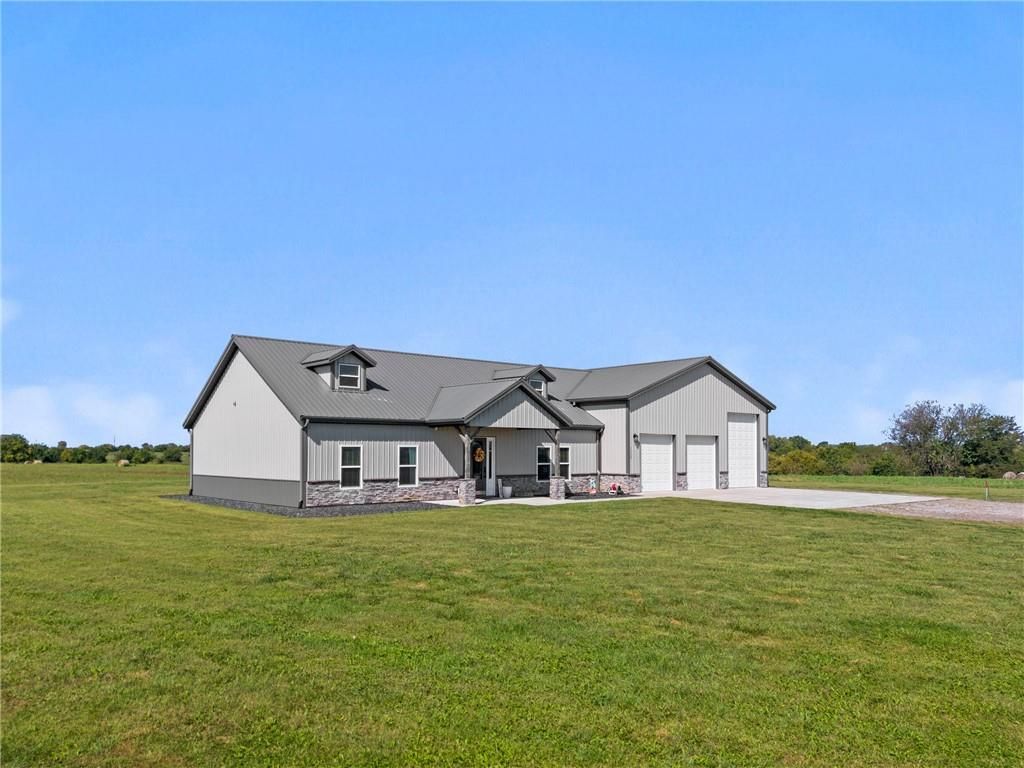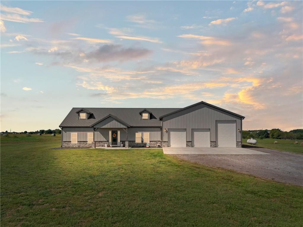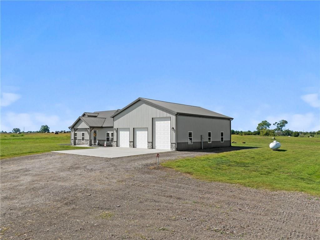 Gorgeous Custom Barndominium on 17 Acres Welcome to this stunning 3-bedroom, 3-bath barndominium, custom built less than 5 years ago and meticulously maintained to feel like new. Designed with comfort and style in mind, this home features an open-concept layout with soaring ceilings and 9-foot doors that create an airy, inviting feel throughout with an abundance of natural light. The heart of the home is the kitchen, complete with a spacious layout, beautiful finishes, and a large walk-in pantry - perfect for storage and entertaining. Heated tile floors run throughout the main living spaces, while the bedrooms are cozy with plush carpet underfoot. Beautiful electric fireplace that is stubbed for gas if you prefer to change that out. An oversized 38' x 48' attached garage/shop with heated floors provides room for hobbies, projects, and all your toys. Two 200 AMP panels, one for the home and one for the shop. Step outside and enjoy just under 17 acres of privacy and beauty, all on a paved road with easy highway access - combining peaceful country living with convenient commuting. Everything is less than 5 years old and in meticulous condition. Low utility bills due to the radiant flooring heat. Propane furnace is also available for extreme temperatures or if that is preferred. Don't miss the chance to own this one-of-a-kind property that blends quality, functionality, and acreage into the perfect retreat.