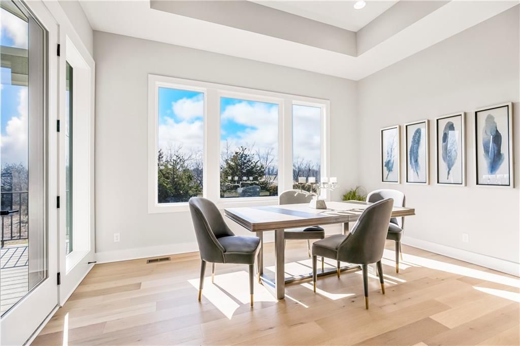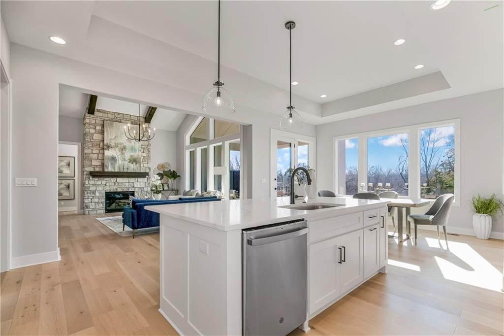 Lot 10- J.S. Robinsons Fine Homes in East Village of Leawood. The Award winning Avala. Features include vaulted great room with beams, upgrades-tile, hardwood, counter tops, lighting plus a spacious walk out -walk up lower level that brings in the natural light, perfect for entertaining. The community is maintenance provided, including lawn care and snow removal. Located near upscale shopping, dining and everyday conveniences. East Village of Leawood is one of the newest planned communities in Johnson county! The community will feature a 2-acre park, future clubhouse with workout room and outdoor pool. Plus a walking trail that will connect you with nearby restaurants and a coffee shop. Upgrade your life today! Home is under construction and will be completed November of 2025. This home is currently at paint stage.