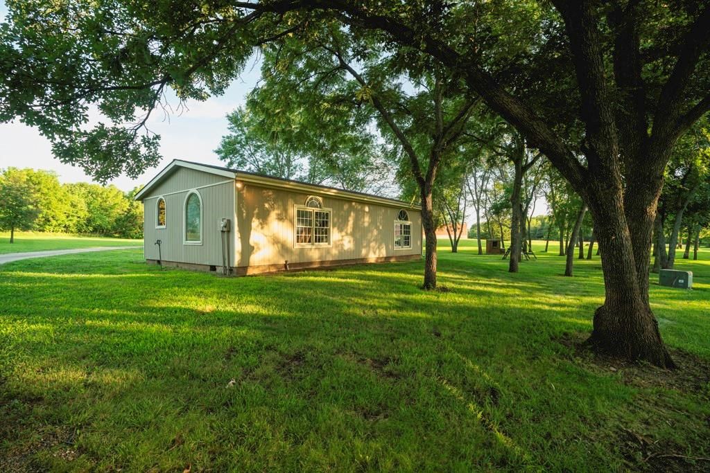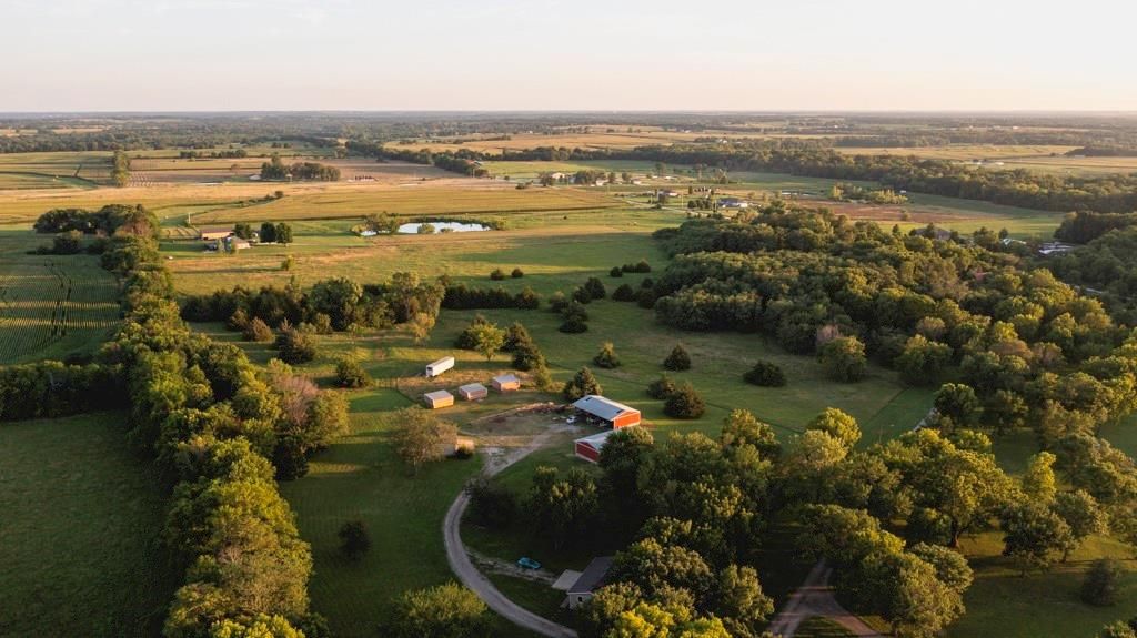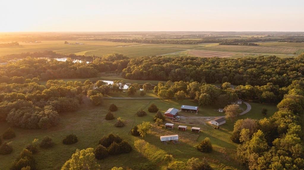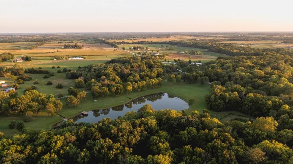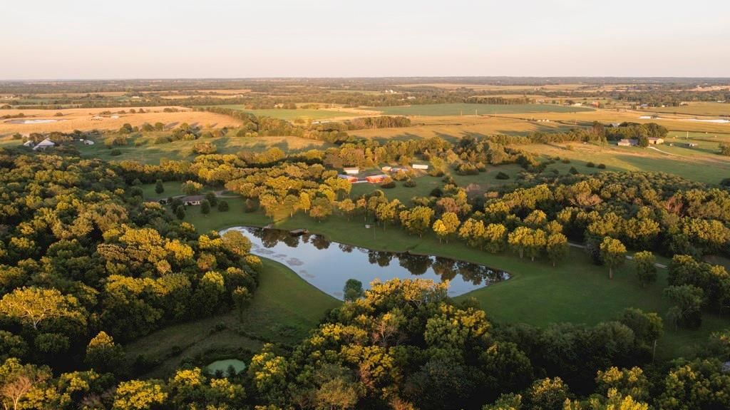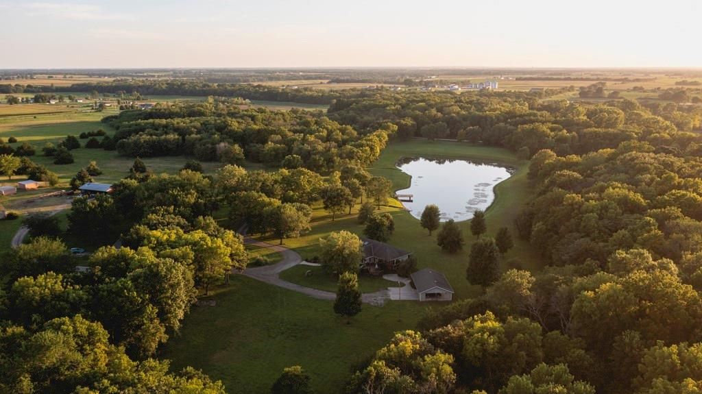 A beautiful 44 +/- acres of rural seclusion has come to the market in Franklin County, Kansas. This property has a gorgeous tree-lined driveway leading you to the home. The 44 +/- acre property comprises timberland, water features, hay pasture, and strategically positioned buildings. A substantial pond exceeding two acres provides opportunities for fishing and fun. A well-constructed wooden dock offers a space for relaxation. The pond also attracts geese and ducks. The northern boundary consists of dense woodland, featuring a variety of trees such as oak and walnut, which supports a population of whitetail deer and turkey for hunting. Walnut Creek traverses this section. The southern boundary contains scattered trees and a hay meadow, including a smaller pond.The home is made up of 4,250 square feet, including a 2,262 square foot main living area. Spacious and sun-filled living room boasting hardwood floors and oversized windows that invite an abundance of natural light, creating a warm and welcoming atmosphere. The spacious eat-in kitchen features tile flooring, abundant cabinet space, perfect for everyday cooking and entertaining. The master bedroom offers a relaxing retreat, a master bath complemented by a jacuzzi-style soaking tub. A newly renovated second bathroom showcases modern finishes. The large sunroom could be used for anything you have a vision for. The basement has 2 non-conforming rooms, concrete storage, and big closet. This home does not lack storage! The back deck, perfect for relaxing with a cup of coffee or entertaining friends, is constructed of Ipe Brazilian Walnut. This wood is known for its durability with minimal maintenance. The versatile 42x24 building offers a two-car garage and a fully equipped apartment, complete with a kitchen, comfortable living area, and full bathroom. A 36x24 three car garage is great for car enthusiasts or hobbyists. There are two 70'x30' lean-tos to store equipment and 3 loafing sheds ready for your hobby farm.
