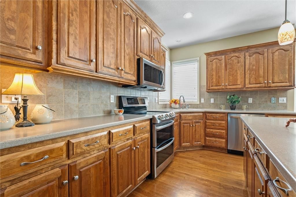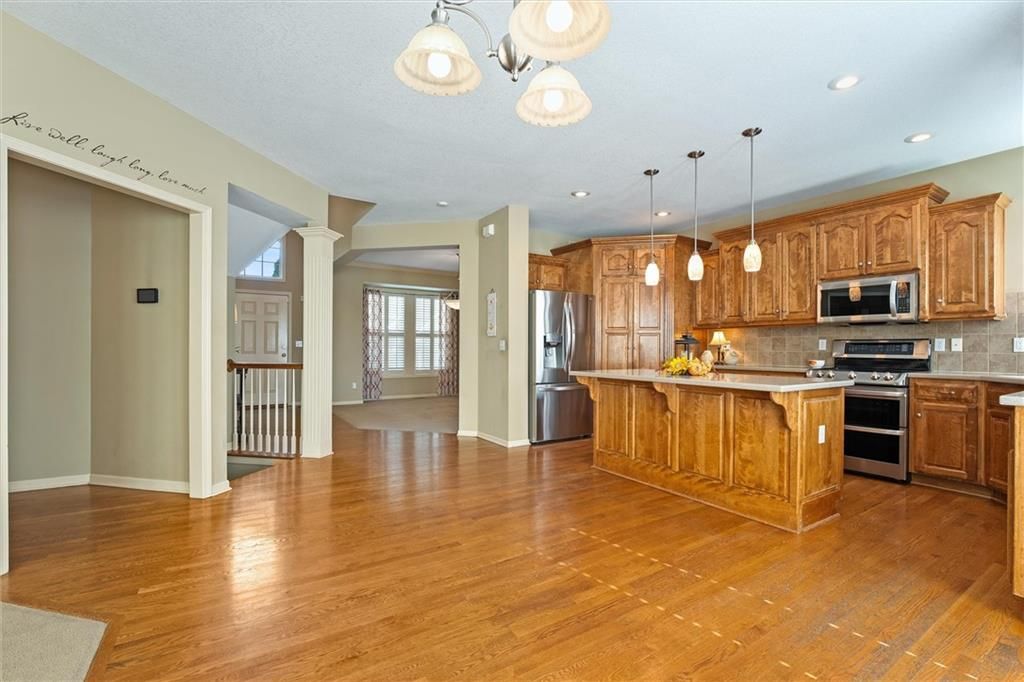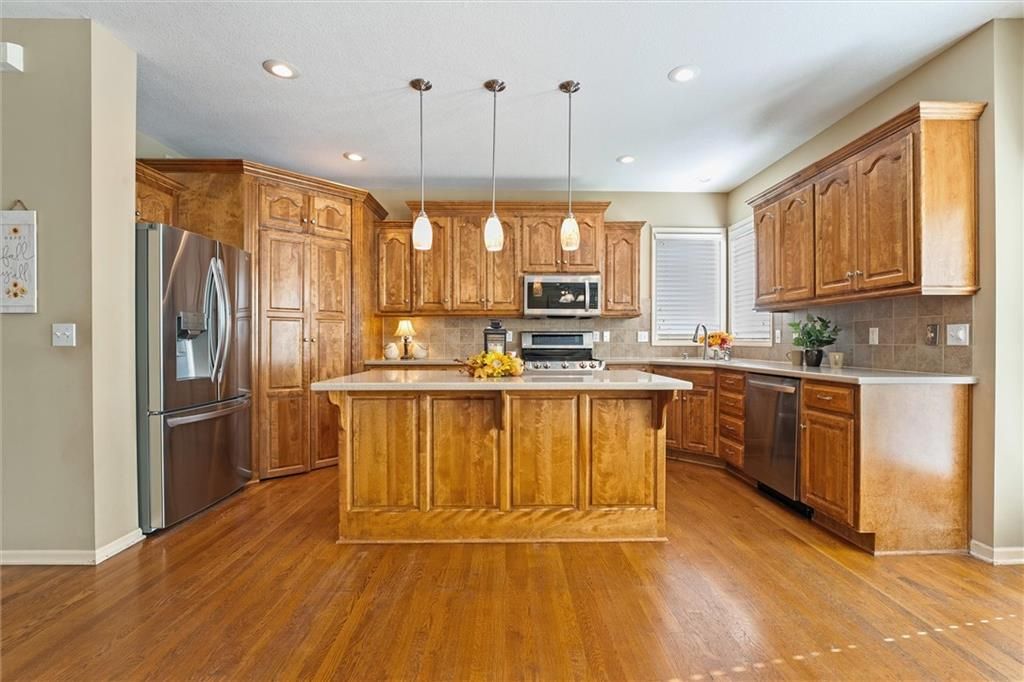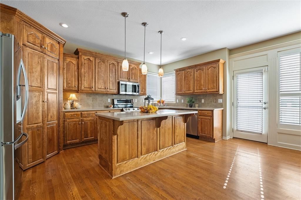 "Motivated Seller offering $10,000 in concessions. Personalize your new home with the finishes and features you love or apply toward closing costs." Step into the soaring entryway that opens to a formal dining room, setting the stage for this spacious and beautifully maintained home. Gleaming hardwood floors lead you into the open kitchen featuring a large island, stained pull-out cabinets, a pantry, and stainless steel appliances. The kitchen flows seamlessly into the inviting family room with a cozy fireplace and expansive windows that fill the space with natural light. Plantation shutters are throughout the main level. Upstairs, the primary suite is a true retreat - complete with a corner jetted tub, separate shower with two shower heads, double vanity, massive walk-in closet, and hidden storage. The second bedroom includes its own private bath, while the third and fourth bedrooms share a Jack-and-Jill style bath with individual vanities and walk-in closets. The laundry room is conveniently located on the second level near all the bedrooms and has waterlines in the cabinet to add a sink. The finished basement offers the perfect entertainment space with a pool table area, wet bar, second living room with fireplace, full bath, and a fifth bedroom with daylight windows. The oversized garage features high ceilings, built-in cabinets and sink, a workbench, extra storage space, and super-quiet garage door openers. Outside, enjoy impeccably maintained landscaping with a lush yard and sprinkler system. 1-year-old class 4 impact-resistant roof! Located close to Garrett Park, award-winning schools, and with easy K-7 highway access, this home truly has it all. Come see this amazing home and Fall in love!