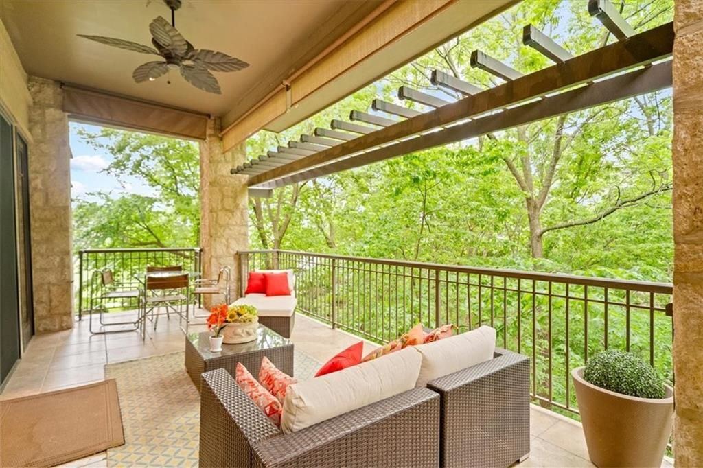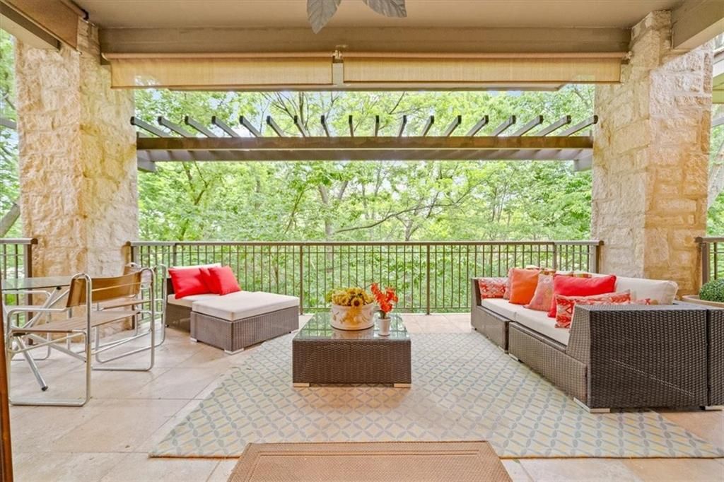 Enjoy serene views of trees and a peaceful pond from this stunning 2 bedroom 2.1 bath condominium featuring an open concept layout and a spacious covered deck-perfect for relaxing or entertaining. The beautifully appointed kitchen boasts high-end appliances, stone countertops and a generous walk-in pantry. The elegant primary suite offers custom closets, a luxurious bath retreat and access to the beautiful, covered deck. The second bedroom includes a private ensuite bath, ideal for guests or a home office. Also included are 2 secure garage spaces and a generous storage room. Thoughtfully designed and impeccably maintained this home combines style, comfort and convenience in one exceptional package.