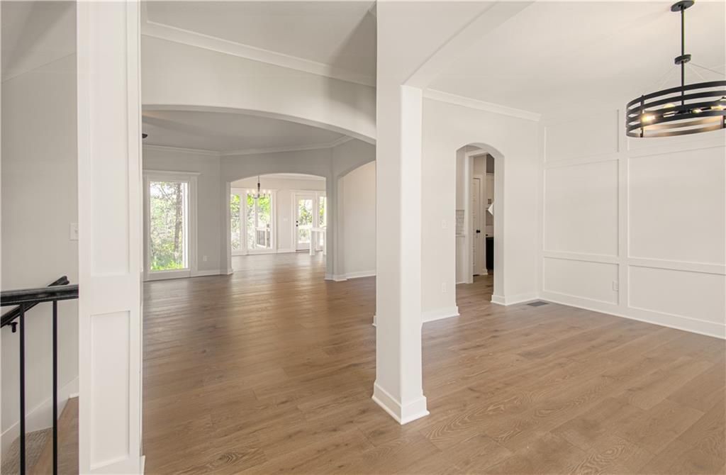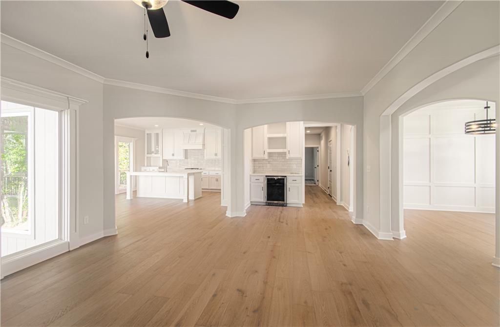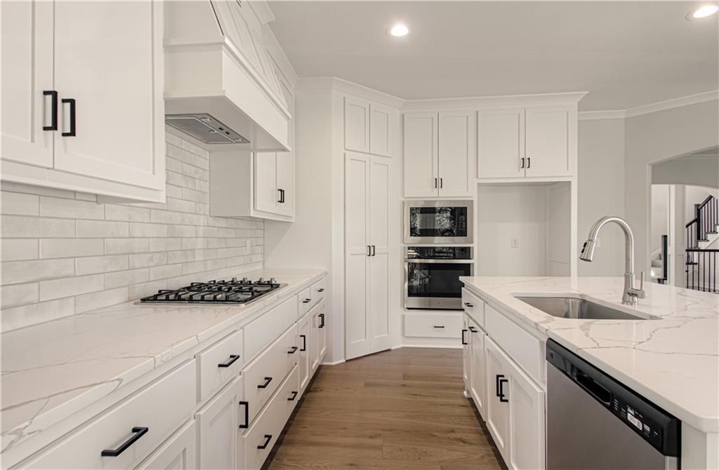 The "DAISY" is a Gorgeous move-in Ready 2-Story home with 2900 square feet backing to woods. Offering 5 Bedrooms, with the 5th Bedroom on the Main Level, and 4 Full Baths. Upgraded finishes and attention to detail this lovely home offers Rounded Arches, Custom Built Cabinets, HUGE Kitchen Island, Bonus Bar with beverage fridge, Floor to Ceiling Windows, Gourmet Kitchen, Gas Cooktop, Mudroom at Garage Entry and an Open Layout which makes it great for entertaining. The Second Level is just as impressive and features a Private and Expansive Primary Suite and Walk-in Closet that has access to the Laundry Room. The Primary Bath is luxurious with an oversized Tub and Walk-in Shower with tile walls. There are 3 more bedrooms and 2 more baths on this level. Beautiful Staircase overlooks the Front Entry. Huge walk-out basement that could be finished to fit the buyers needs.