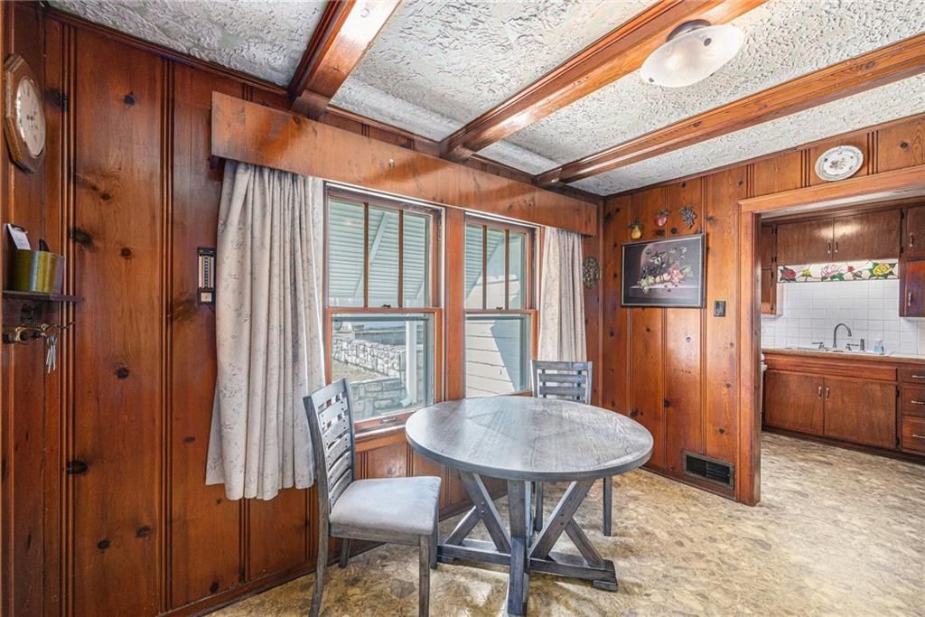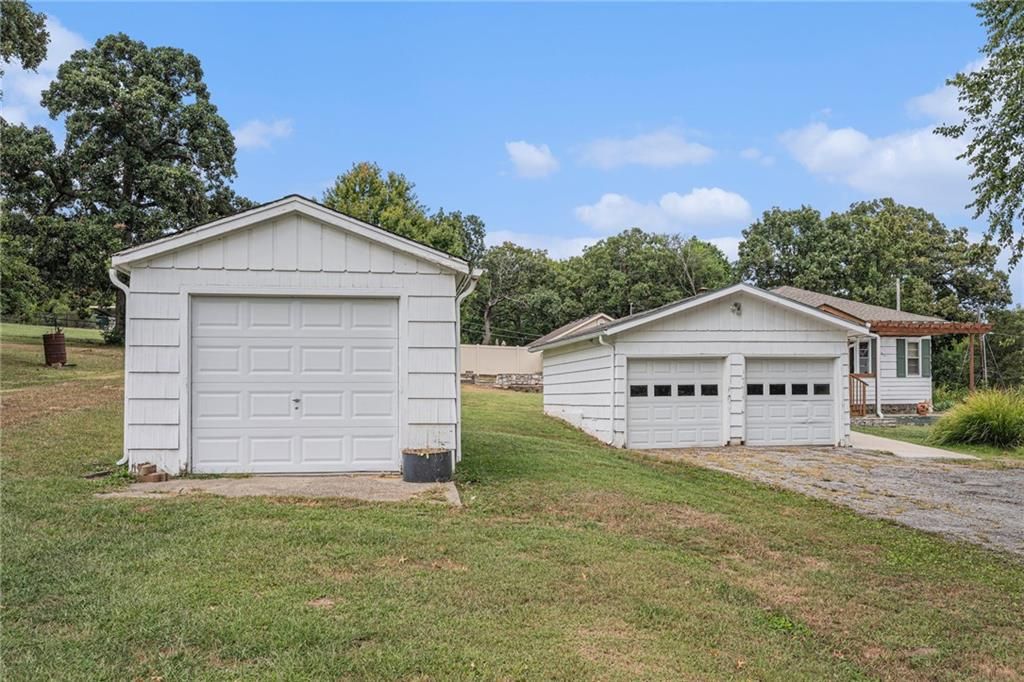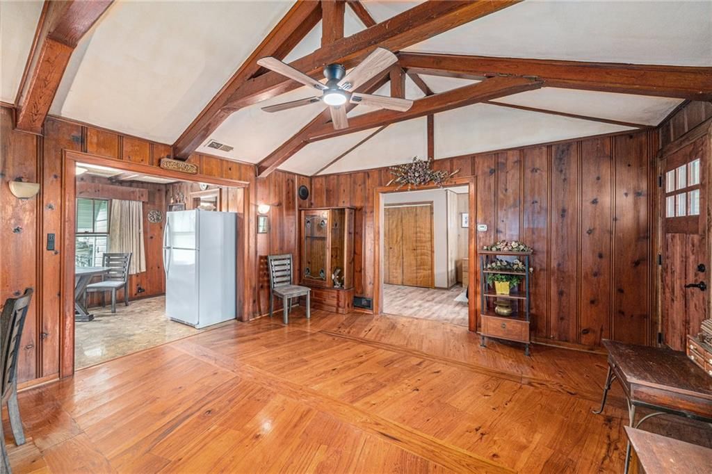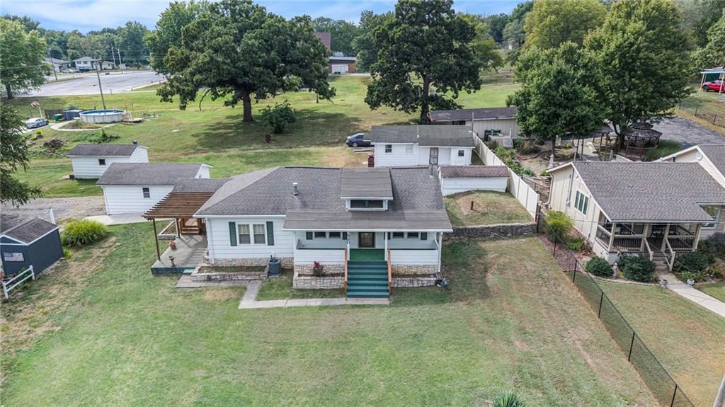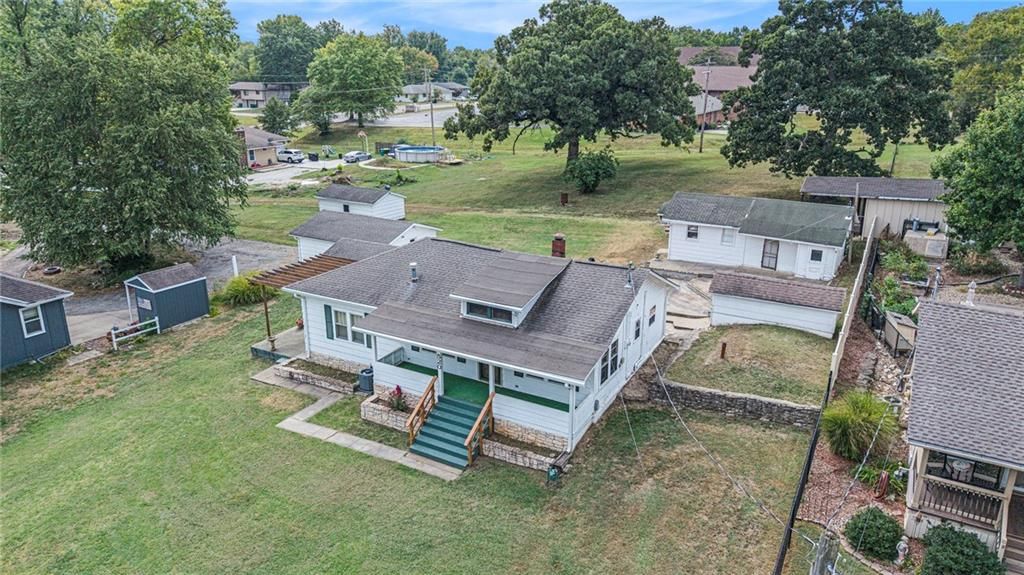 Step into the charm of this cozy bungalow-style home, set on a spacious lot of just over an acre! This one-bedroom, one-bath home is filled with character and warmth, with portions of the interior featuring wide wood plank floors and rustic wood accents that give it the feel of a welcoming lodge. The outdoor living spaces are a true highlight - enjoy your morning coffee, host gatherings, or simply relax across the multiple patio areas. Flowerbeds accented with stone and rock walls are ready for your ideas and personal touch. For your convenience, the property includes a two-car detached garage with door openers, as well as an additional shed with its own garage door - ideal for storing equipment, tools, or outdoor toys. There is also a former cabin that, with some TLC, could make a great hobby space or serve a variety of other potential uses. You'll even find a traditional underground cellar on the north side of the home, adding to its unique character and functionality. Property is being sold ** In its Present Condition, inspections are welcome.** If you're looking for a home that combines rustic charm, ample outdoor space, and plenty of room to live and play, this property is the perfect fit!