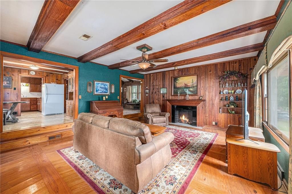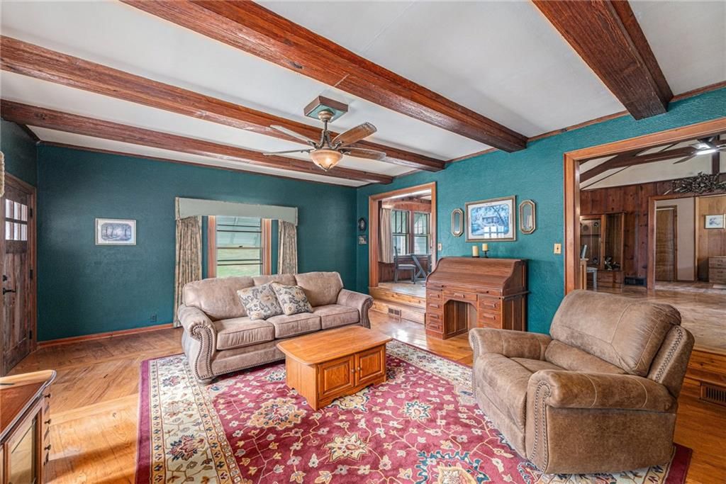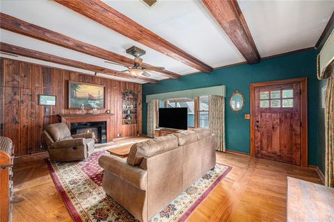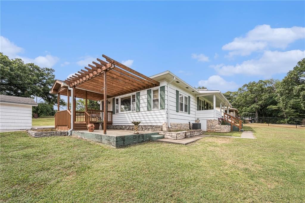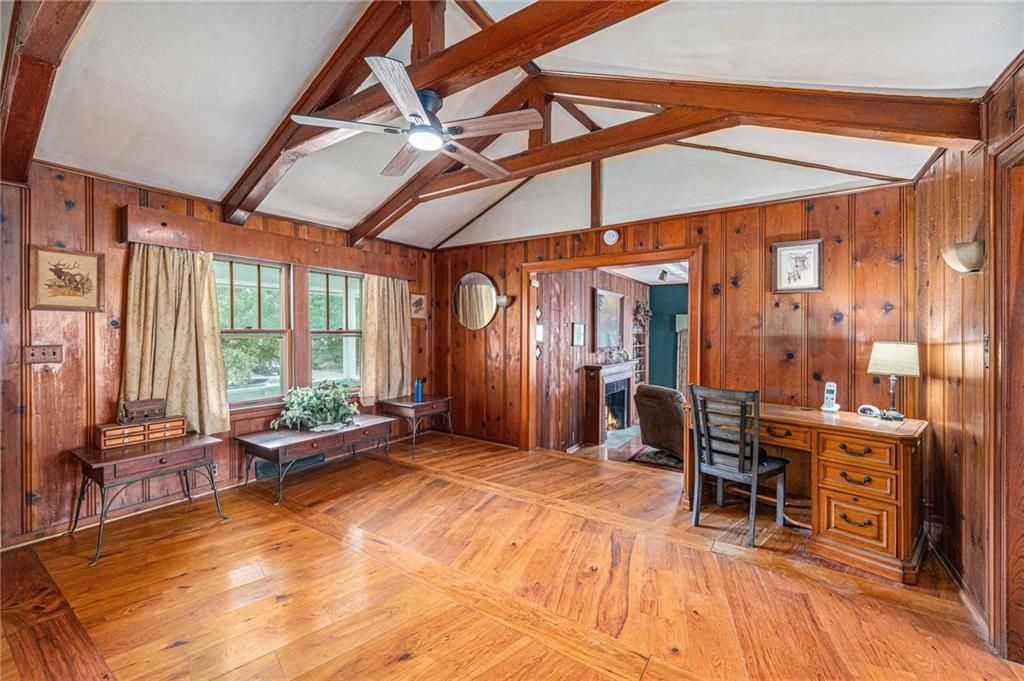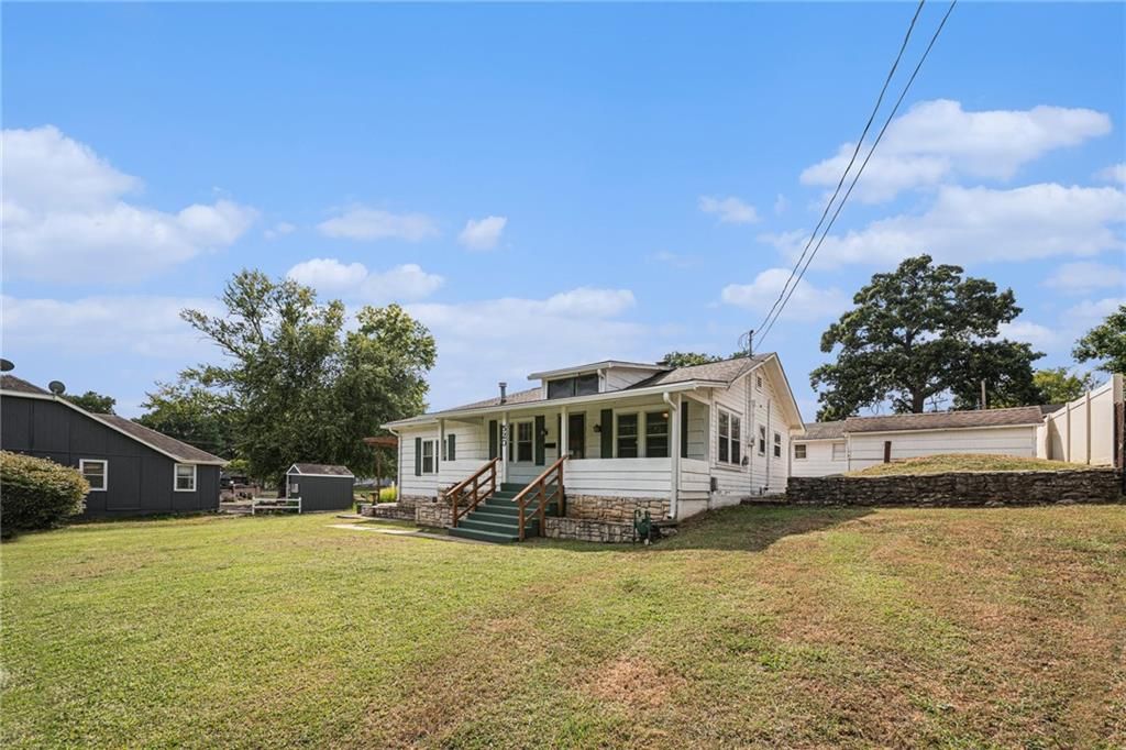 Step into the charm of this cozy bungalow-style home, set on a spacious lot of just over an acre! This one-bedroom, one-bath home is filled with character and warmth, with portions of the interior featuring wide wood plank floors and rustic wood accents that give it the feel of a welcoming lodge. The outdoor living spaces are a true highlight - enjoy your morning coffee, host gatherings, or simply relax across the multiple patio areas. Flowerbeds accented with stone and rock walls are ready for your ideas and personal touch. For your convenience, the property includes a two-car detached garage with door openers, as well as an additional shed with its own garage door - ideal for storing equipment, tools, or outdoor toys. There is also a former cabin that, with some TLC, could make a great hobby space or serve a variety of other potential uses. You'll even find a traditional underground cellar on the north side of the home, adding to its unique character and functionality. Property is being sold ** In its Present Condition, inspections are welcome.** If you're looking for a home that combines rustic charm, ample outdoor space, and plenty of room to live and play, this property is the perfect fit!