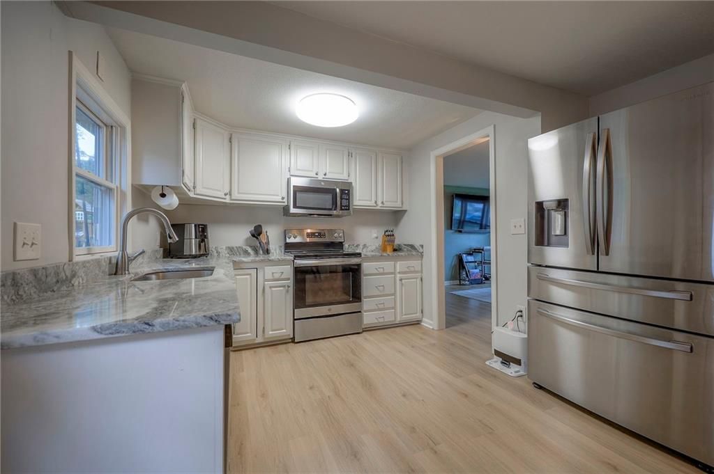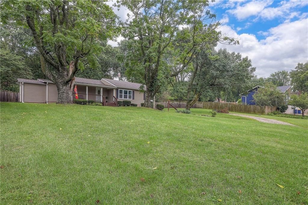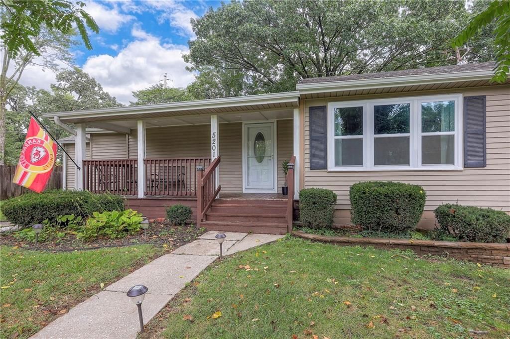 Very cute raised ranch with inviting front porch! **Double-driveway on double-sized lot!** Light bright Kitchen w/granite, SS appliances, and painted cabinets. New luxury vinyl wood flooring in all main living areas including Primary Bedroom! **Extra large lot (.4 acres) with fenced backyard.**. Back Deck with lights is perfect for entertaining and relaxing. Granite in both Bathrooms. So much new: Primary Bathroom fixtures, front steps, sump pump, water softener, and roof!
