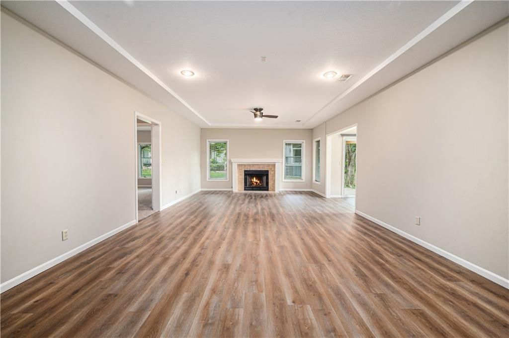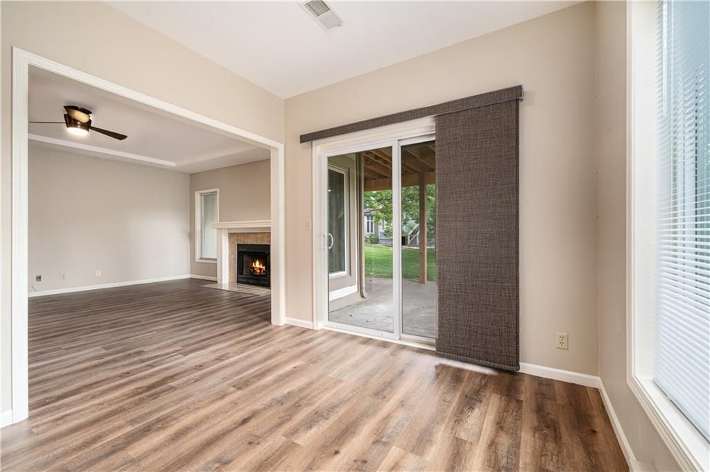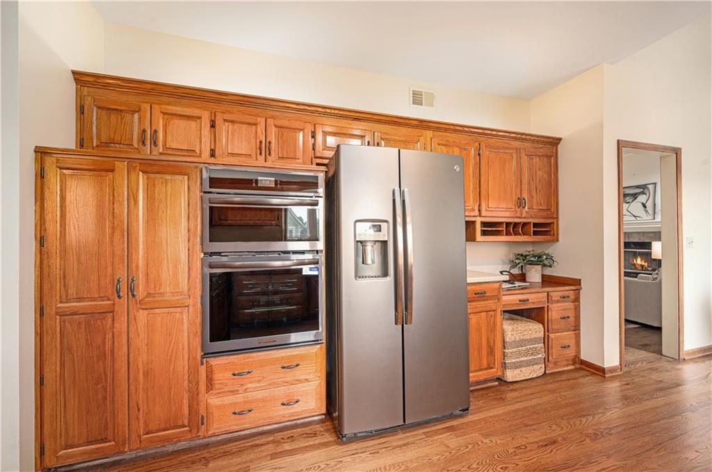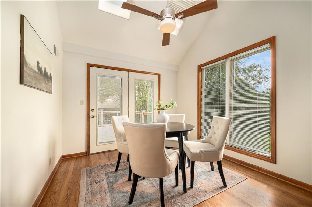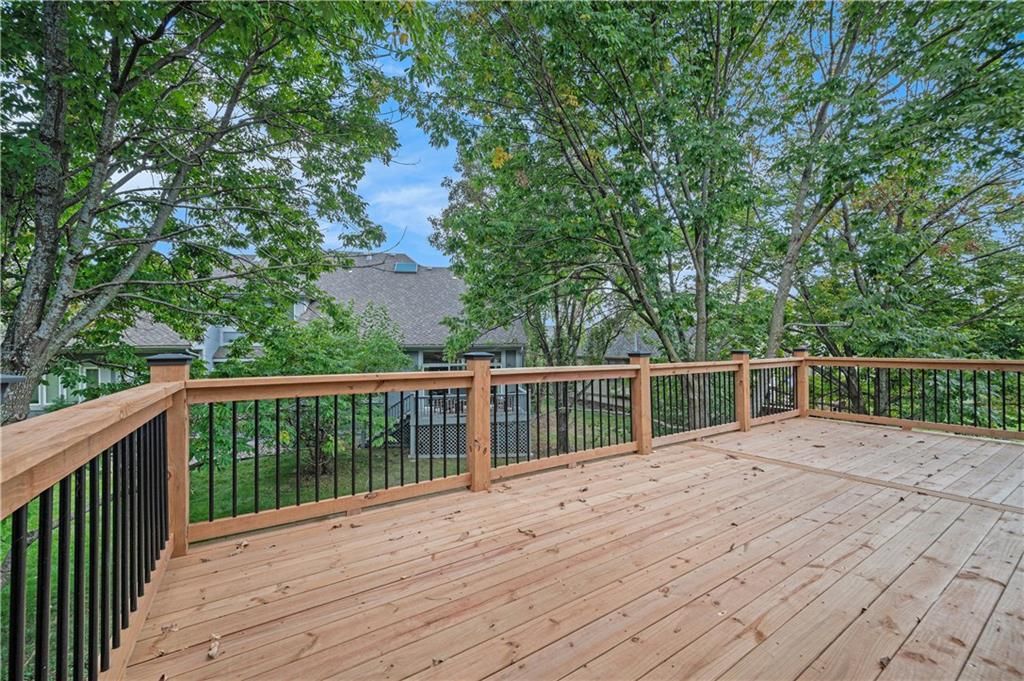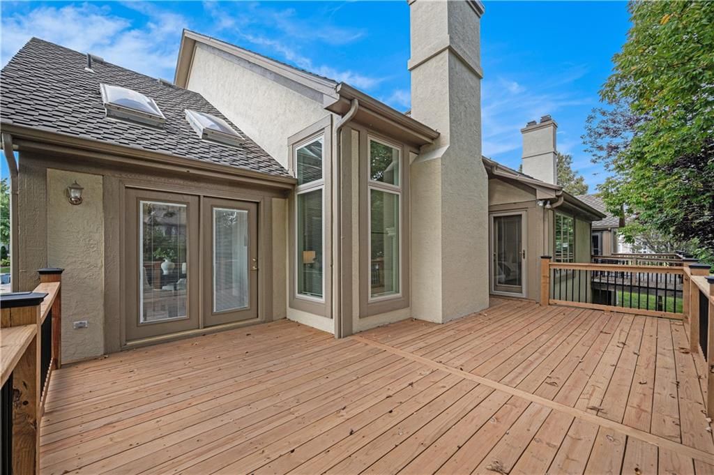 Beautifully Maintained Villa in the Heart of Leawood. Discover effortless living in this stunning 1.5 reverse story villa, offering nearly 2,500 square feet of thoughtfully designed space. Featuring 3 bedrooms, 3 full bathrooms, a finished walk-out lower level, and a two-car garage, this home blends comfort with refined style. The expansive dining and living room combination is an entertainer's dream, showcasing soaring ceilings, a cozy fireplace, wet bar, and gleaming new hardwoods. Entire main level has new hardwoods throughout. The kitchen impresses with new stainless-steel appliances, double oven, abundant cabinetry, and a bright eat-in area that opens to a newly refinished deck - perfect for morning coffee or evening gatherings. Generous sized laundry room located off the kitchen. The main-level primary suite boasts vaulted ceilings, a spacious walk-in closet, and bath with double vanities, soaking tub, and separate shower. A second bedroom and full bath complete the main floor. Downstairs, the walk-out lower level offers new LVP flooring, a generous family room, third bedroom, full bath, cedar closet, covered patio, and abundant storage space. Additional updates include fresh interior paint, new lighting, and countless thoughtful touches for a truly move-in ready experience. With lawn care and snow removal handled by the HOA, you'll enjoy low-maintenance living at its best. All of this in a prime Leawood location - just minutes from Town Center Plaza, upscale dining, boutique shopping, beautiful parks, and easy highway access.