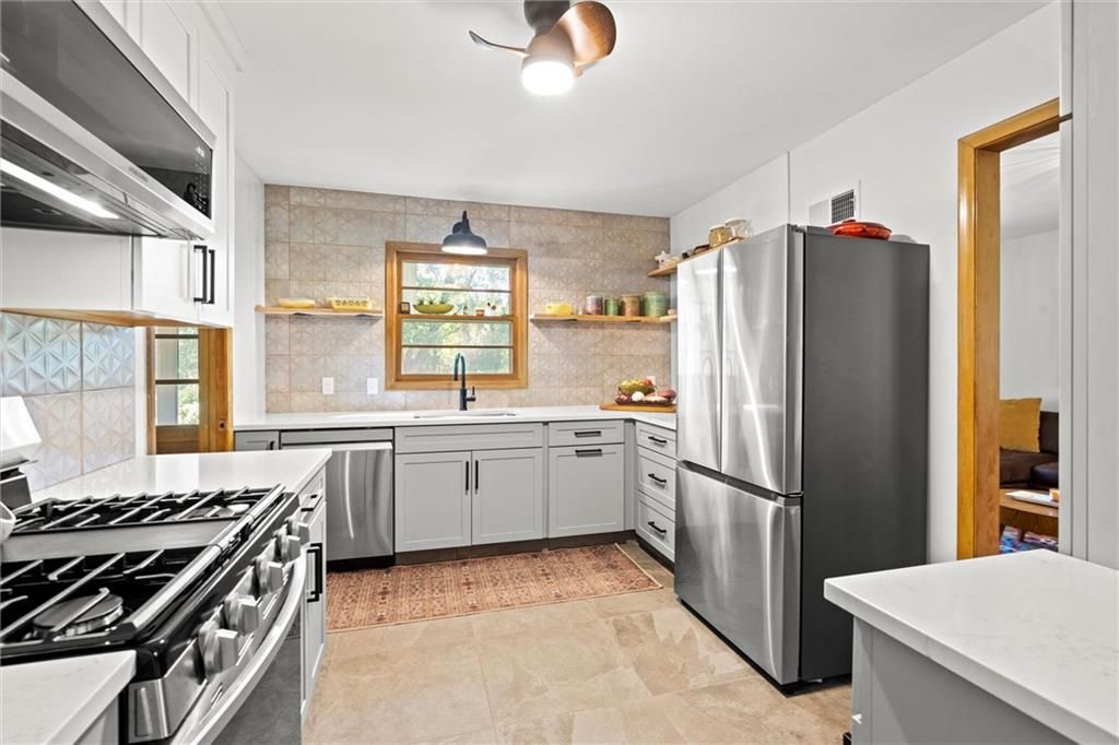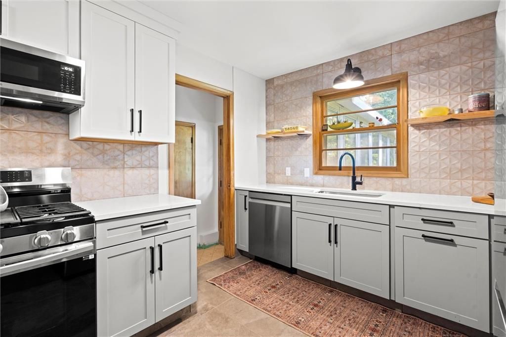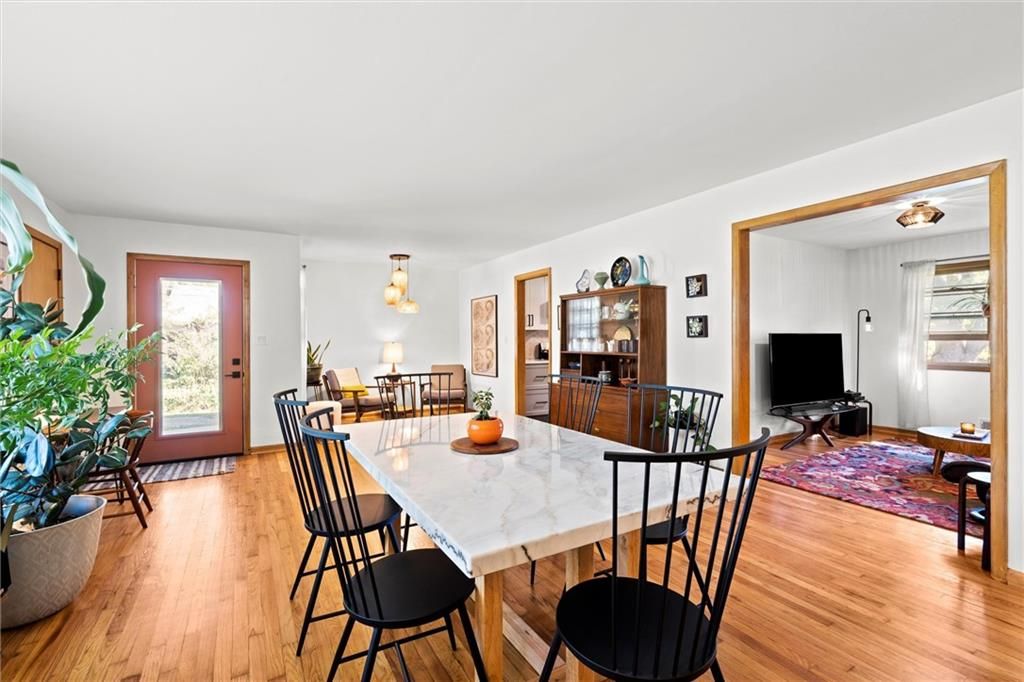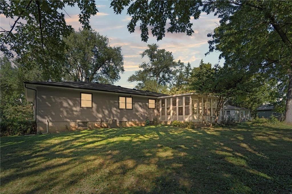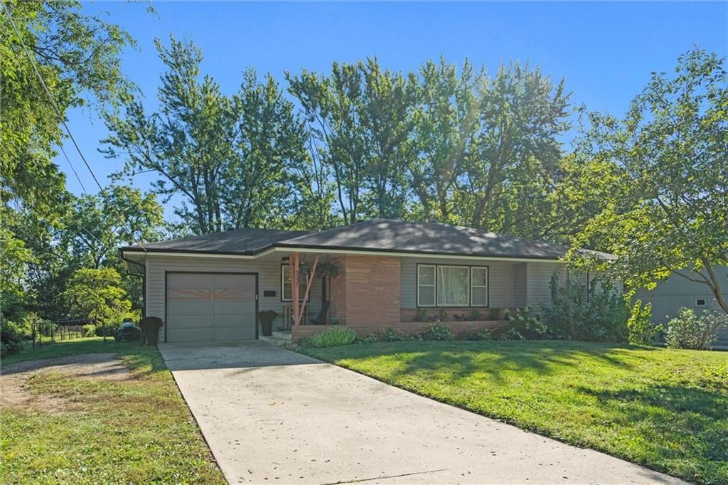 Welcome to 5331 Halsey Street - a beautifully maintained home on nearly of an acre in the heart of Shawnee. This two-bedroom, one-bathroom gem perfectly blends mid-century charm with thoughtful modern updates, offering comfort, style, and room to grow. Step inside to find light-filled living spaces with original hardwood floors, fresh finishes, and a fully renovated kitchen featuring custom cabinetry, sleek countertops, and stainless steel appliances. The spacious dining area is ideal for hosting, with large windows that frame the lush greenery outside. Downstairs, you'll find a full basement that offers plenty of storage or potential for future expansion. Outside, mature trees and open green space create a peaceful retreat - perfect for evening fires under the stars or morning coffee surrounded by nature. With a new roof, new siding, and meticulous upkeep throughout, this home is truly move-in ready. A rare find on such a generous lot, it offers both privacy and proximity to all that Shawnee has to offer - parks, local shops, and easy highway access. Classic charm meets modern comfort - come see why 5331 Halsey Street feels like home.